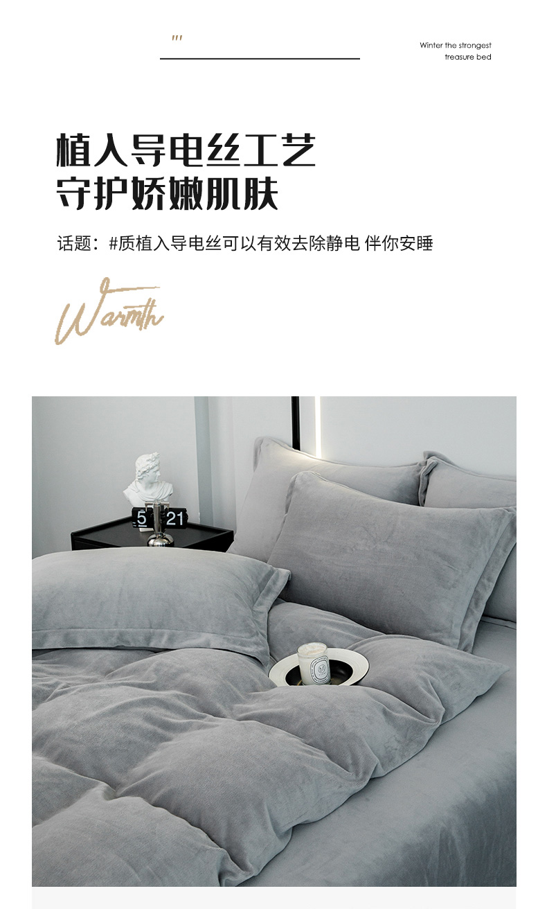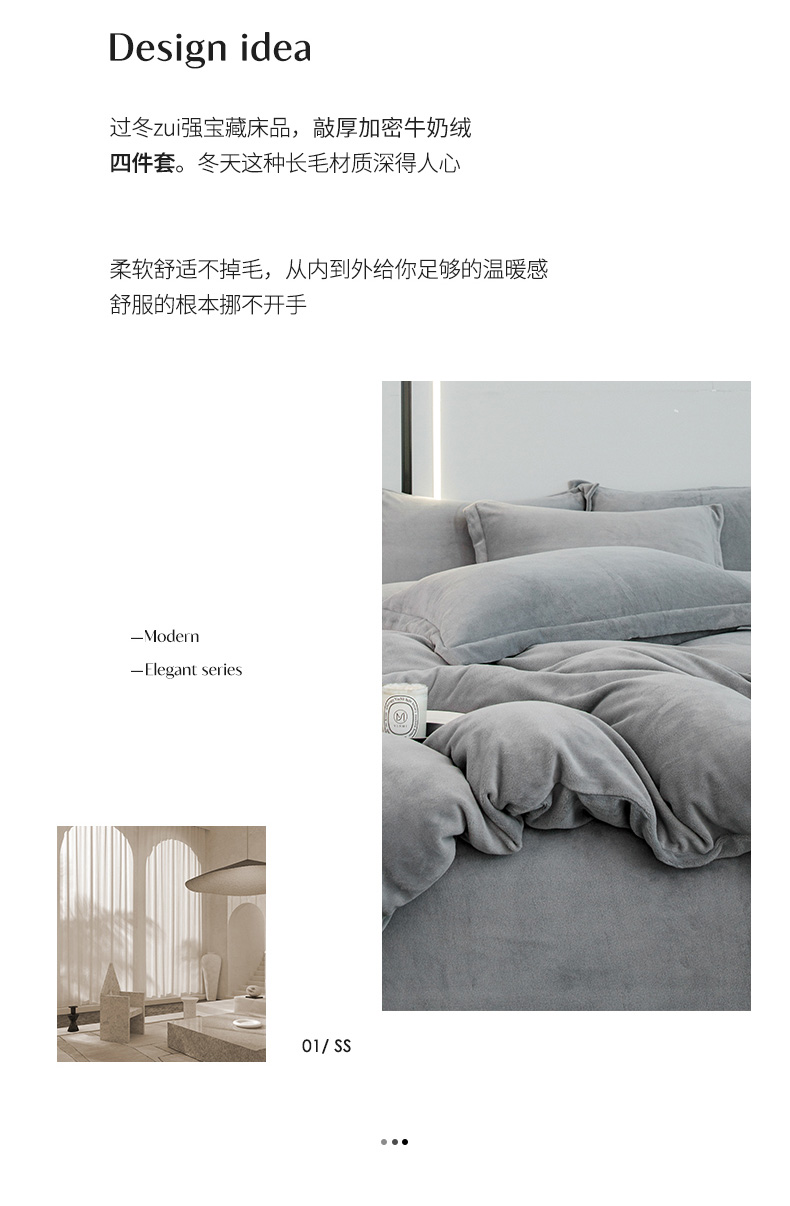 当前位置: 91家纺网 > 商品网购 > 床品套件 > 四件套 > 牛奶绒四件套 > 锦罗绣 2024新款230克纯色牛奶绒四件套 银灰
