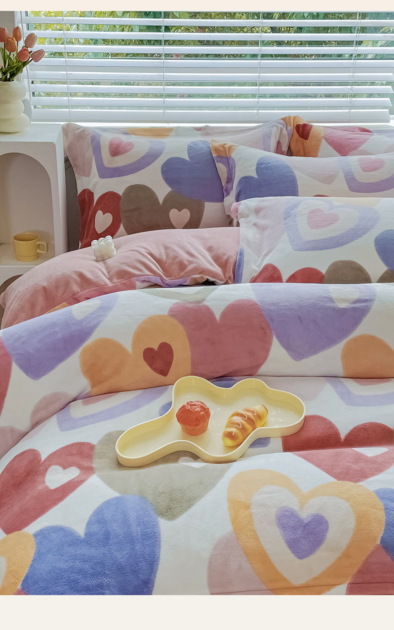 锦罗绣 2024新款A类高克重牛奶绒印花单被套 爱心