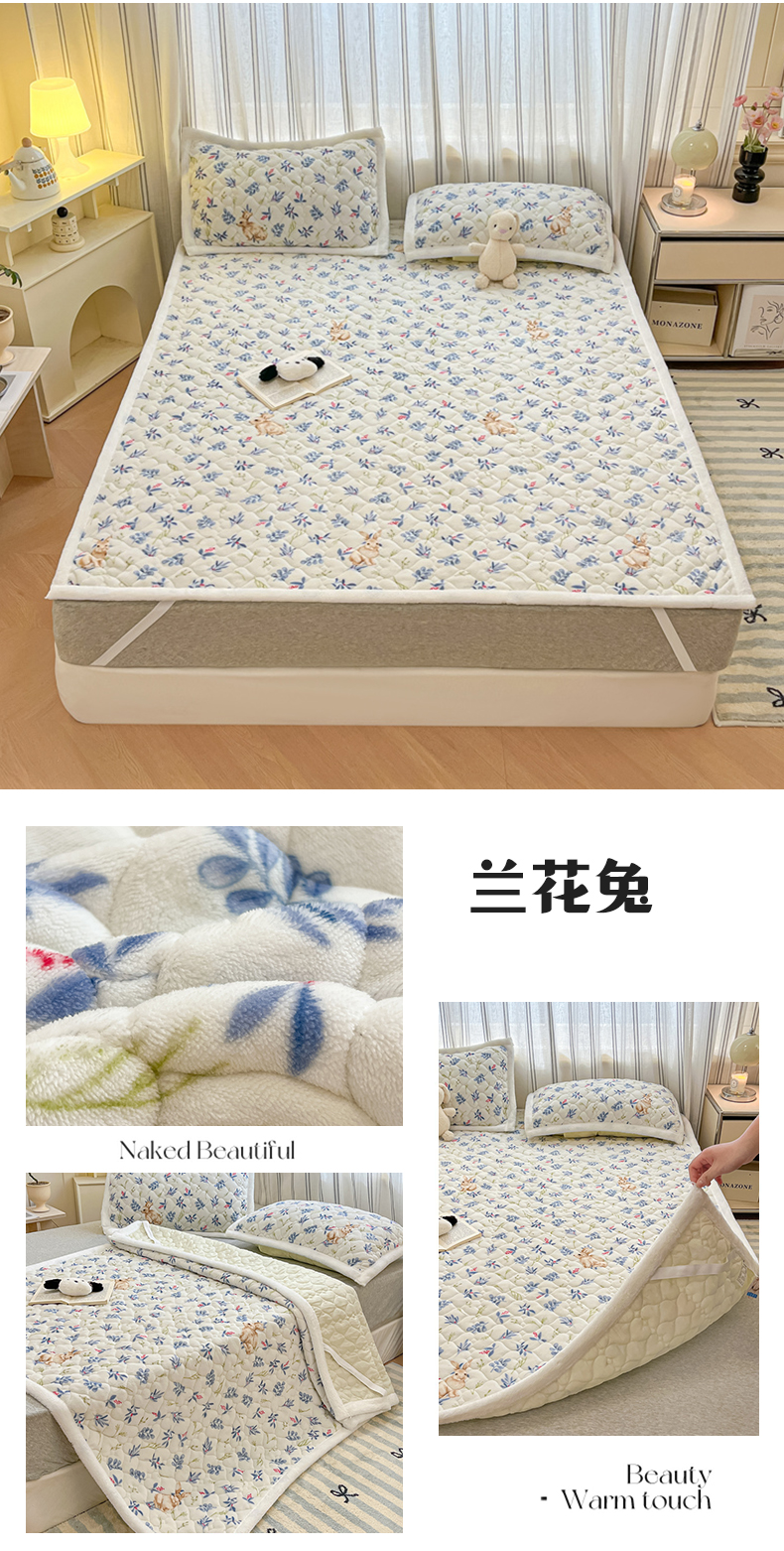 当前位置: 91家纺网 > 商品网购 > 床垫/床褥 > 普通床垫 > 启程家纺 2024新款A类印花牛奶绒床垫加厚绒保暖床护垫 兰花兔