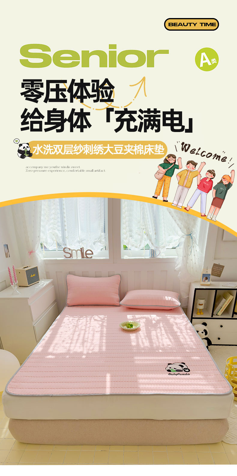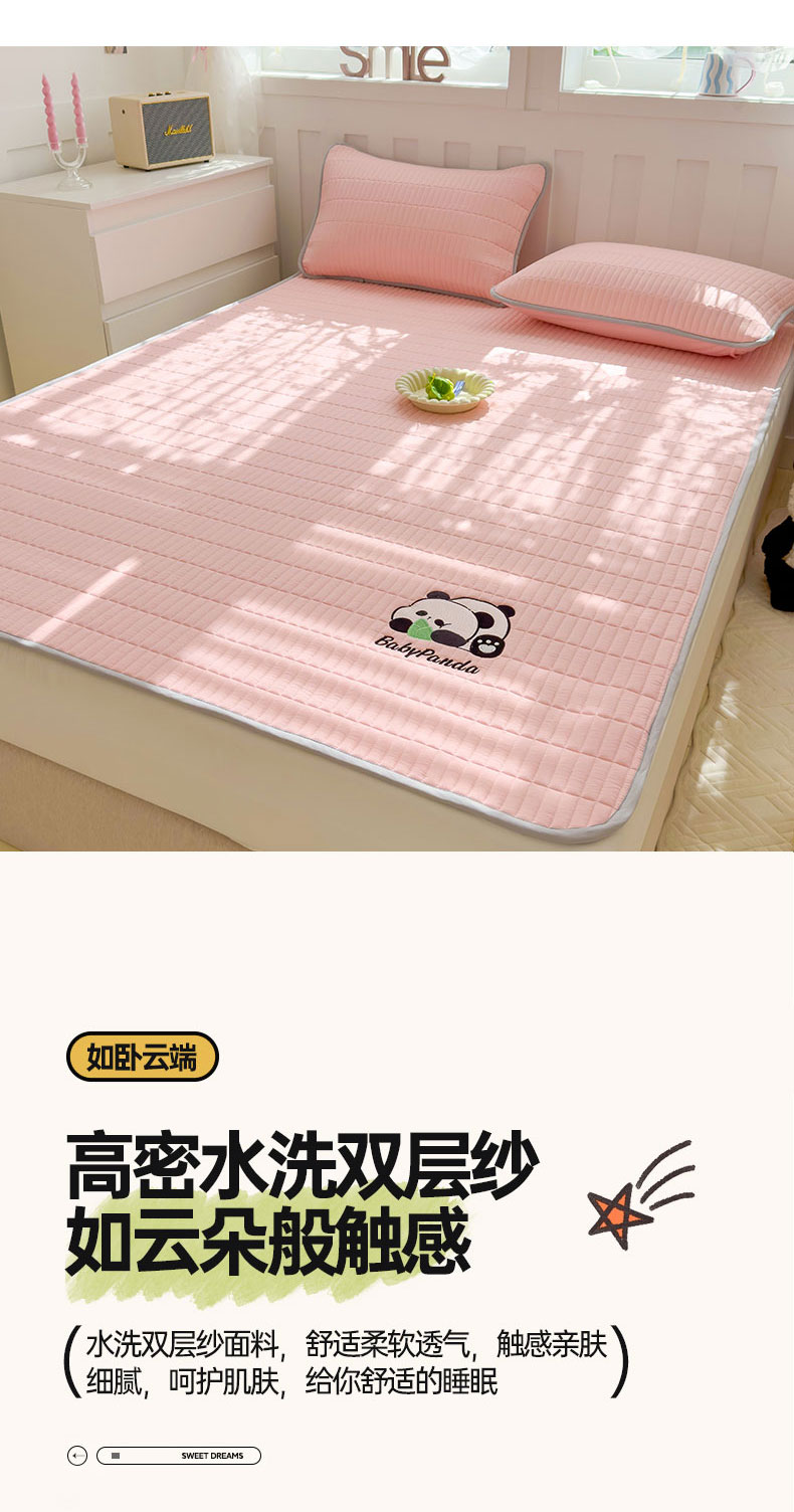 当前位置: 91家纺网 > 商品网购 > 床垫/床褥 > 普通床垫 > 灰鲸 2025新款水洗双层纱萌物刺绣大豆夹棉床垫 熊猫baby-樱花粉