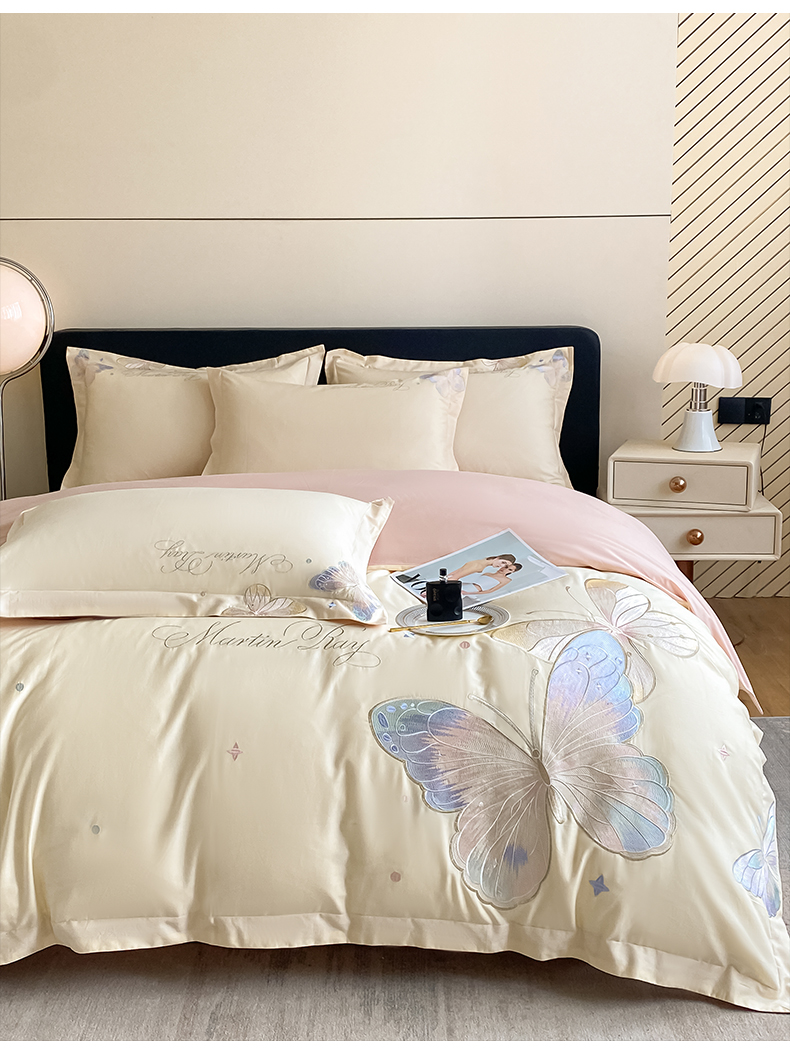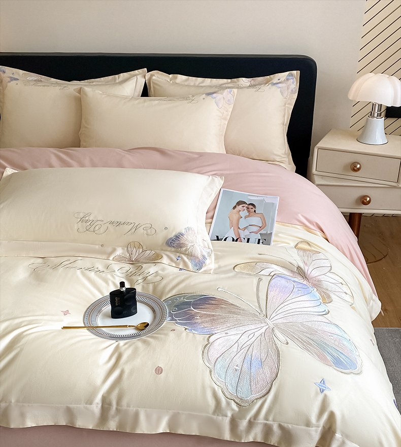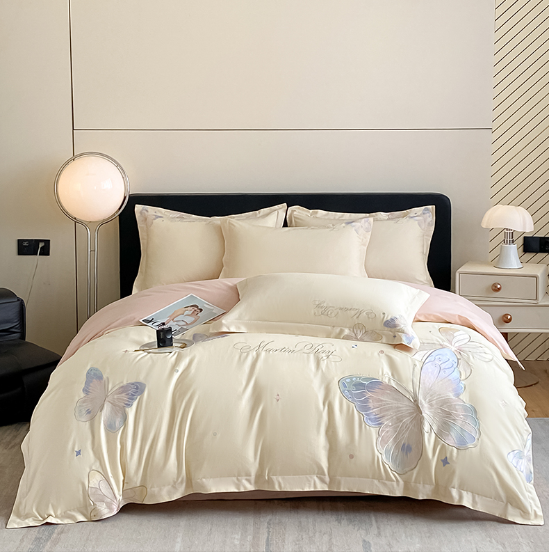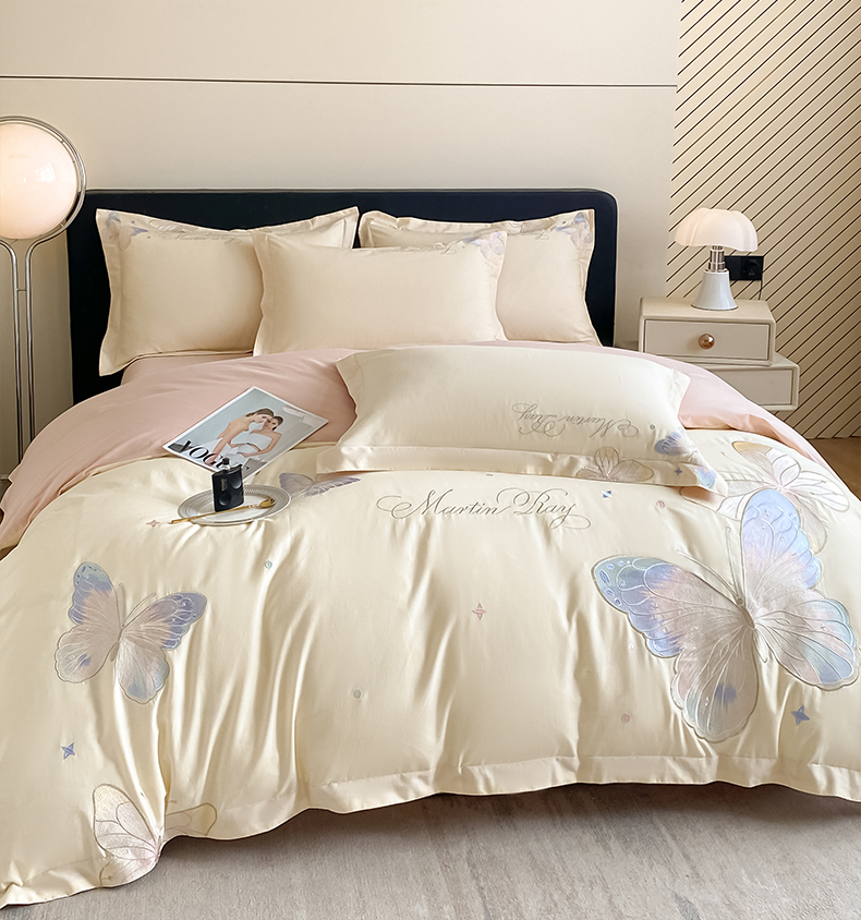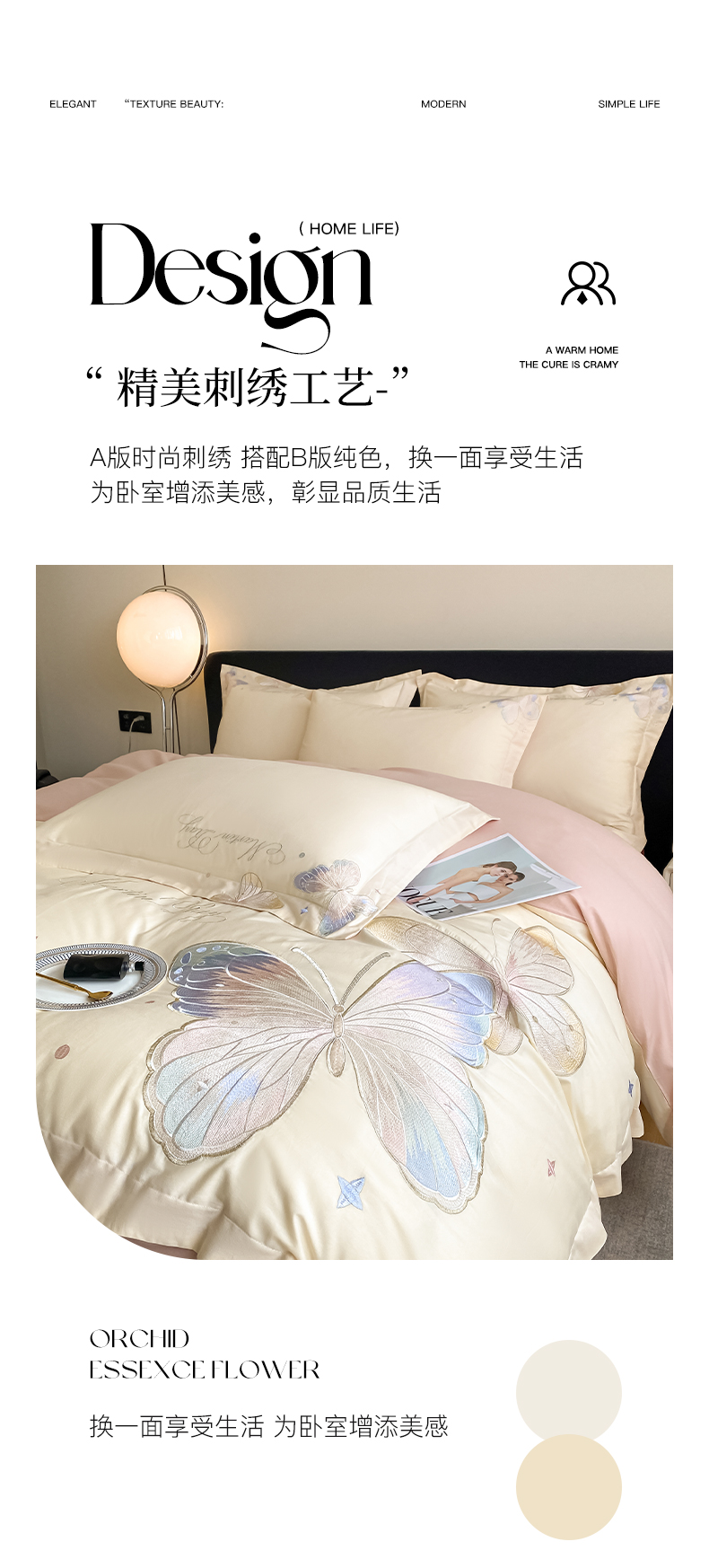 理想家家纺 2024新款13372全棉刺绣四件套系列-梦蝶 黄