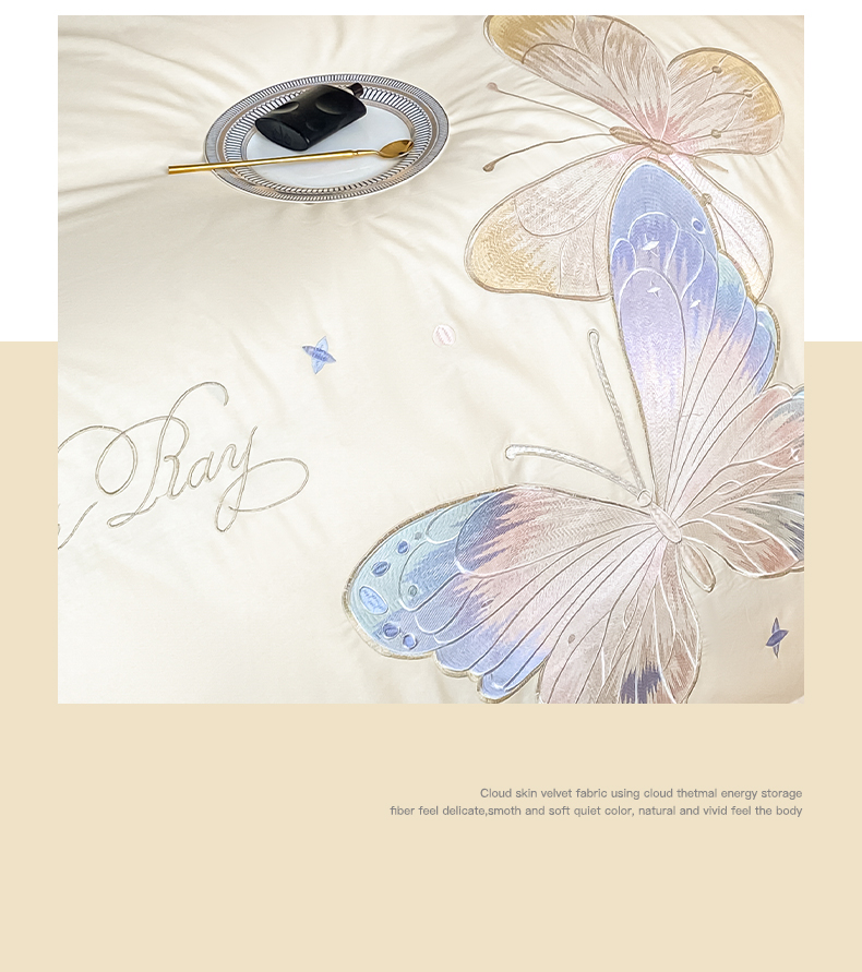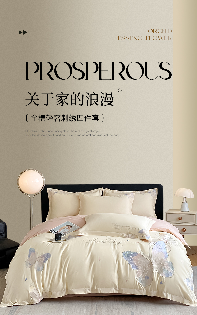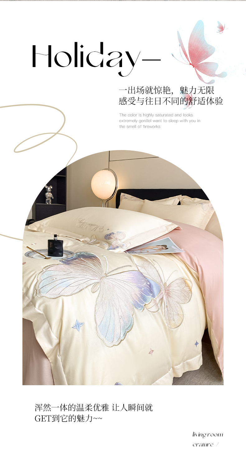 商品名称:理想家家纺 2024新款13372全棉刺绣四件套系列-梦蝶 黄