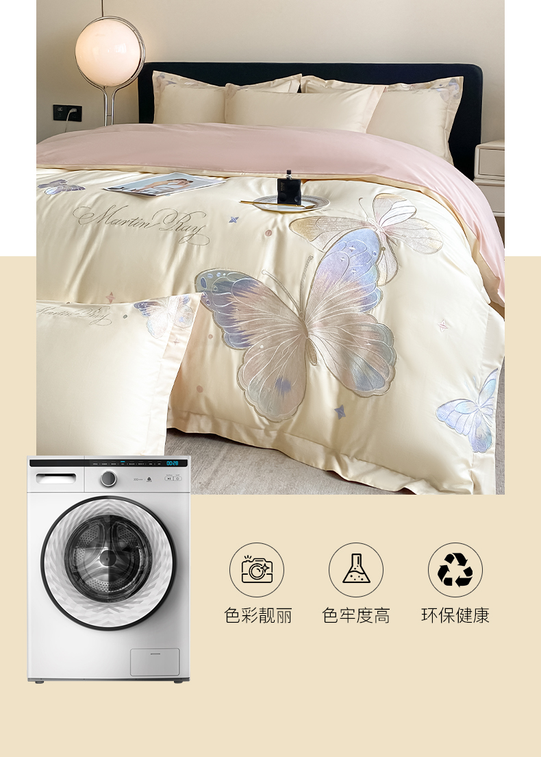 (总)理想家家纺 理想家家纺 2025新款云朵棉水洗真丝刺绣四件套,翩羽白,翩羽粉,翩羽蓝,翩羽绿,翩羽紫