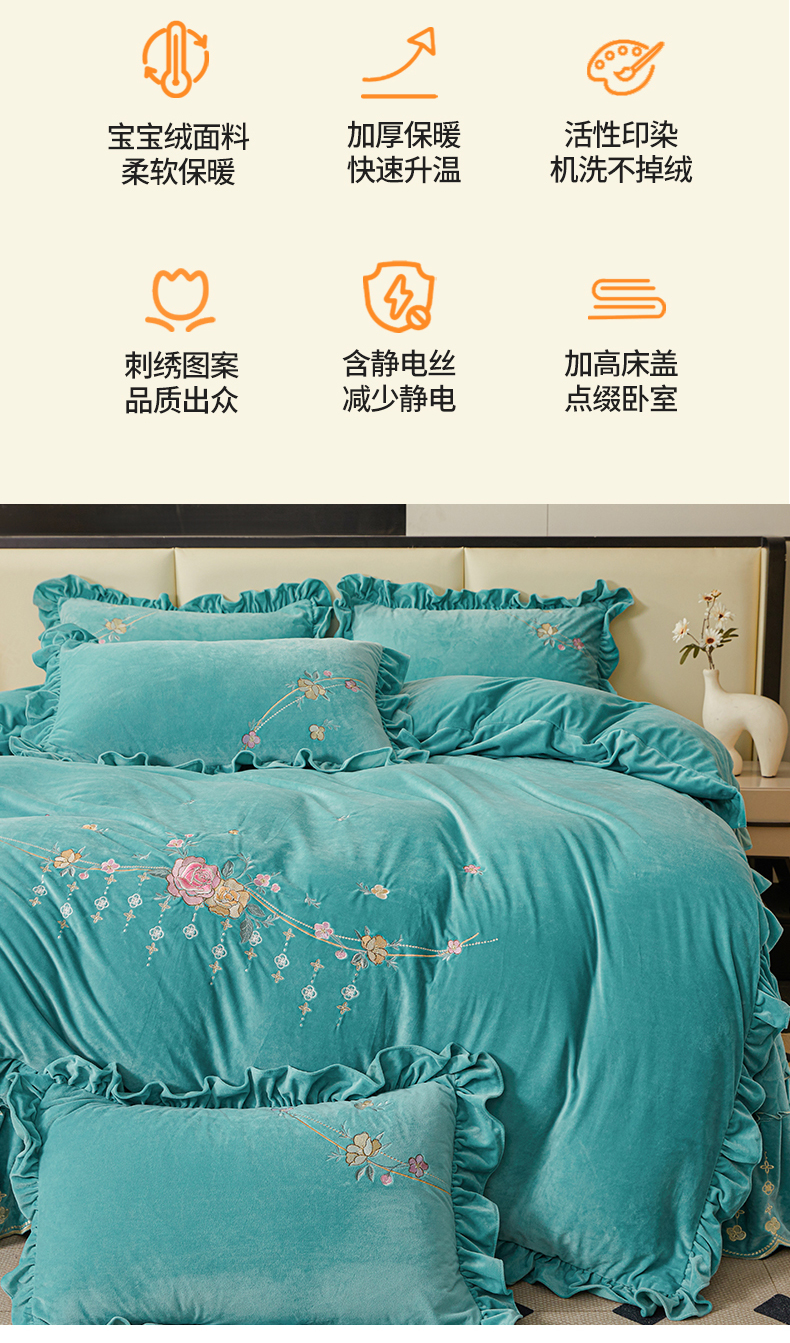 当前位置: 91家纺网 > 商品网购 > 床品套件 > 四件套 > 其它四件套 > 2024秋冬新款茉含宝宝绒公主风四件套 浅灰蓝-