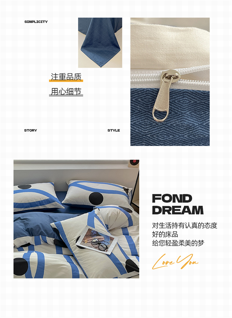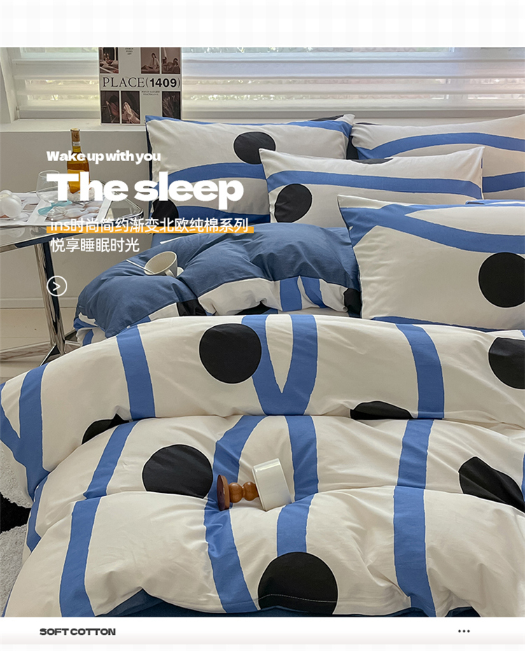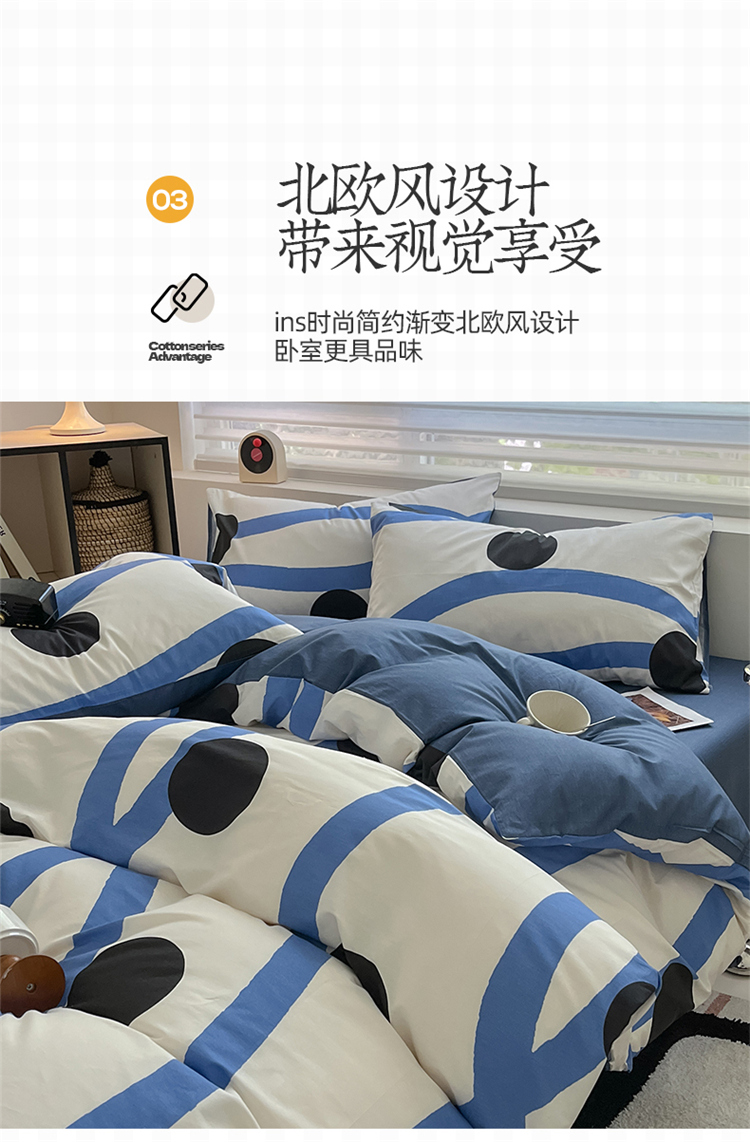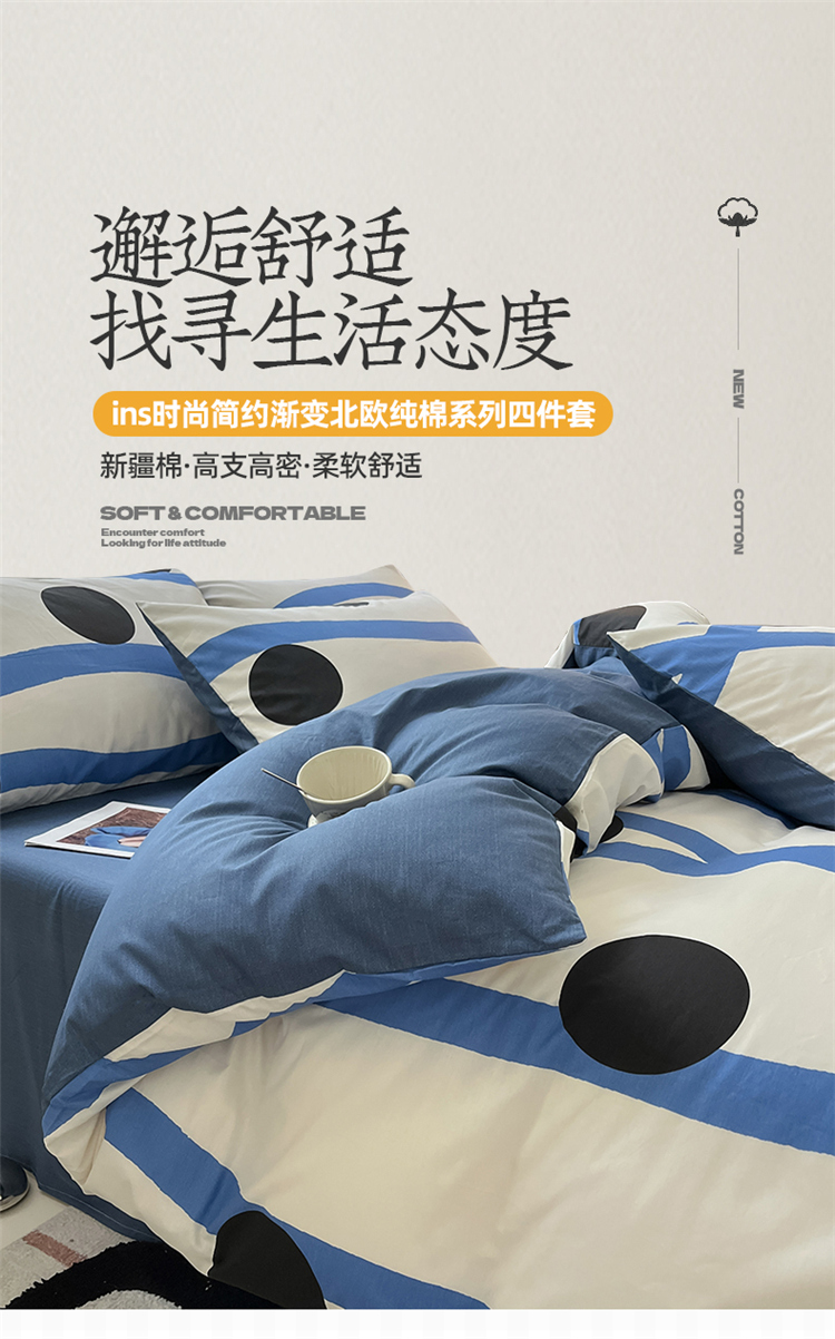 商品名称:2024新款ins时尚简约渐变北欧全棉系列四件套 棉-格林