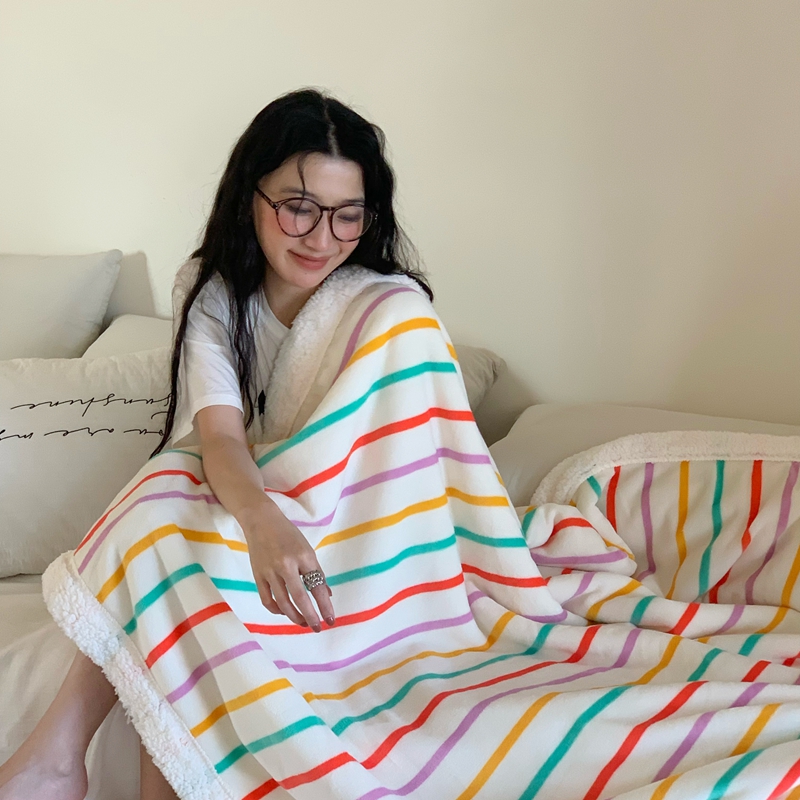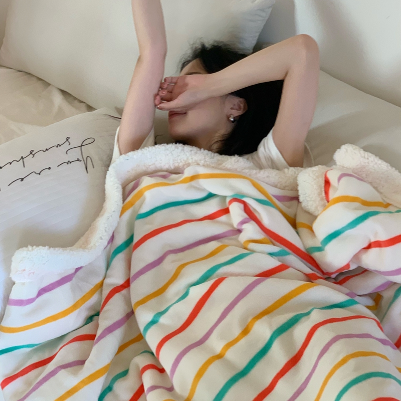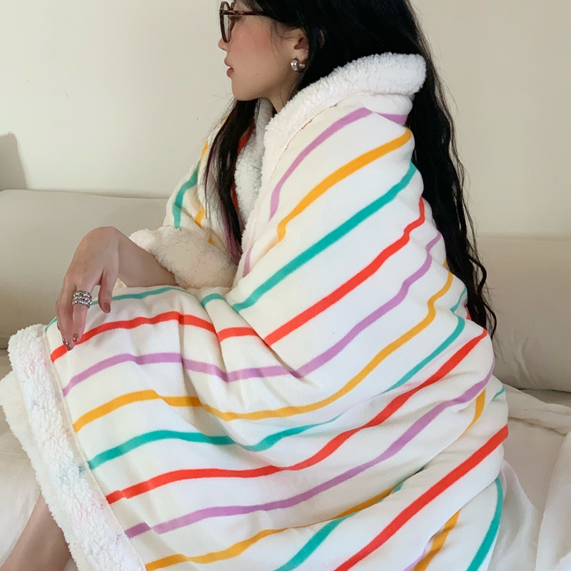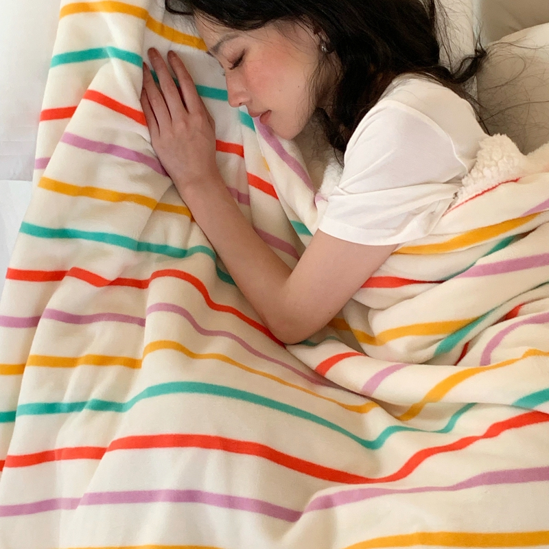 桃喜 2024新款牛奶绒羊羔绒条纹系列盖绒毛毯午休毯多功能毛毯 多巴胺彩条