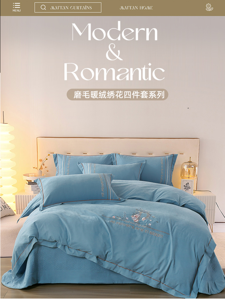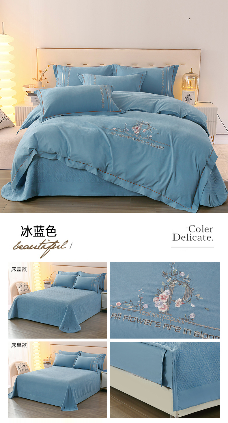 当前位置: 91家纺网 > 商品网购 > 床品套件 > 四件套 > 其它四件套 > OL家纺 2024新款磨毛暖绒床盖夹棉四件套刺绣轻奢风 冰蓝色