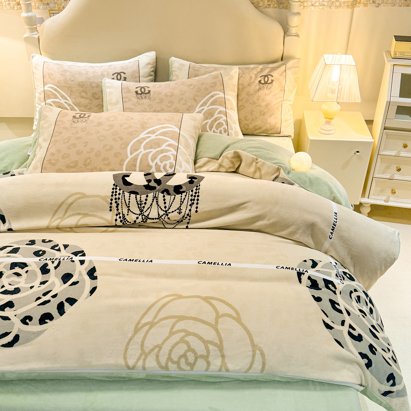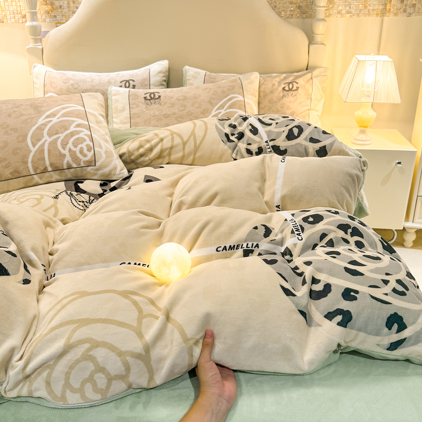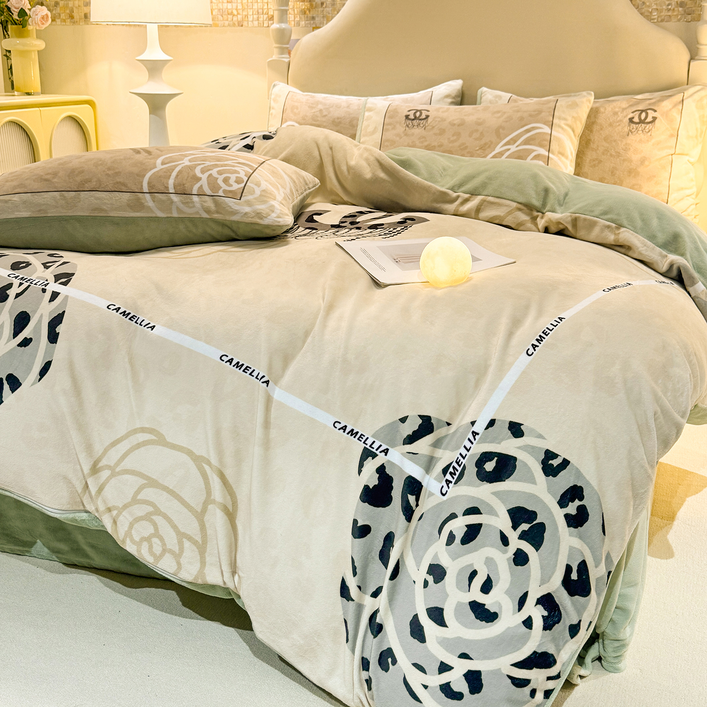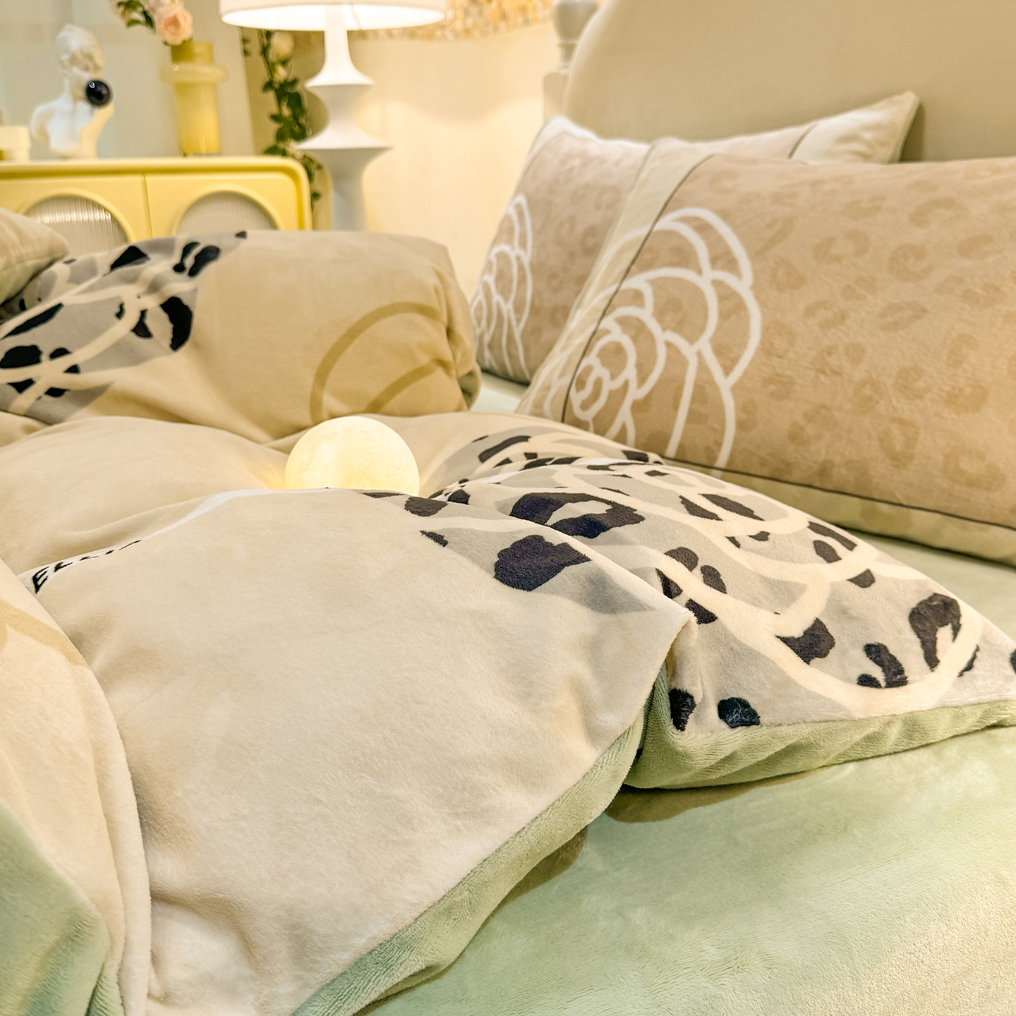 新方向 2025年 A类全消光牛奶绒四件套-漫步温莎-奶油白