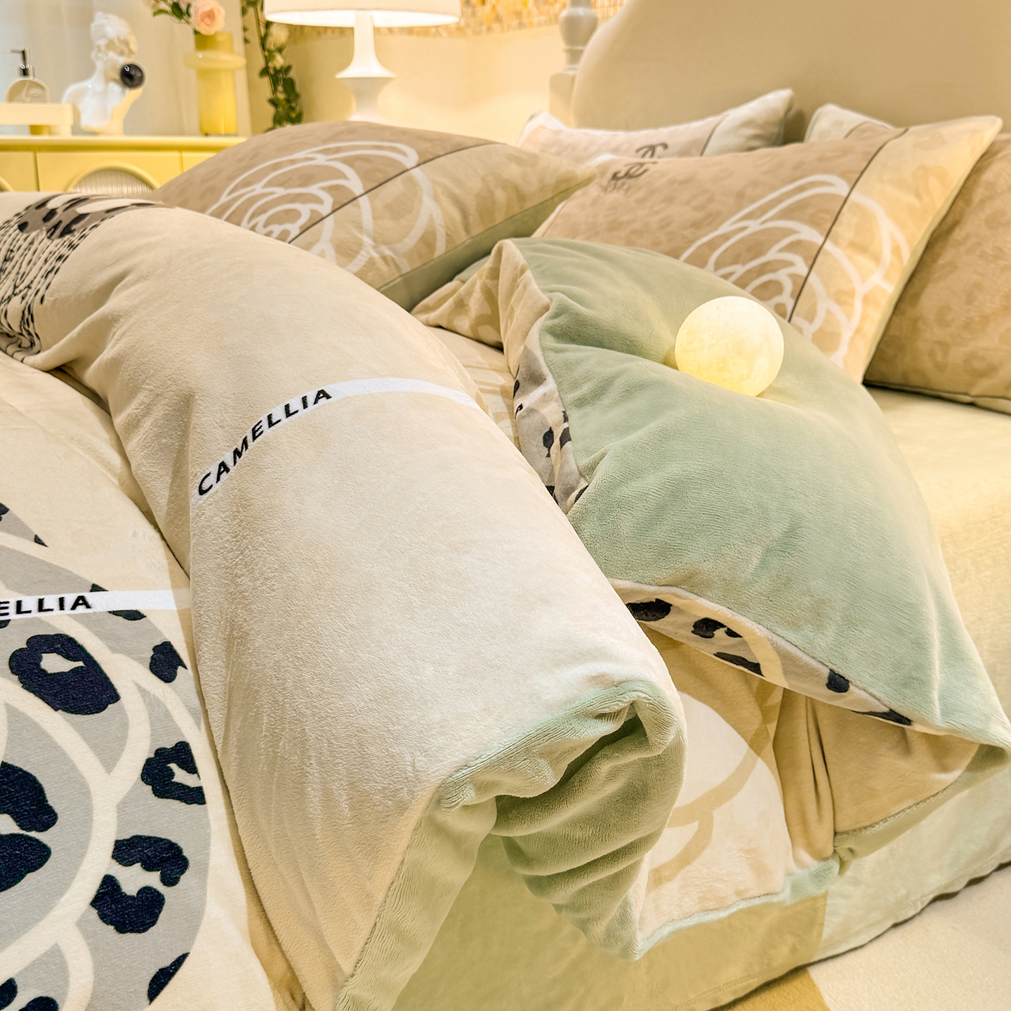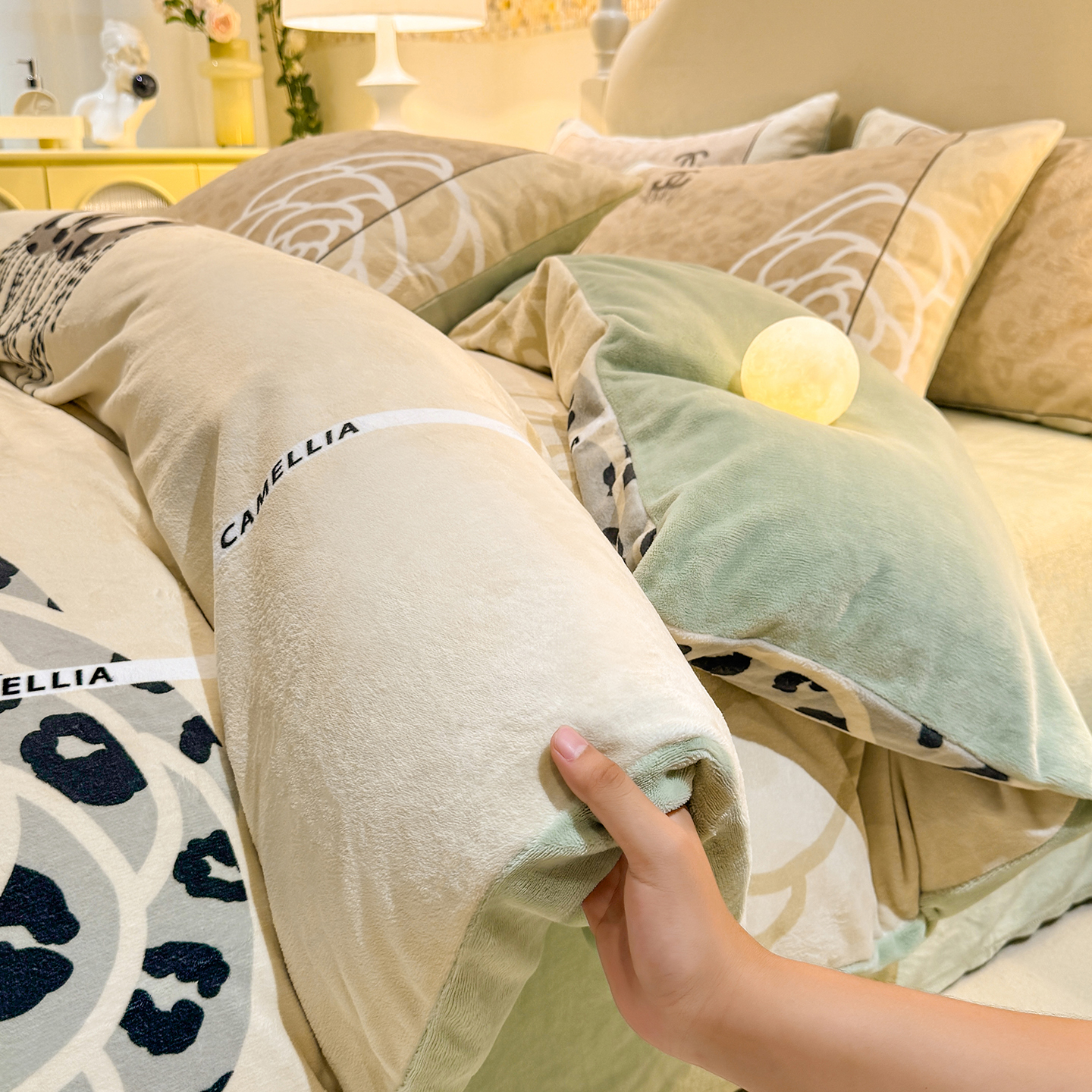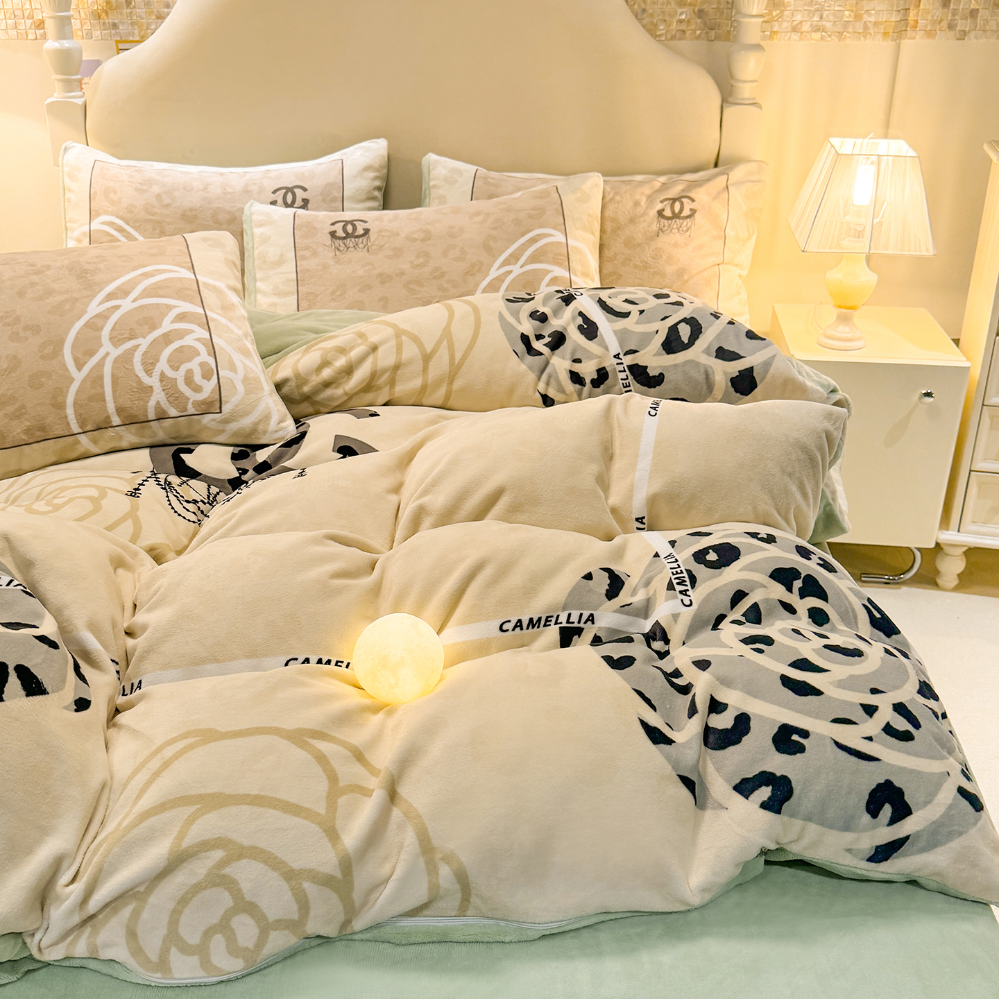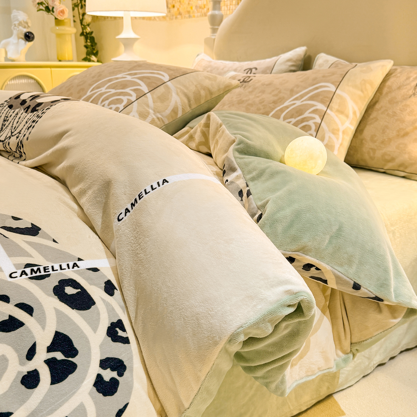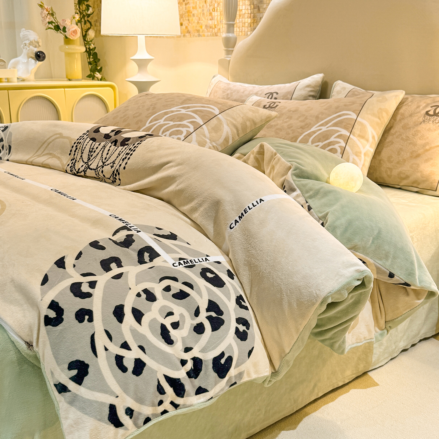 新方向 2025年 A类全消光牛奶绒四件套-漫步温莎-奶油白