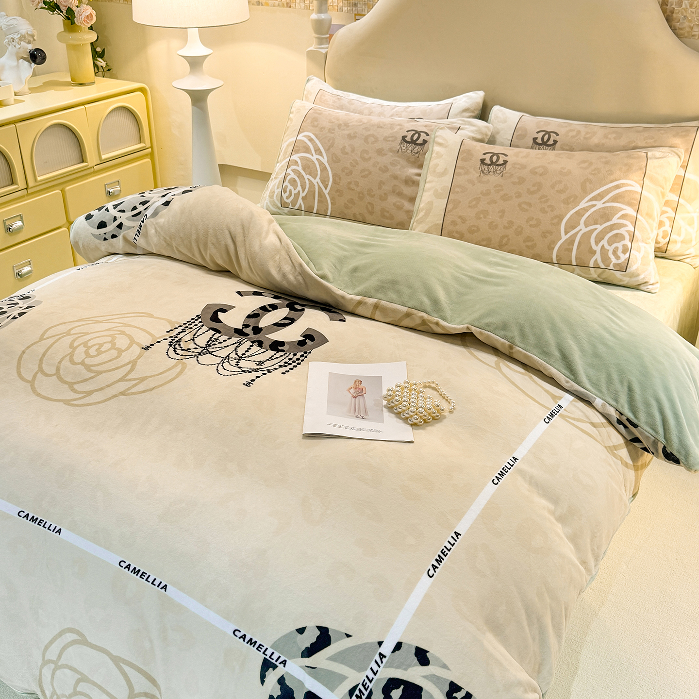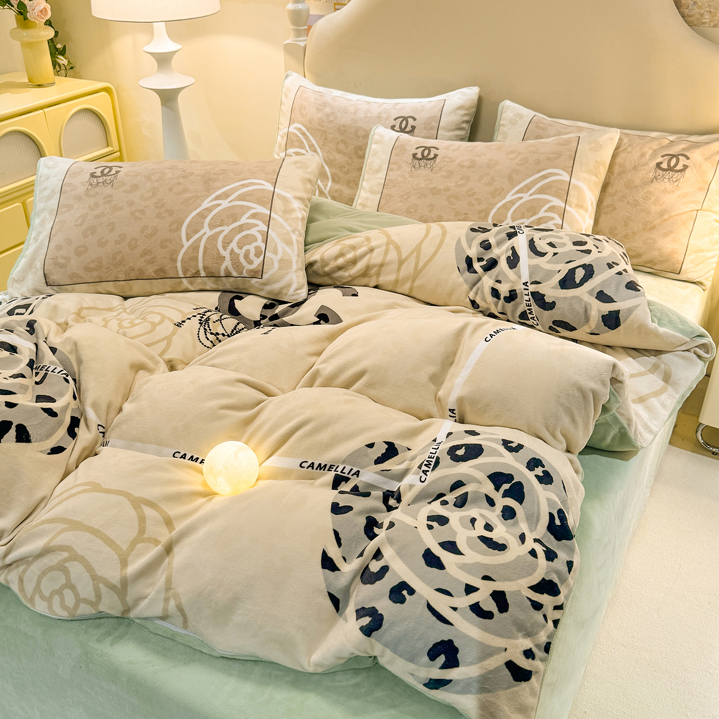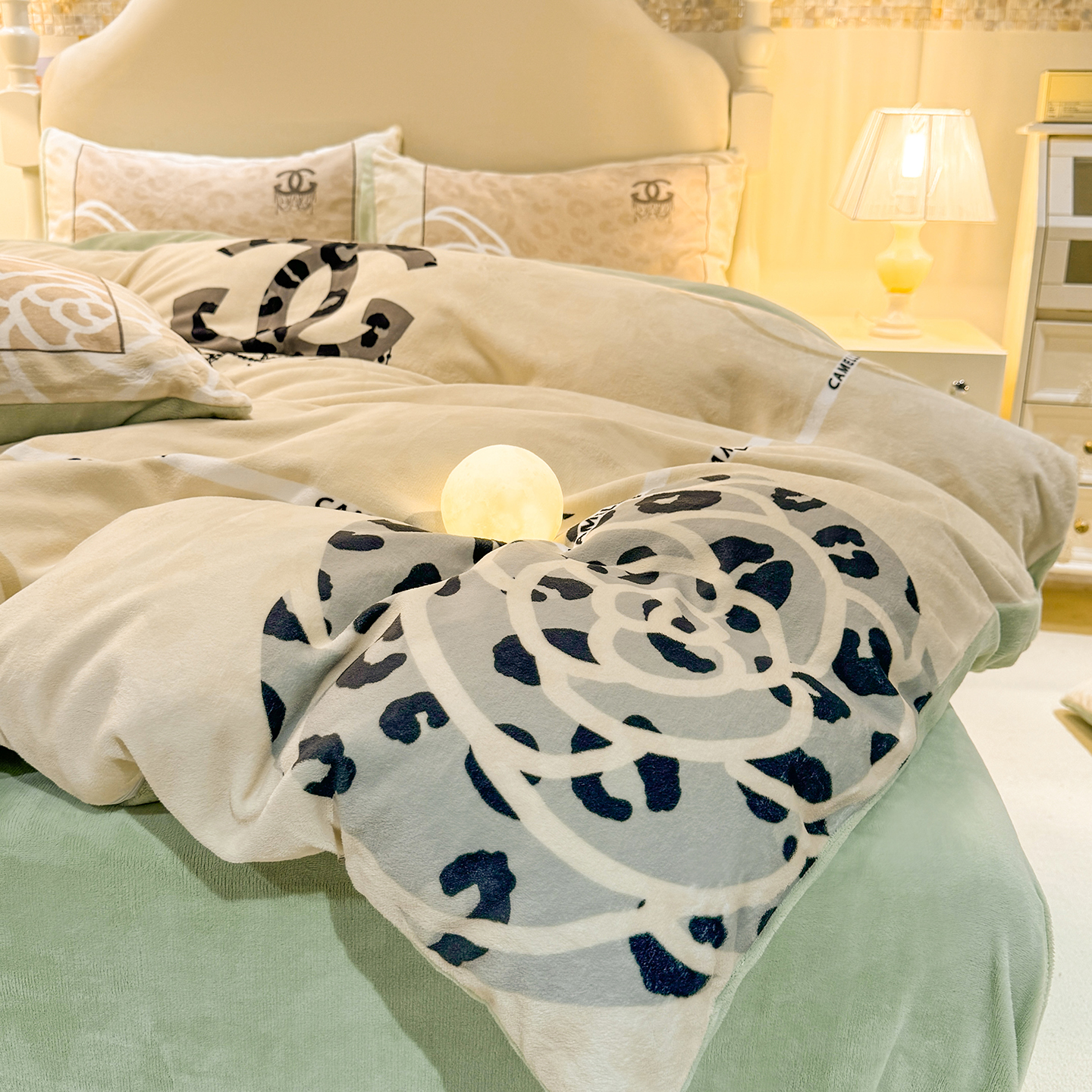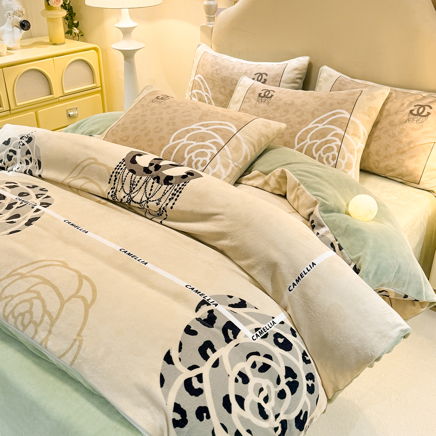 新方向 2025年 A类全消光牛奶绒四件套-漫步温莎-奶油白