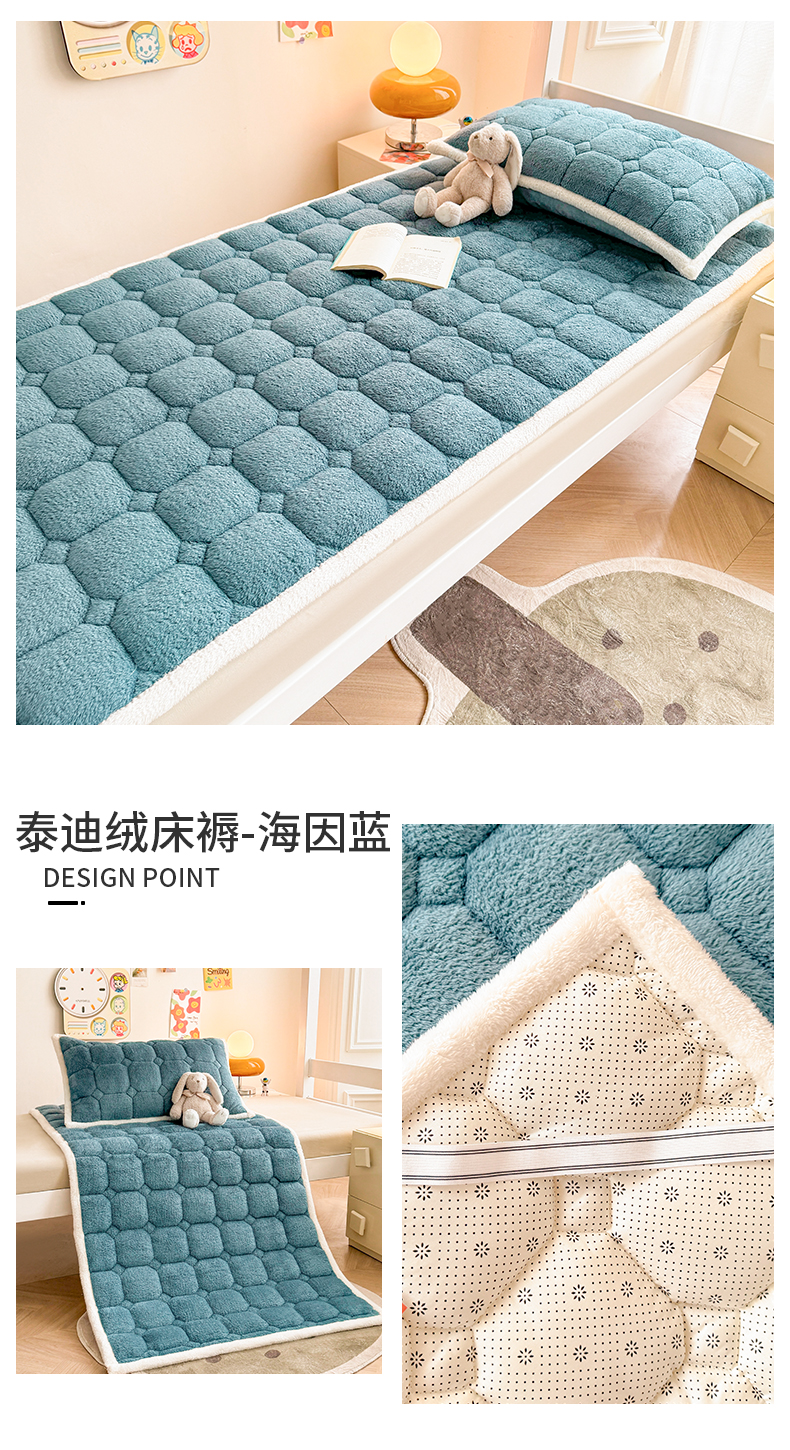 • 91家纺网 家纺一手货源 找家纺 雯豆家纺 2024新品泰迪绒学生床垫宿舍床褥子加厚上下铺北极绒床护垫 泰迪绒床褥-海因蓝