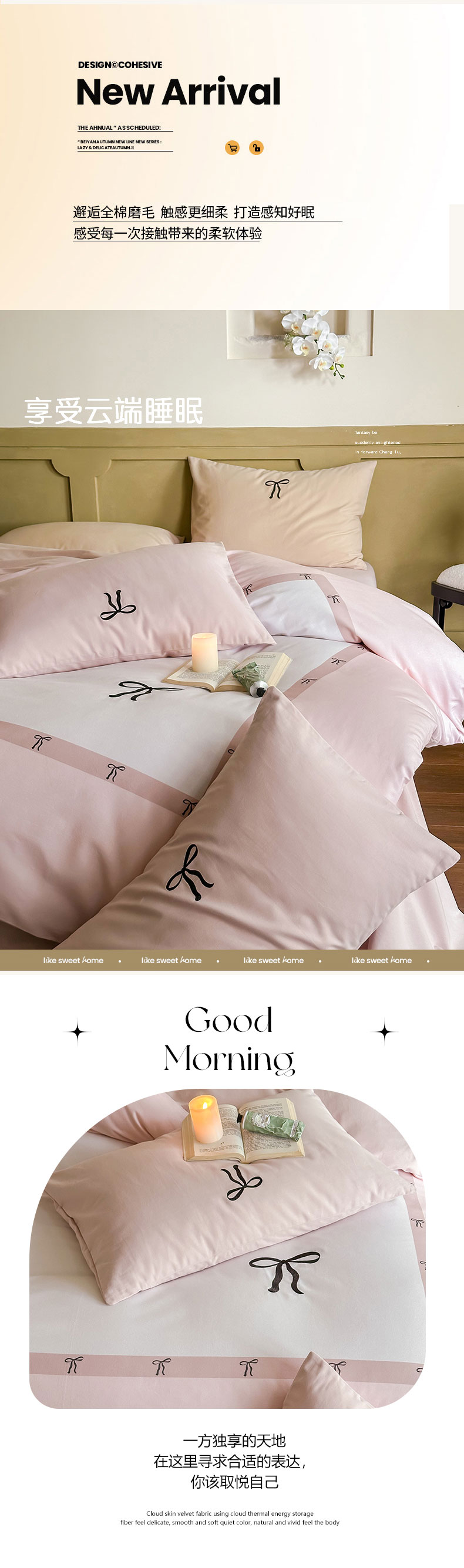 当前位置: 91家纺网 > 商品网购 > 床品套件 > 四件套 > 磨毛活性四件套 > 2024新款全棉磨毛数码印花绣花四件套-情书 情书粉