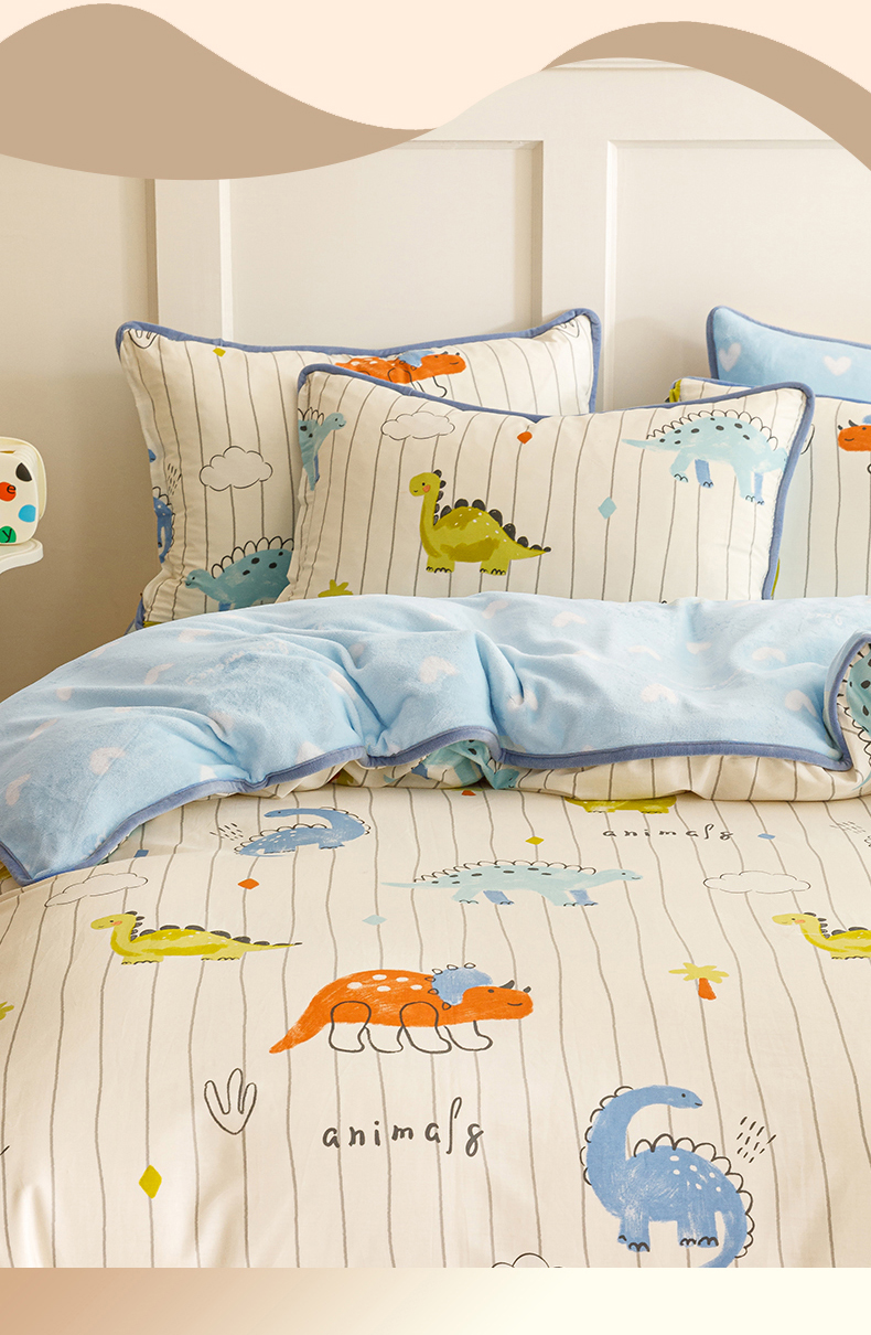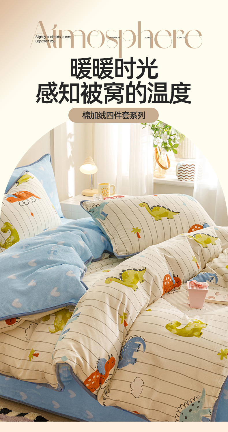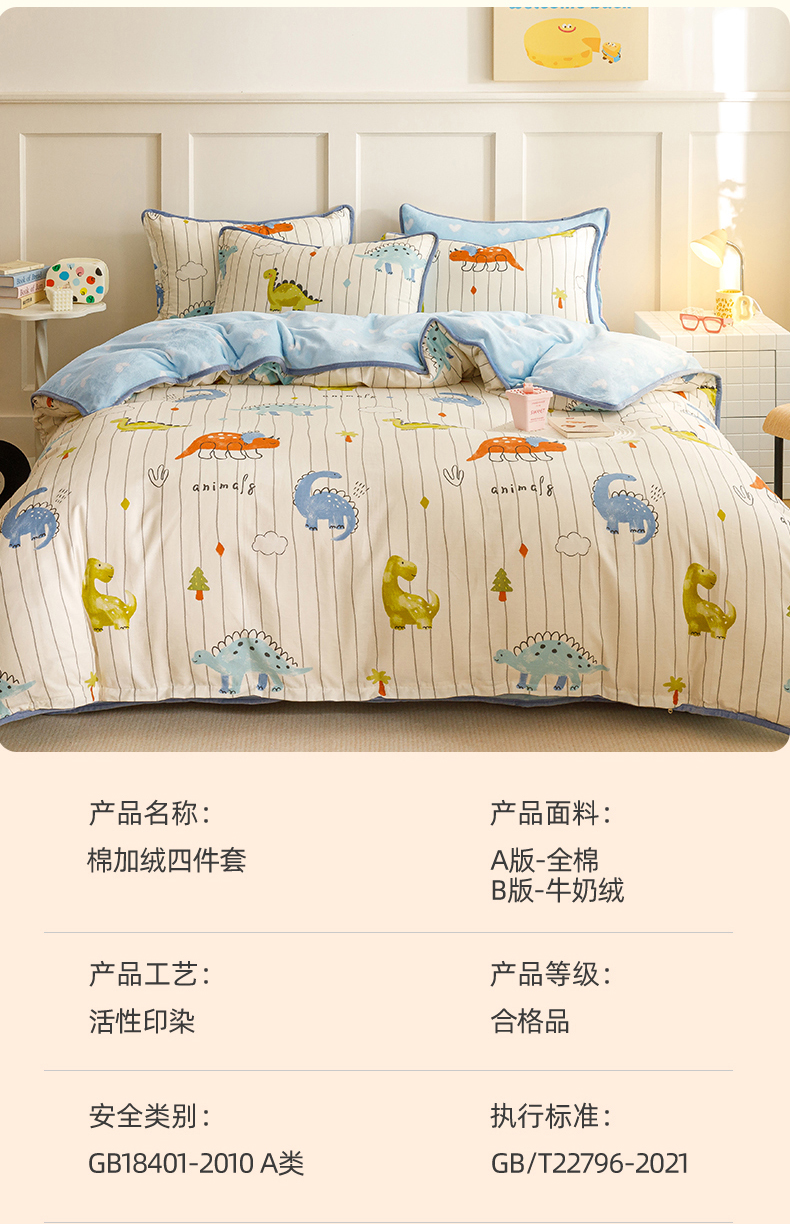 当前位置: 91家纺网 > 商品网购 > 床品套件 > 四件套 > 牛奶绒四件套 > 红粉佳人 2025新款棉加绒印花四件套 淘气恐龙