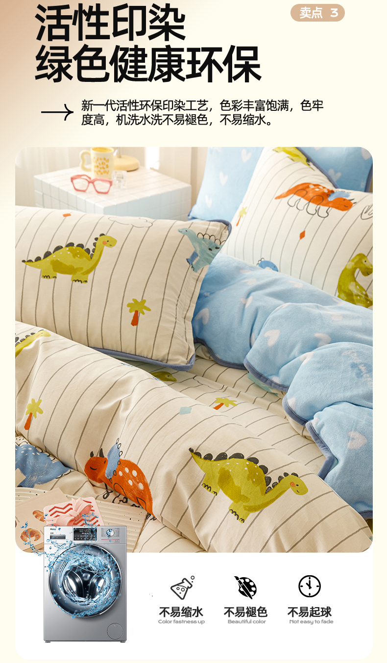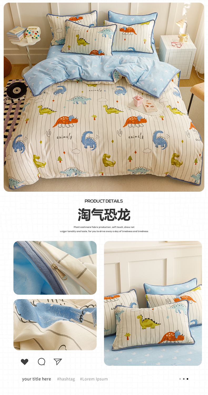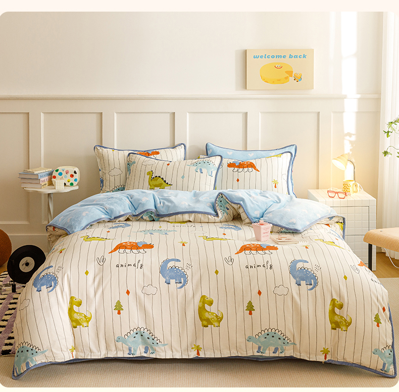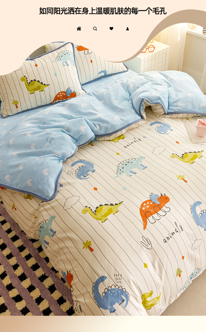当前位置: 91家纺网 > 商品网购 > 床品套件 > 四件套 > 牛奶绒四件套 > 红粉佳人 2025新款棉加绒印花四件套 淘气恐龙