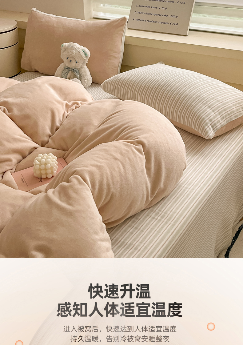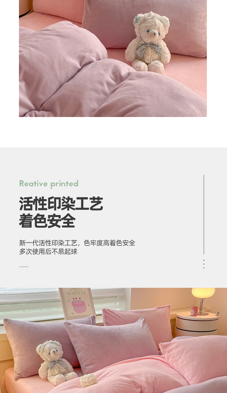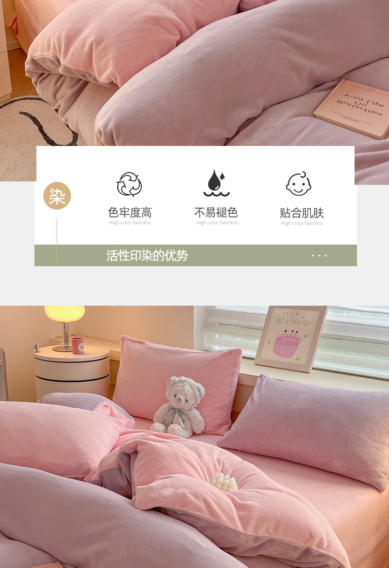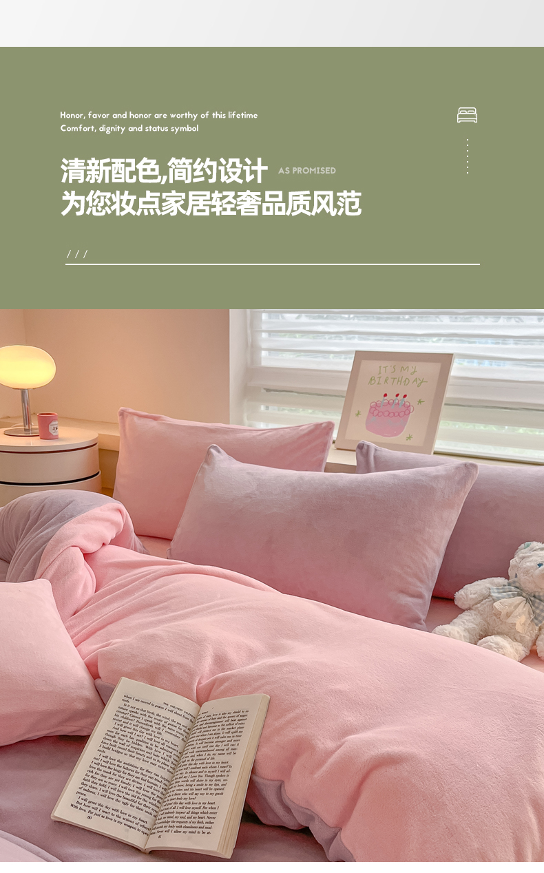 当前位置: 91家纺网 > 商品网购 > 床品套件 > 四件套 > 牛奶绒四件套 > 三朵家纺 2024新款加厚保暖牛奶绒混搭系列四件套 淡紫+粉玉
