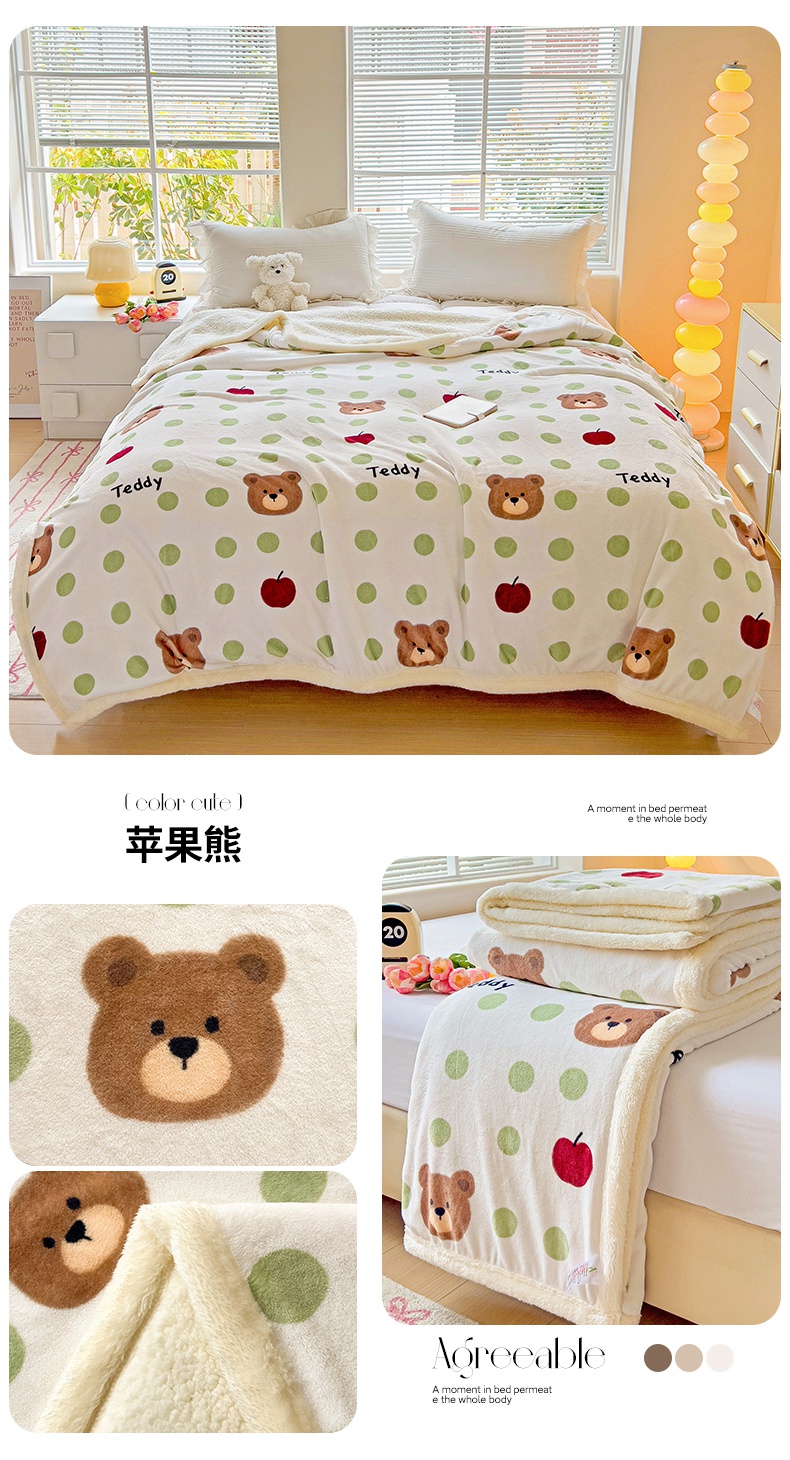 鑫喜莱家纺 2024新款牛奶绒羊羔绒盖毯毛毯毯子午睡毯 苹果熊