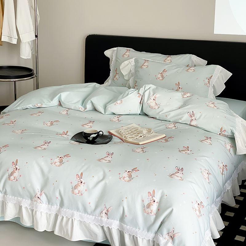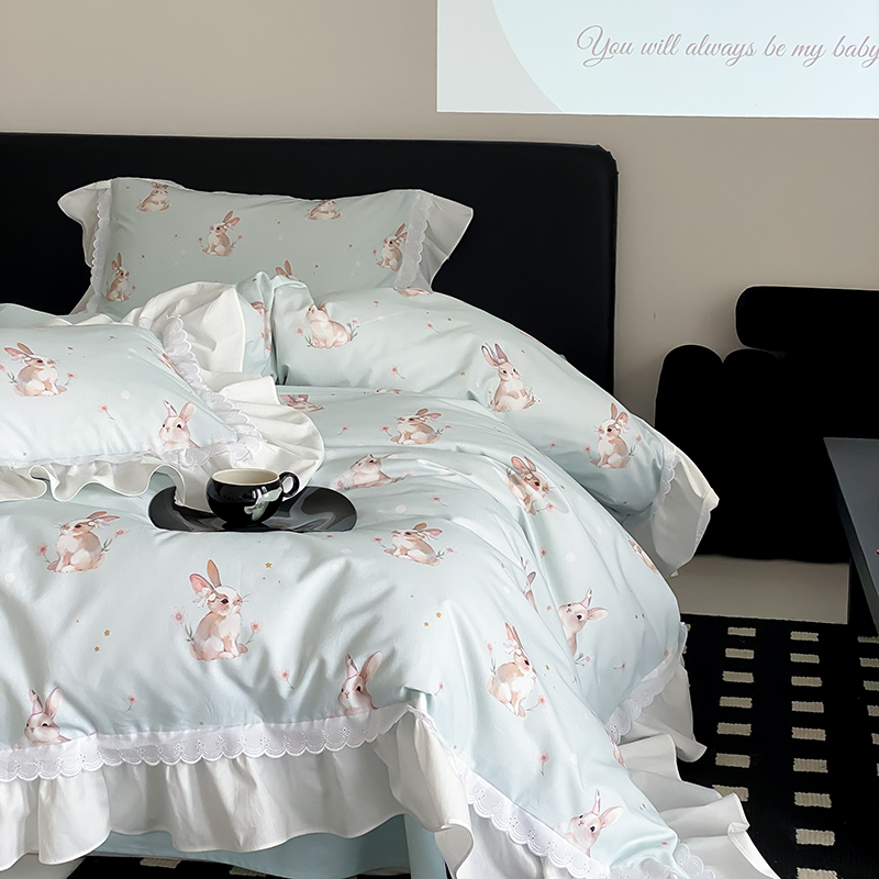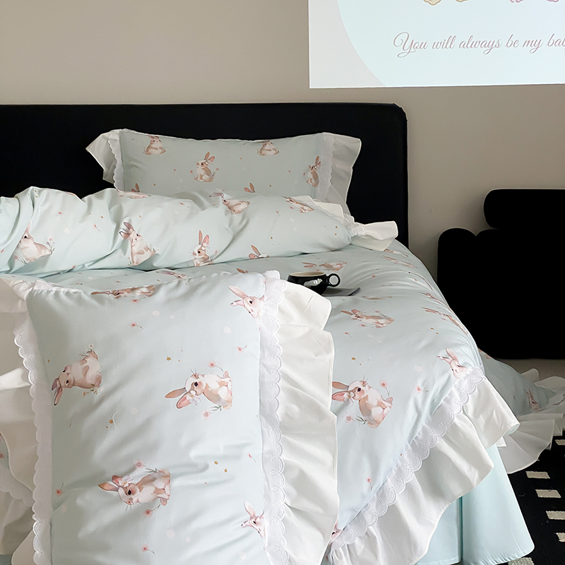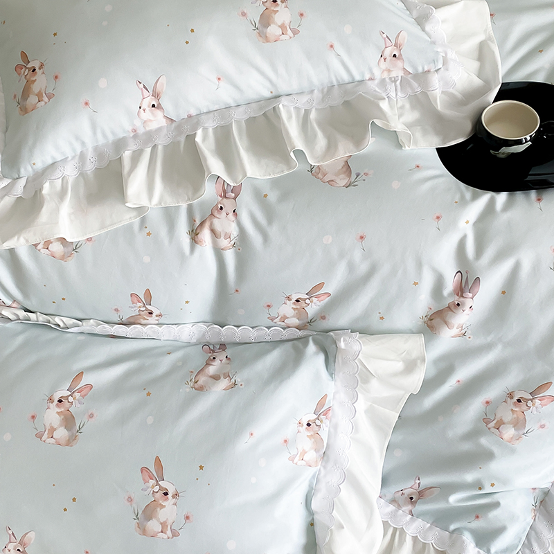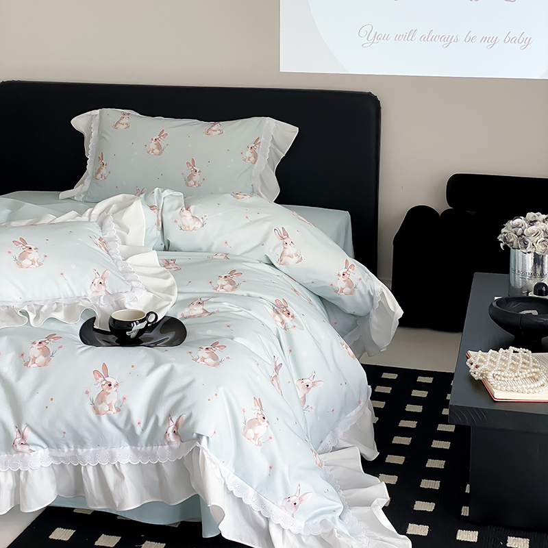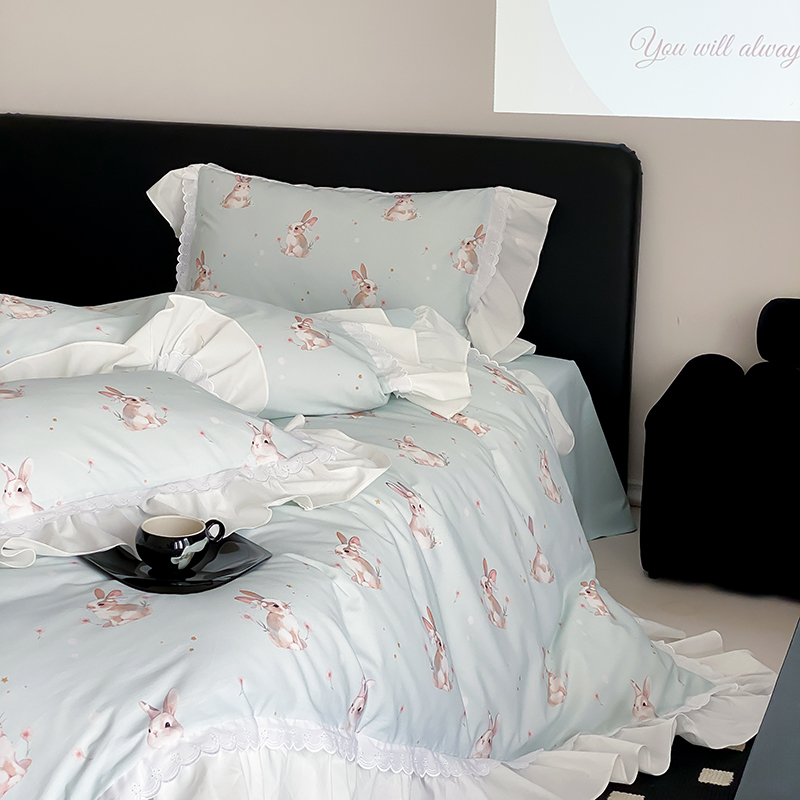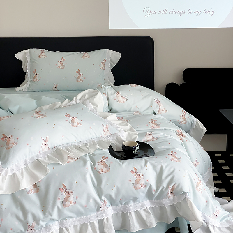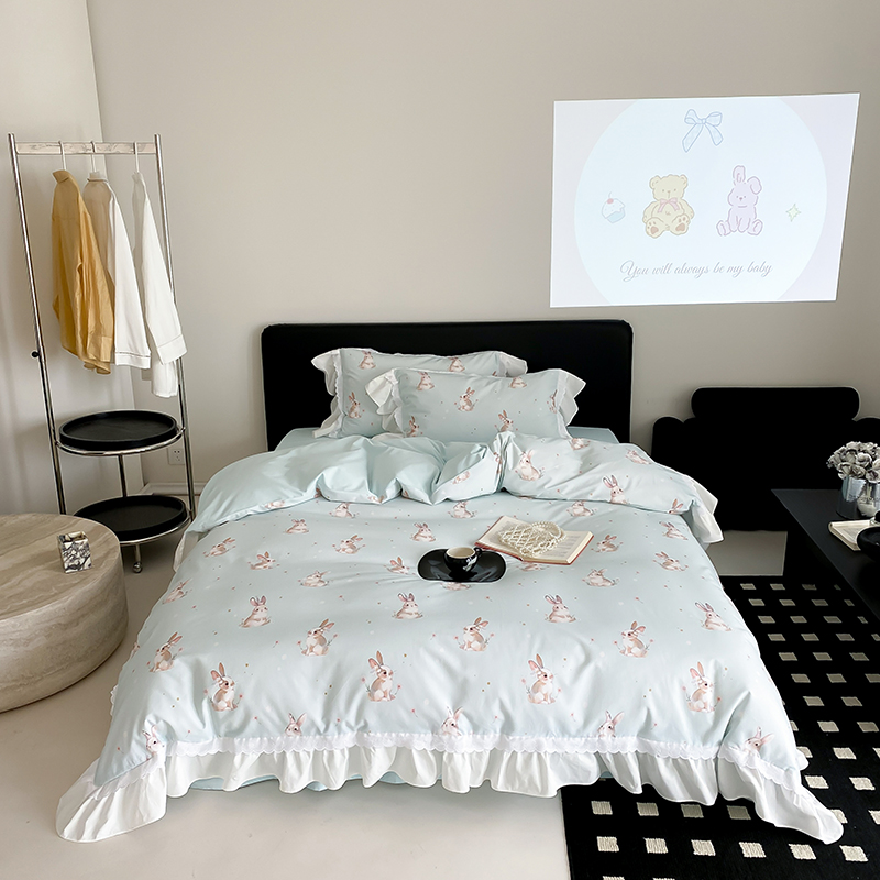 商品名称:2025新款加厚100s全棉磨毛四件套-蓓特兔 蓓特兔-蓝
