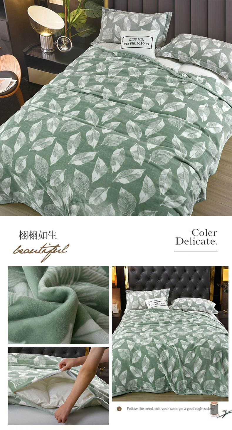 商品名称:好艺佳毛毯 2025新款升级多功能3D数码印花毛毯 被套两用拉舍尔云毯 蒲公英的约定-绿
