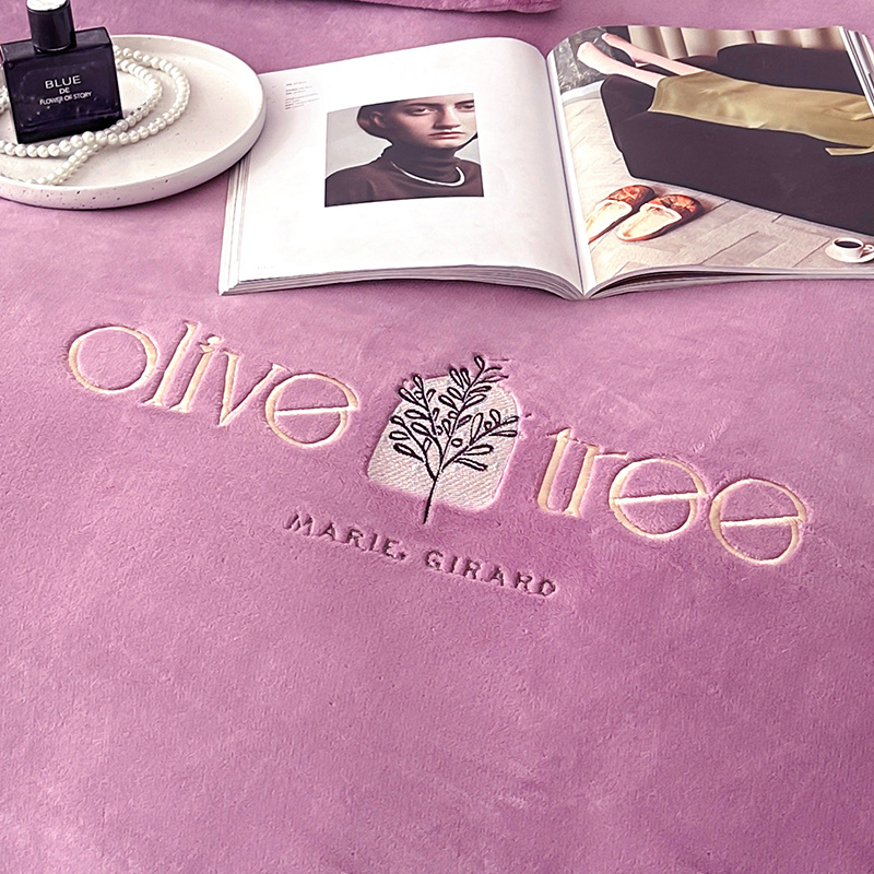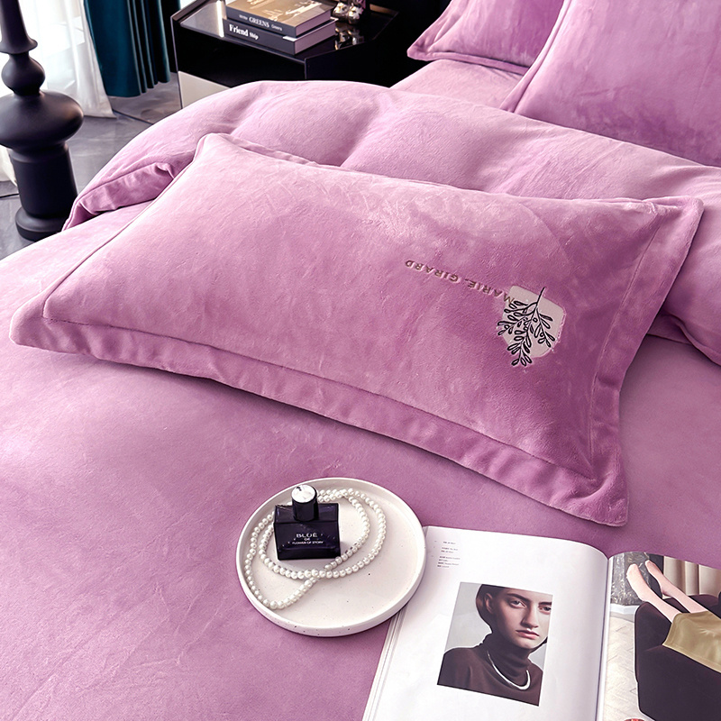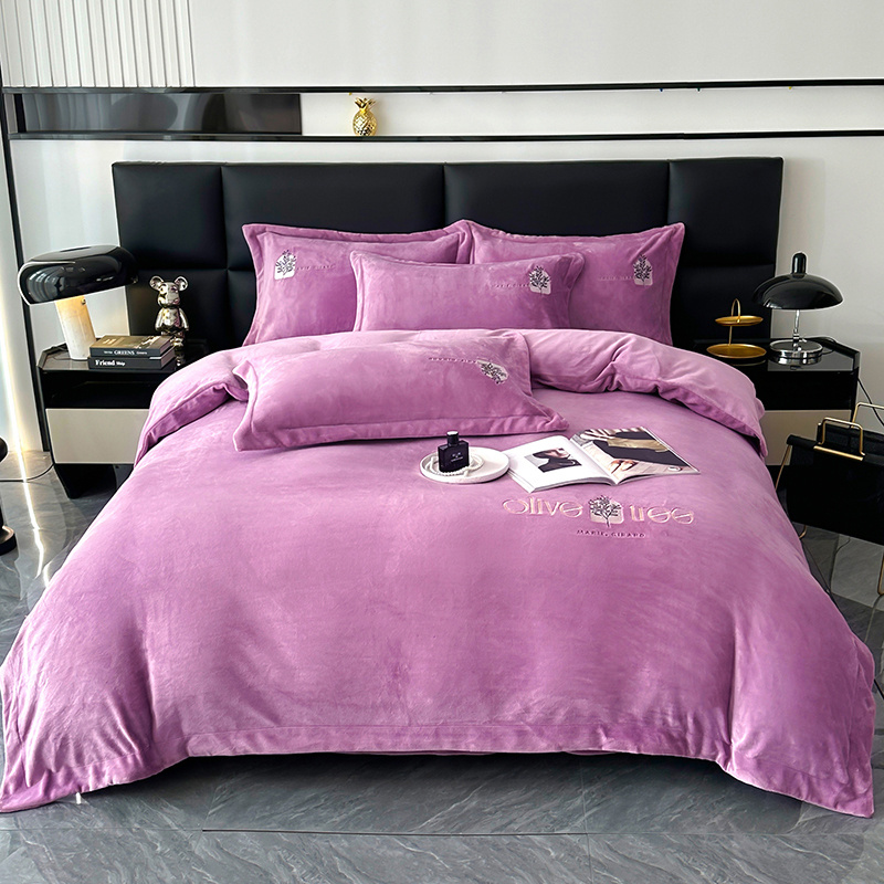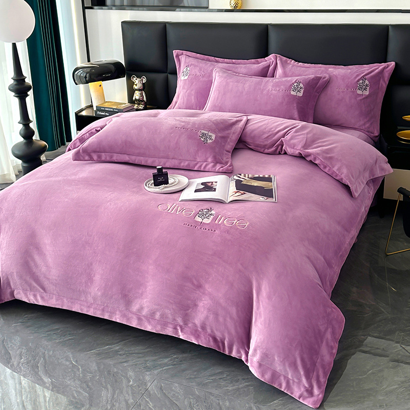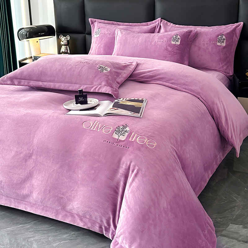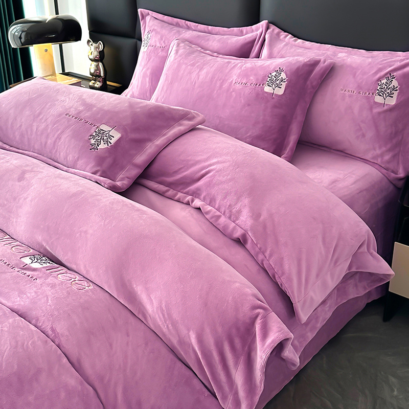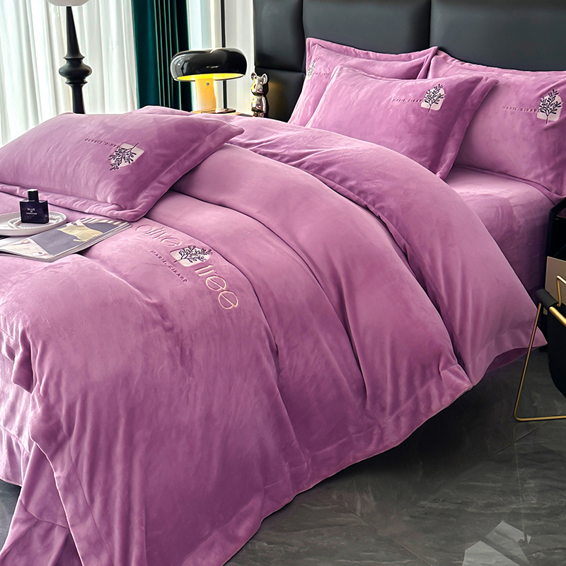 橘姿家纺 2024新款高克重九斤牛奶绒绣花四件套--相伴系列 相伴-紫色