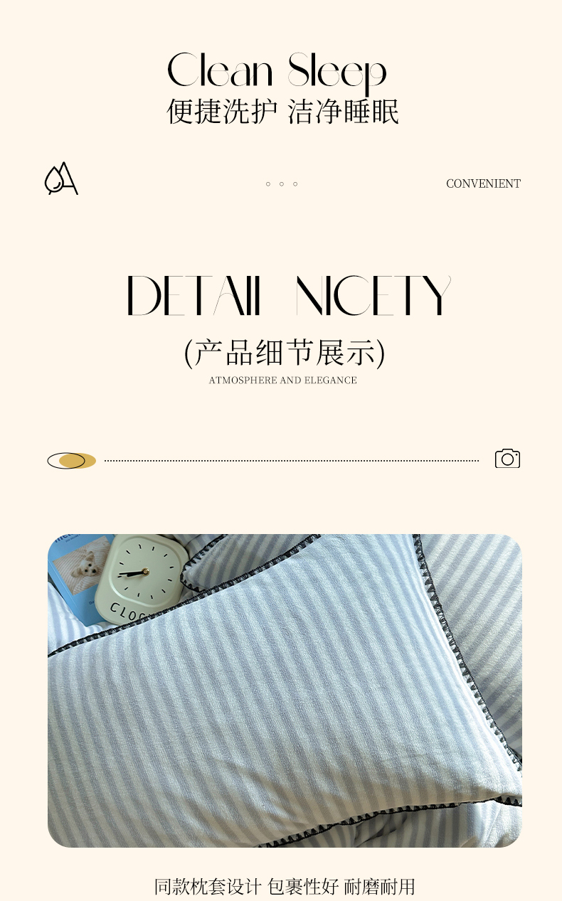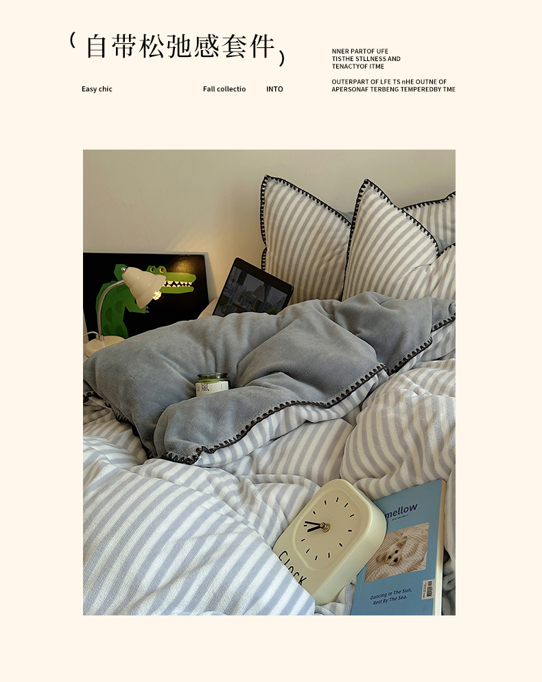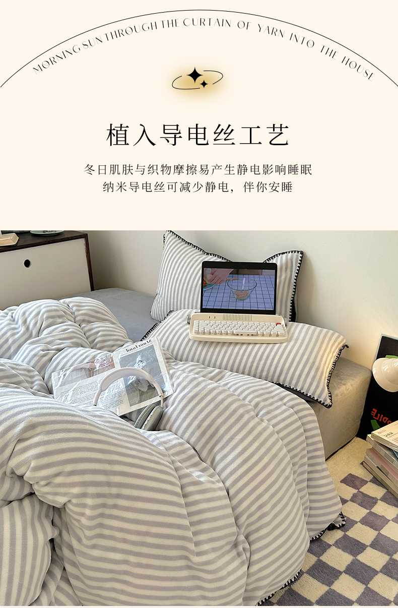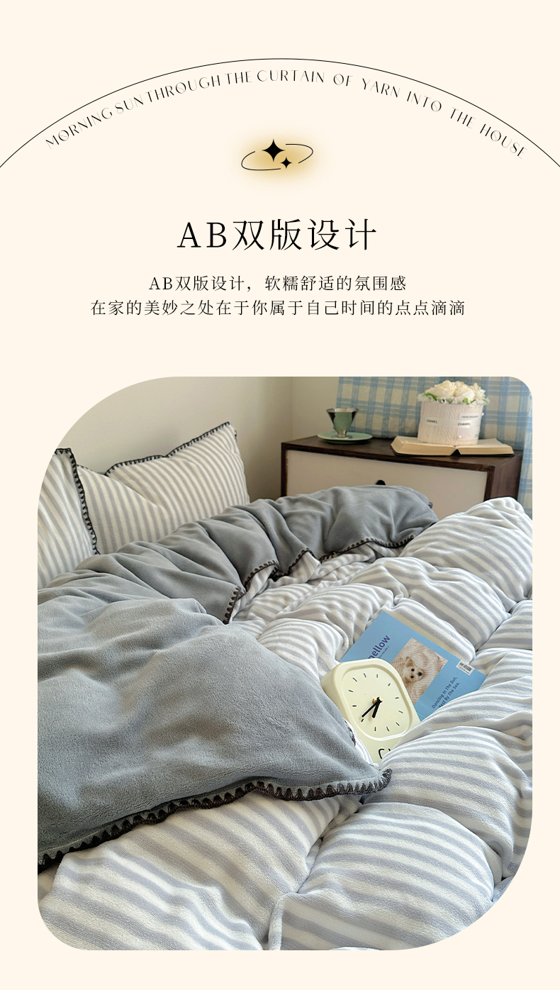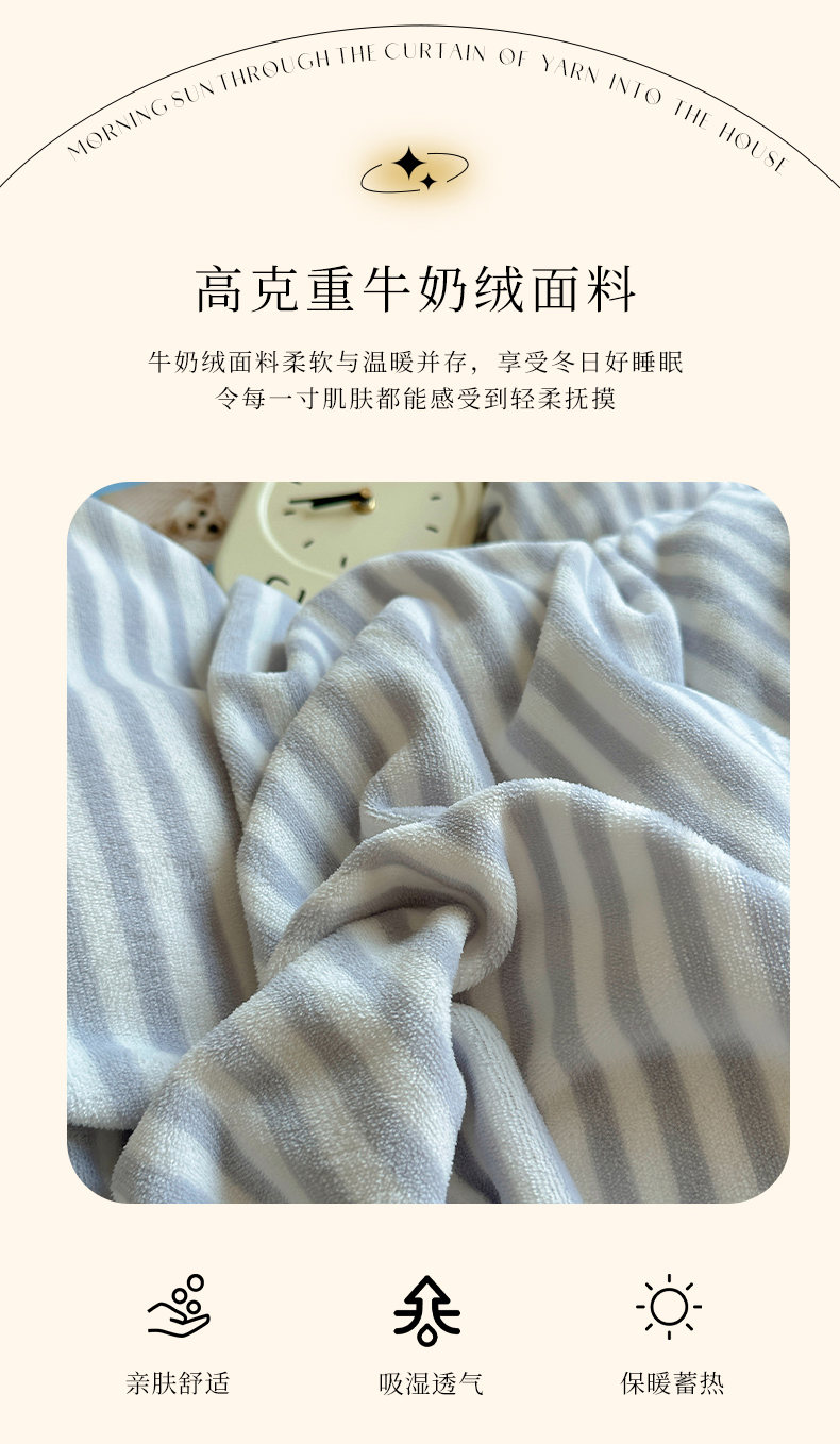 商品名称:三朵 2024新款无印风牛奶绒四件套 淡雅灰细条
