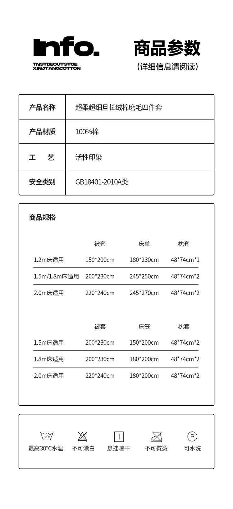 标准1.8m(6英尺)床单款 | ¥230.00 |