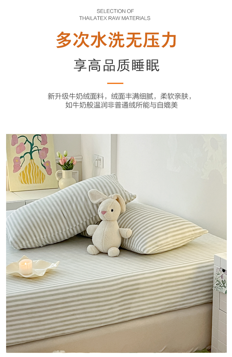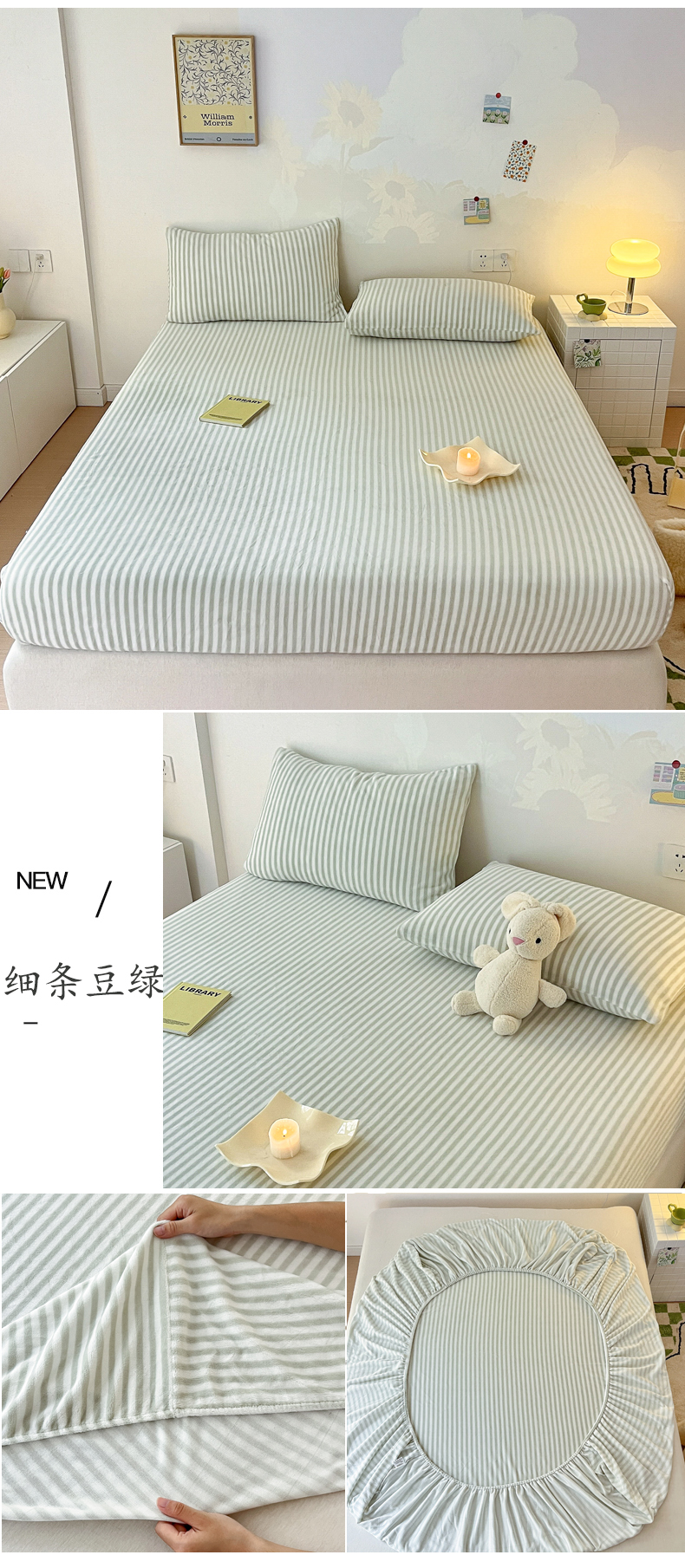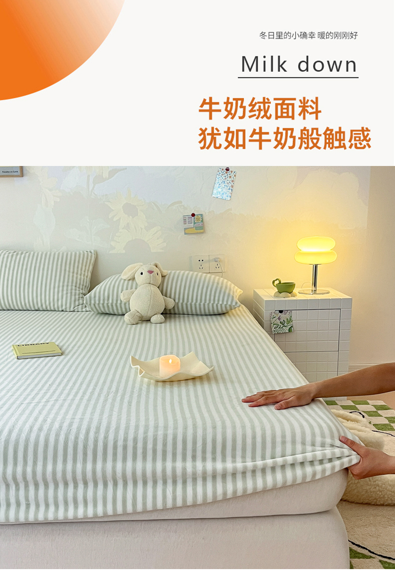 商品名称:2024新款秋冬新品牛奶绒印花单床笠 细条豆绿