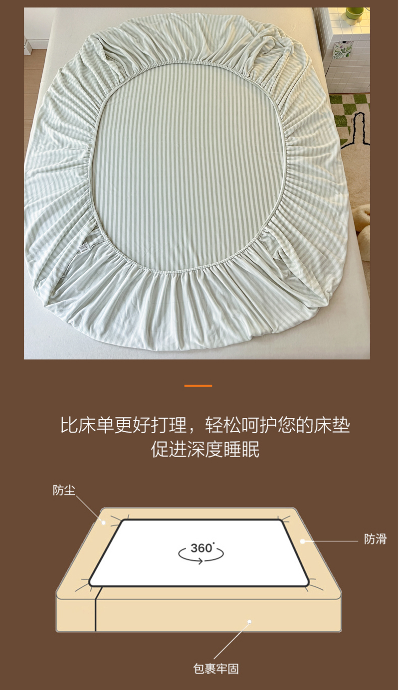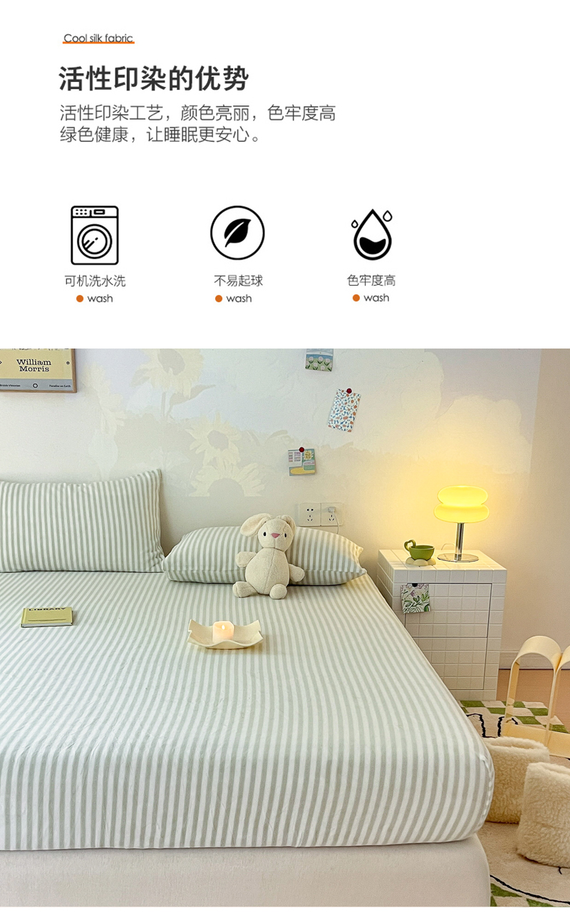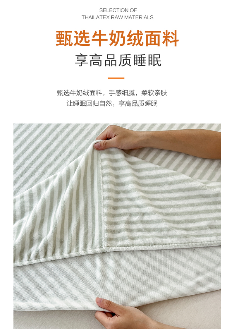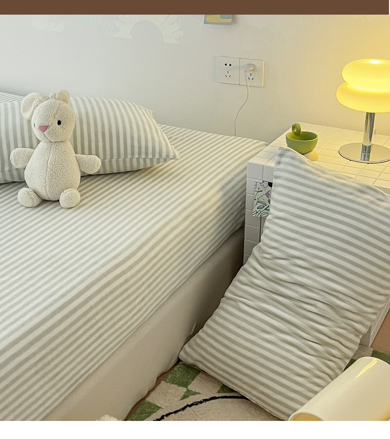 商品名称:2024新款秋冬新品牛奶绒印花单床笠 细条豆绿