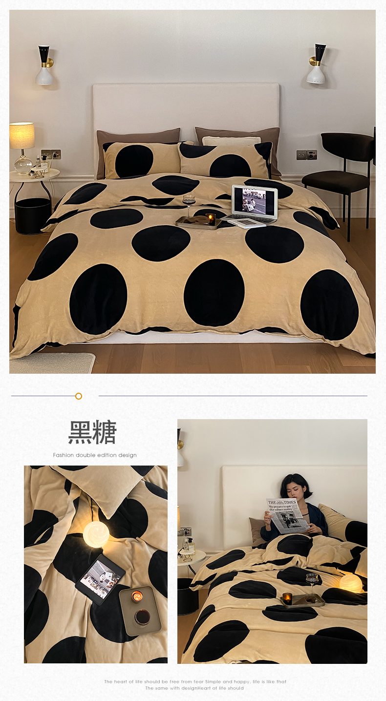 当前位置: 91家纺网 > 商品网购 > 床品套件 > 四件套 > 牛奶绒四件套 > 2025新款小清新双面牛奶绒四件套 黑糖