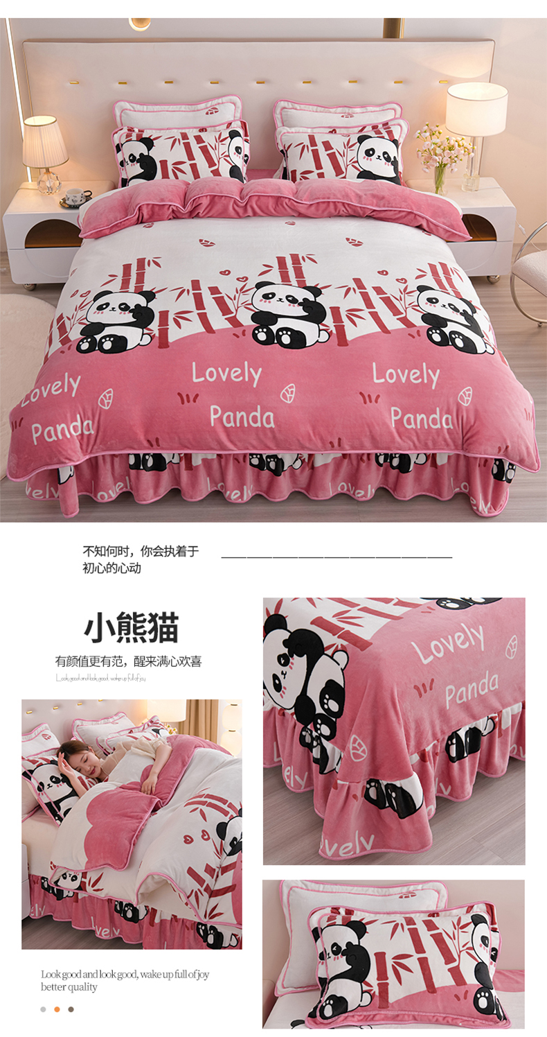 商品名称:阿亮家居 2024新款8.5斤保暖牛奶绒金貂绒床裙款四件套 小熊猫