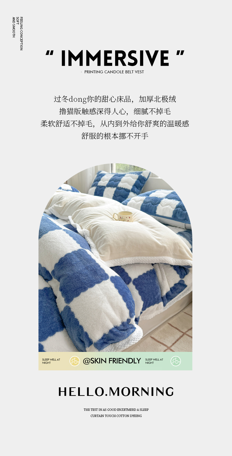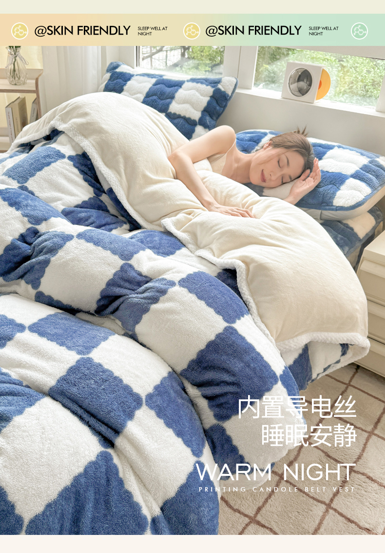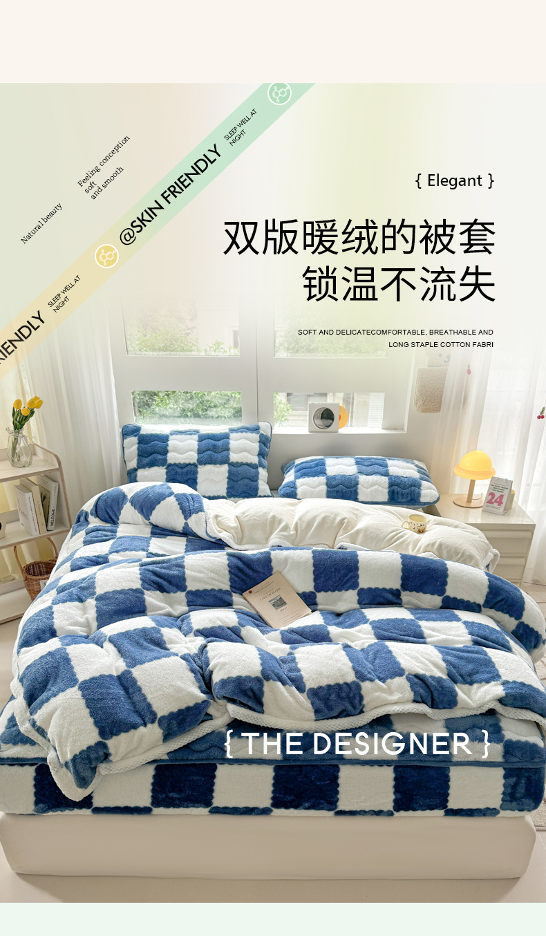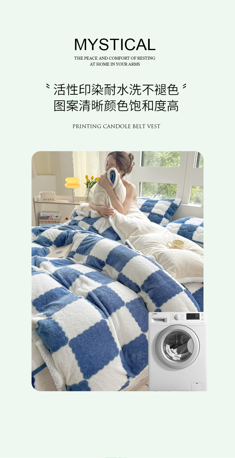 商品名称:2024新款A类北极绒格子-条纹系列宽包边加厚被套(自然光图) 棋盘格-高贵蓝