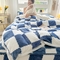 2024新款A类北极绒格子-条纹系列宽包边加厚被套(自然光图) 棋盘格-高贵蓝