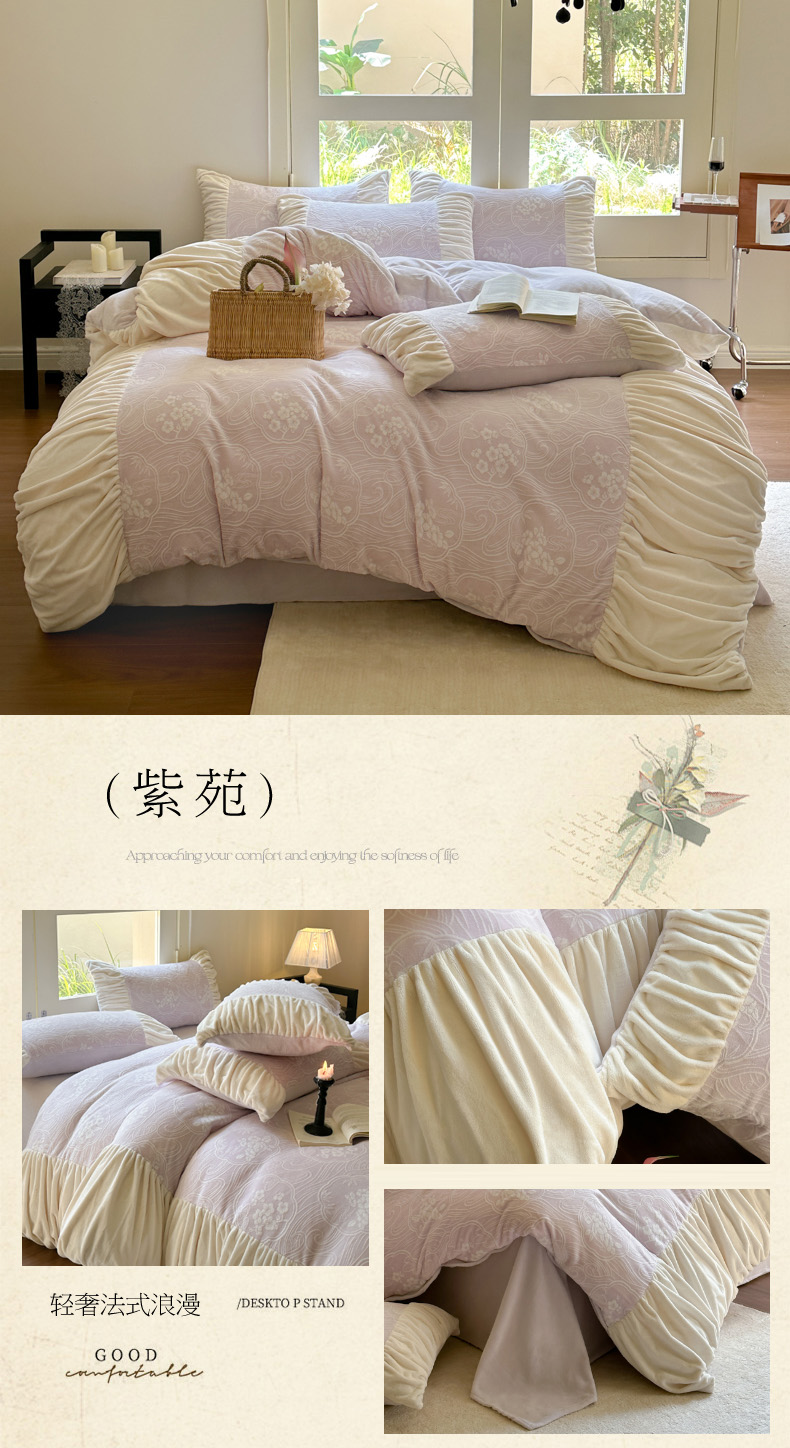 商品名称:慕澄家纺 2024新款法式轻奢款琢色烂花牛奶绒四件套 紫苑