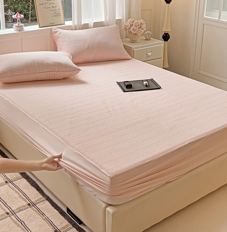 漫时光 2025新款40支全棉纯色夹棉床笠款 樱花粉