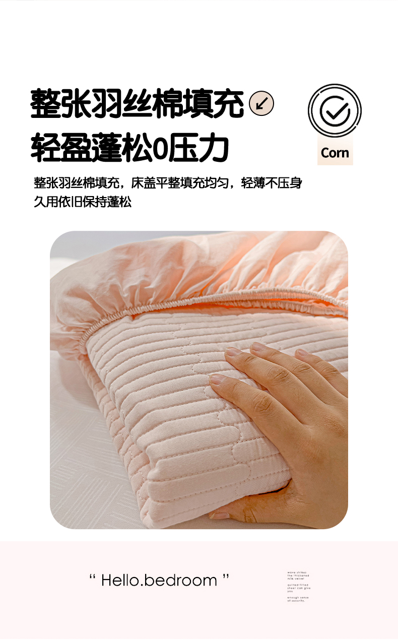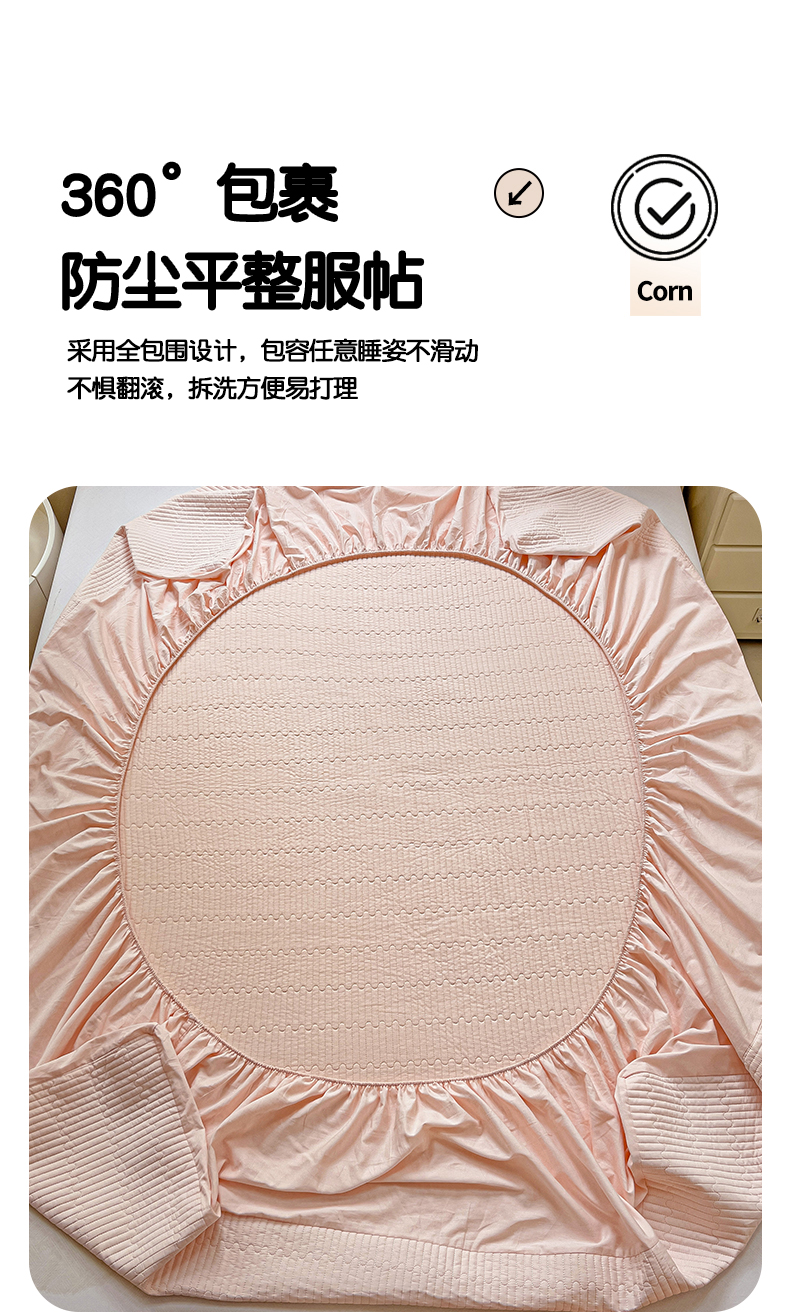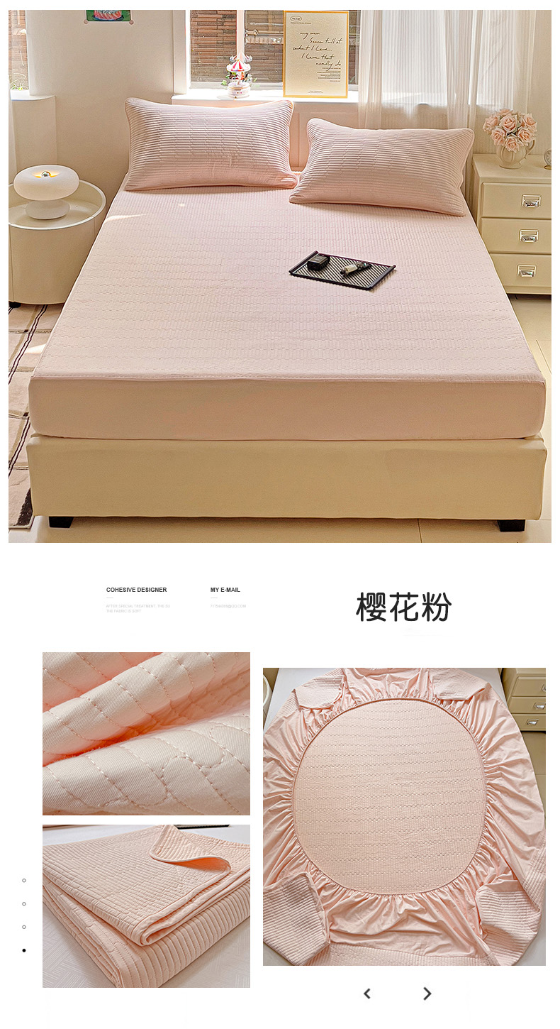 • 91家纺网 家纺一手货源 找家纺 漫时光 2025新款40支全棉纯色夹棉床笠款 樱花粉