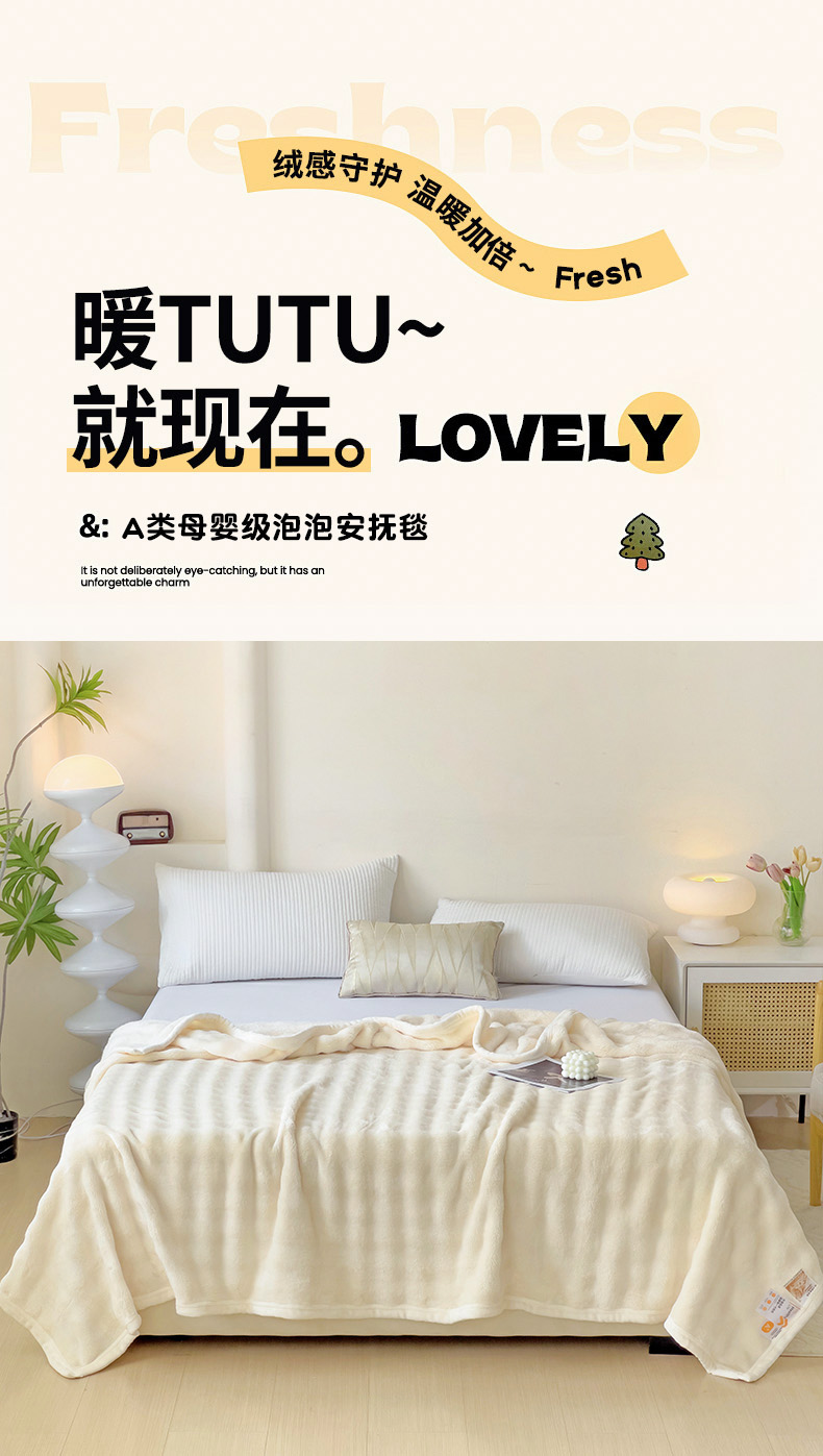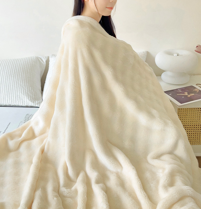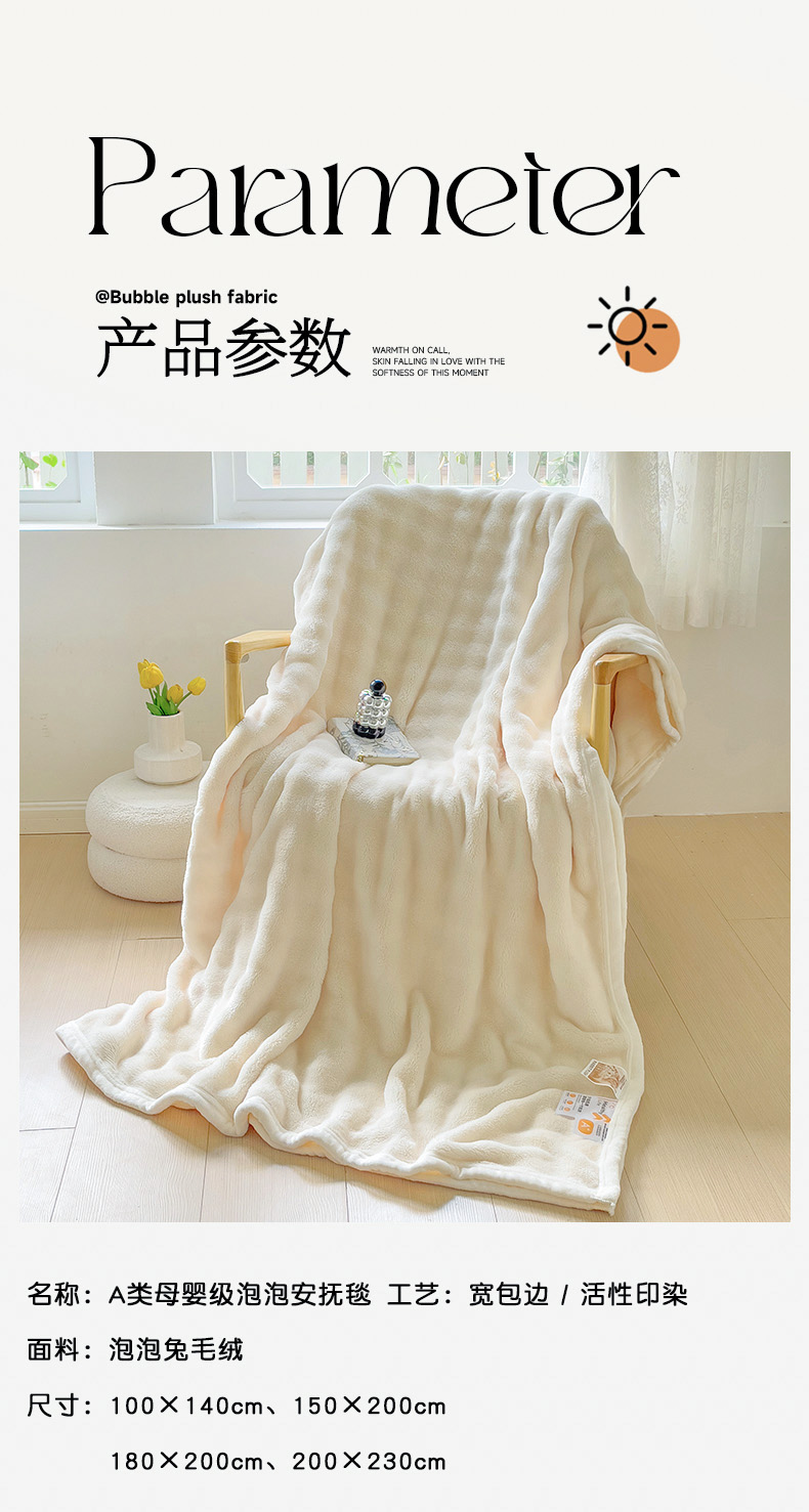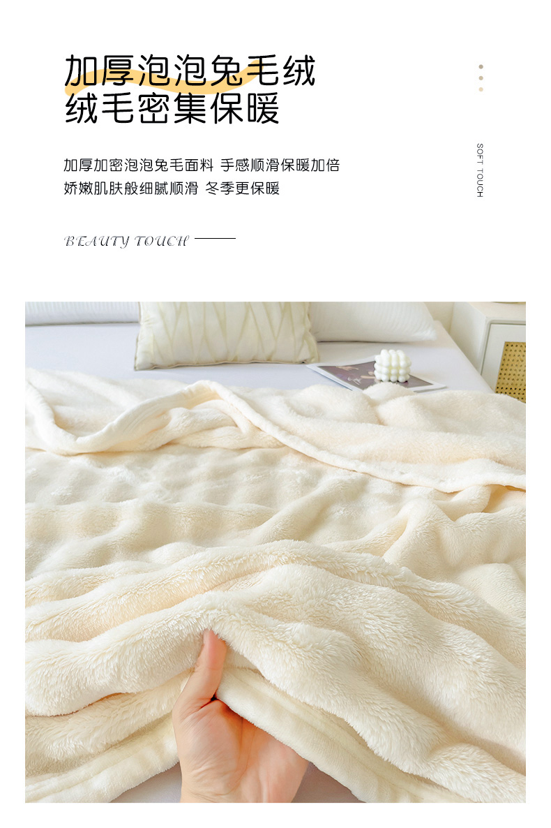 商品名称:优选良品 2025新款托卡斯母婴级兔兔绒大泡泡毛毯安抚四季床盖双面牛奶绒床单 泡泡兔毛绒-奶白