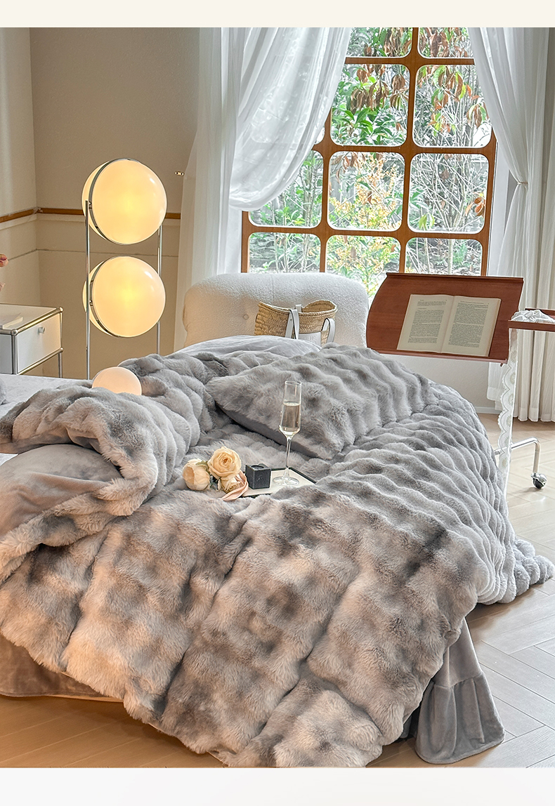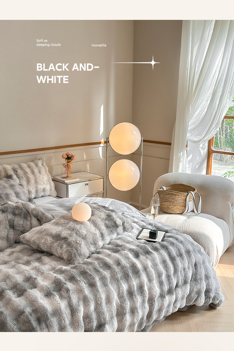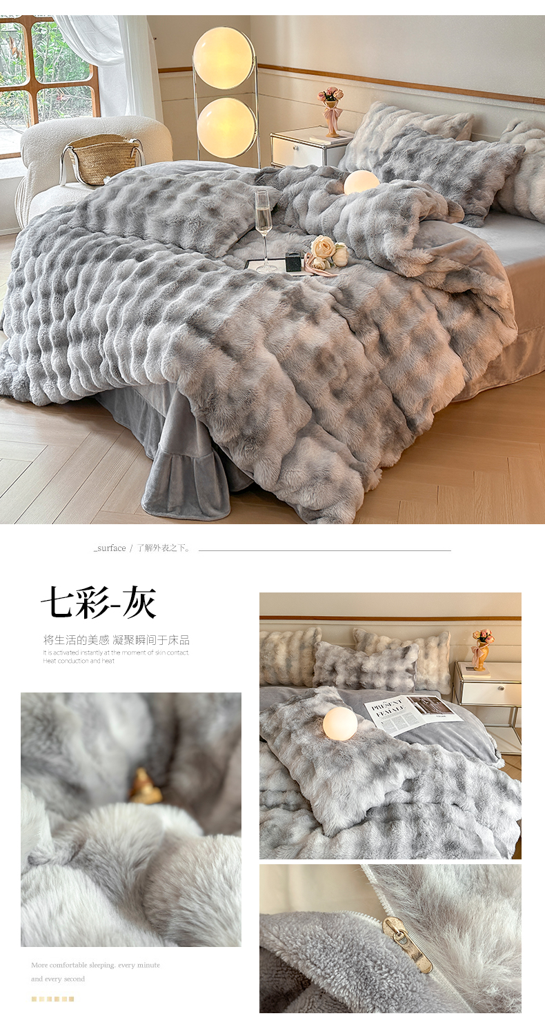 商品名称:畅畅家纺 2024新款AB版冬季纯色七彩兔兔绒兔毛绒牛奶绒四件套 七彩-灰