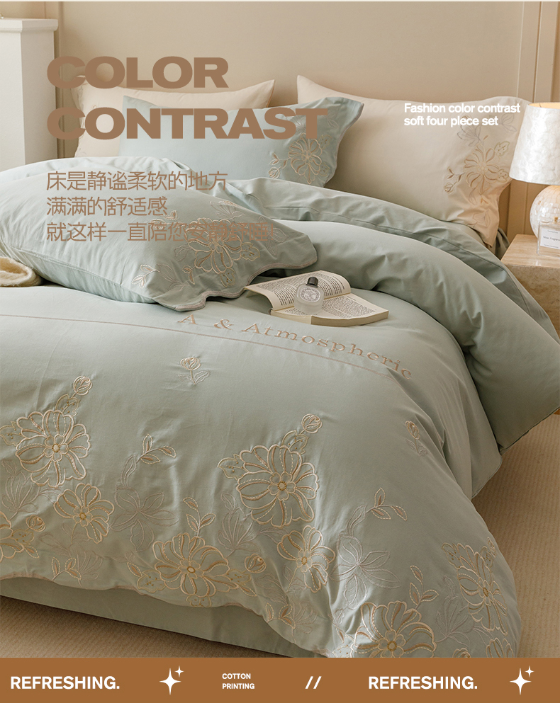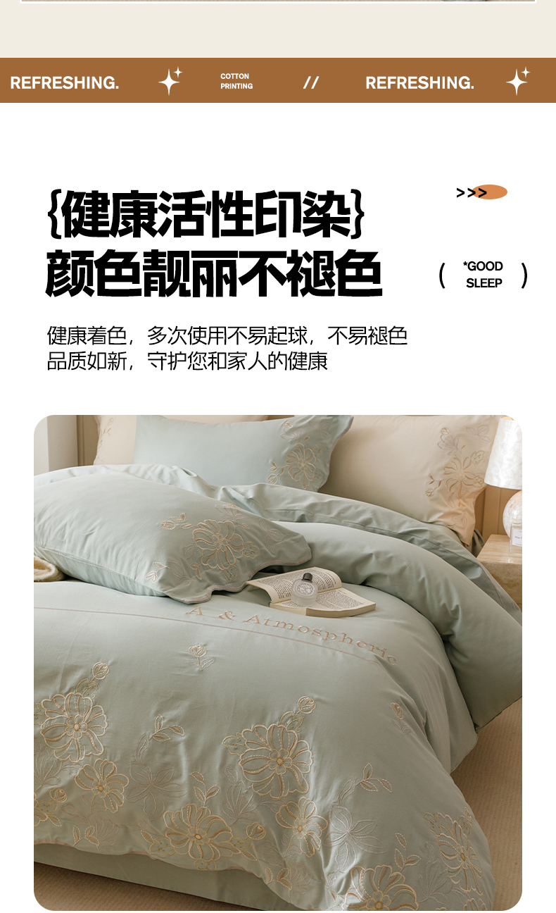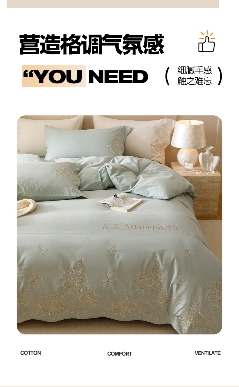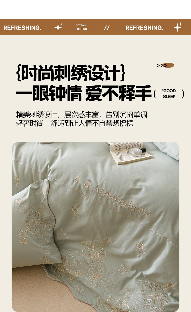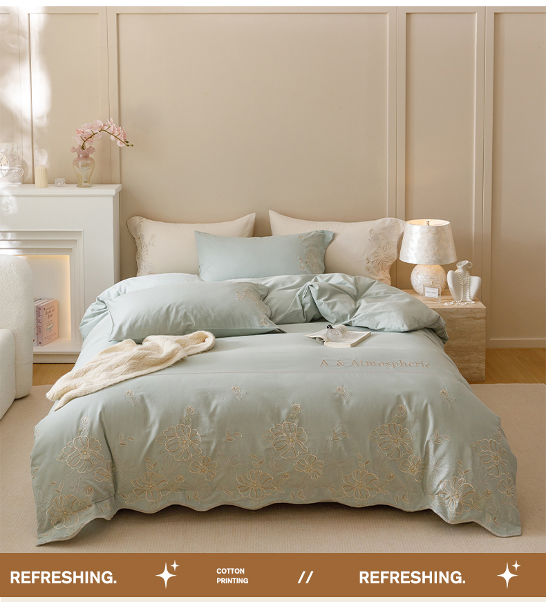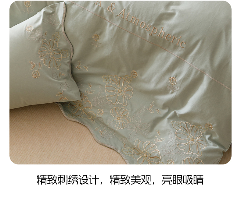 (总)艾莱家纺 2025新款A类精梳纯棉刺绣花四件套-赫柏,赫柏-橙夕,赫柏-花田米,赫柏-浅粉,赫柏-夜绿