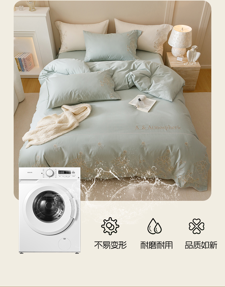 (总)艾莱家纺 2025新款A类水洗棉加厚绣花四件套-栀夏,栀夏-草莓奶粉,栀夏-格林棕,栀夏-暮光绿,栀夏-青叶紫,栀夏-银蓝