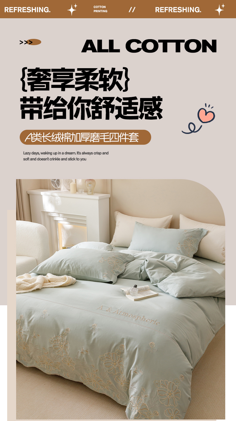 (总)艾莱家纺 2025新款A类新疆长绒棉加厚柔顺磨毛四件套--爱永恒系列,爱永恒-可可奶,爱永恒-大地色,爱永恒-北欧灰,爱永恒-抹茶绿,爱永恒-浅豆沙,爱永恒-嫣红