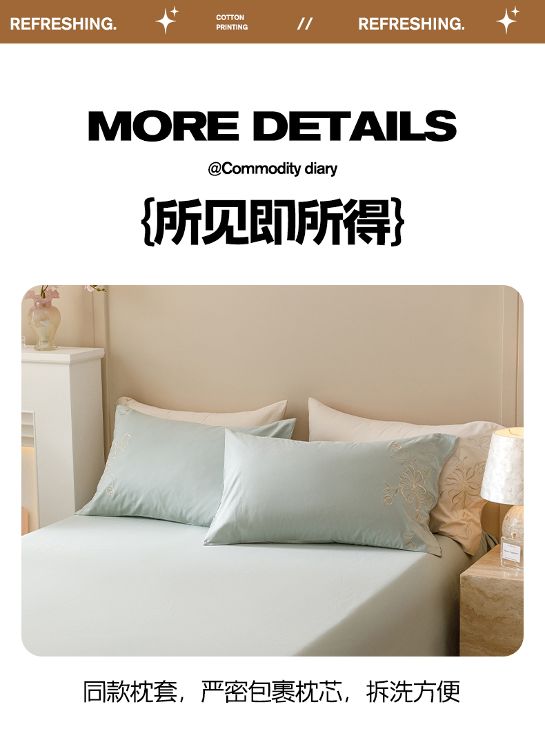 (总)艾莱家纺 2025新款A类100支长绒棉纯棉四件套-郁金香,郁金香-薄荷绿,郁金香-浅米驼,郁金香-珍珠粉