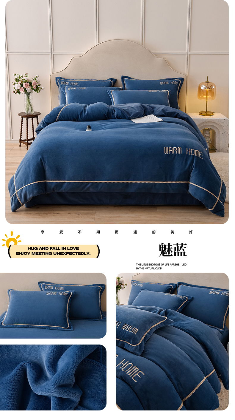 商品名称:同田家纺 2024新款230克蓄暖高克重牛奶绒四件套 魅蓝