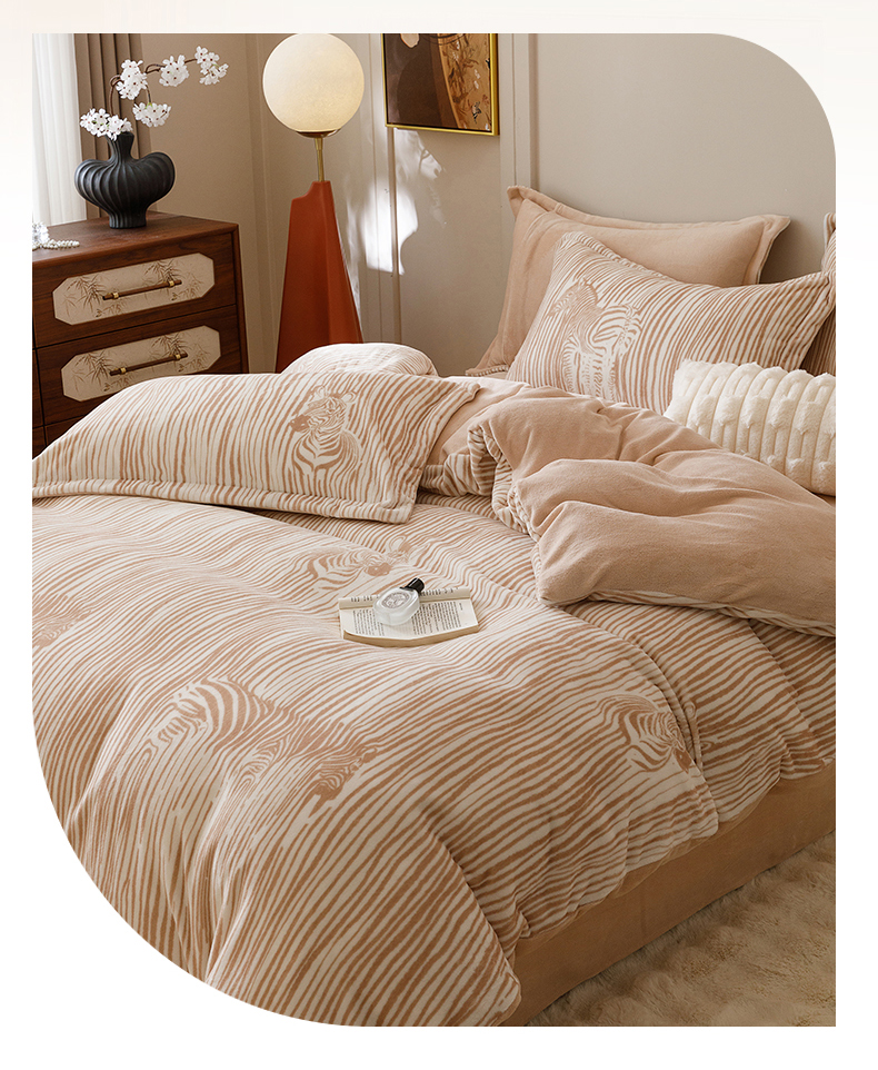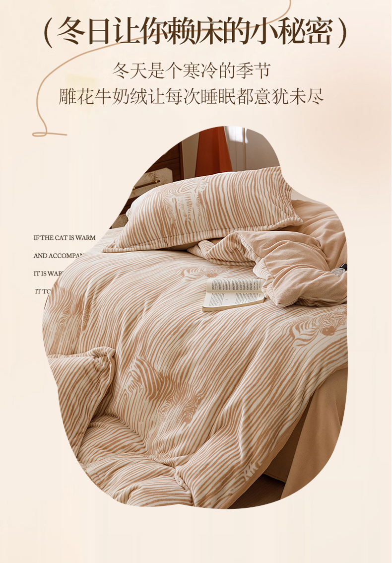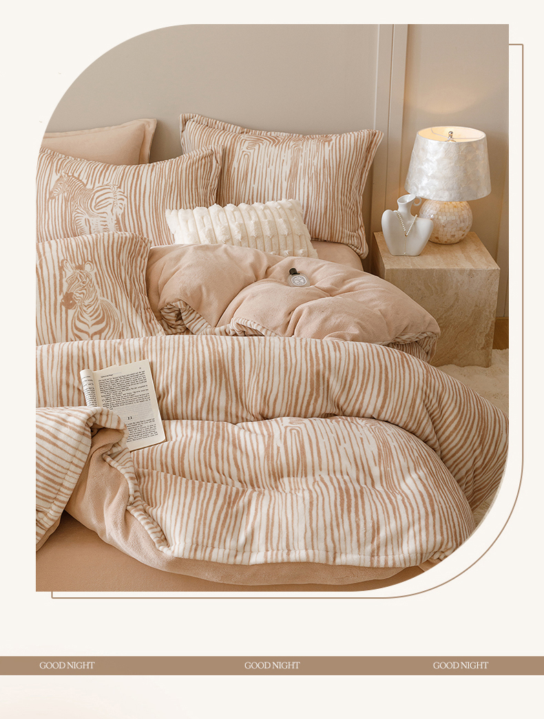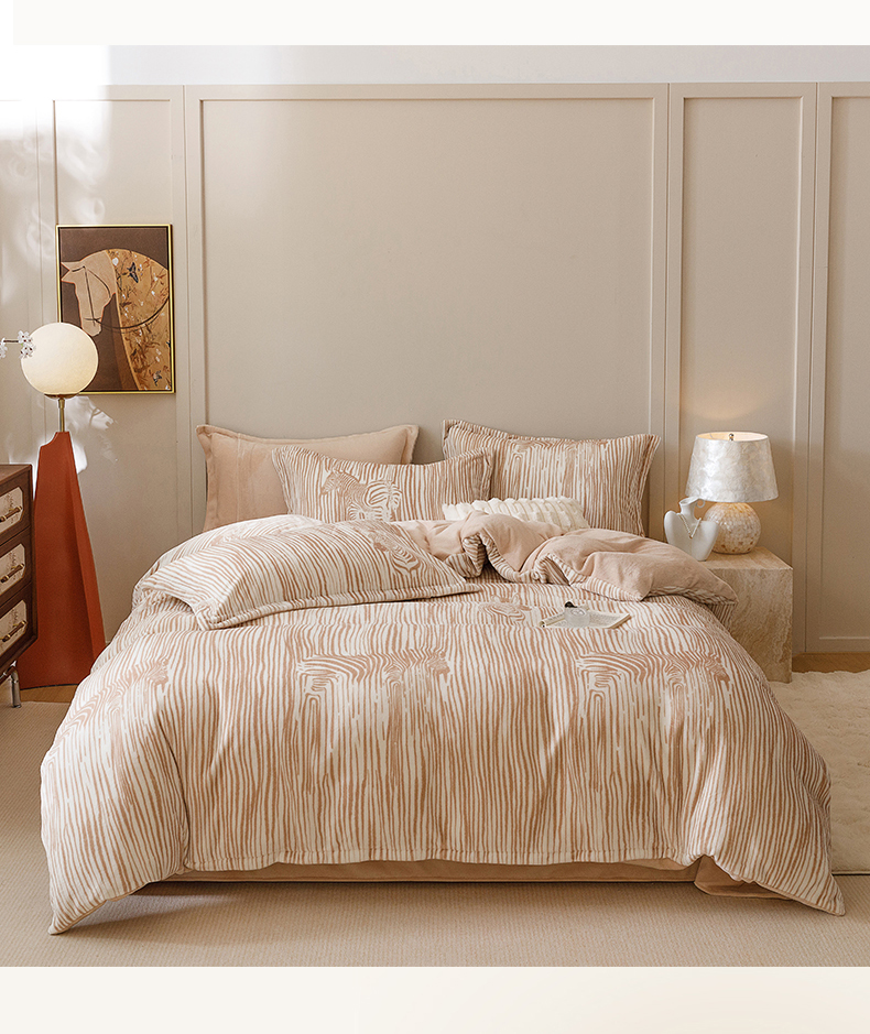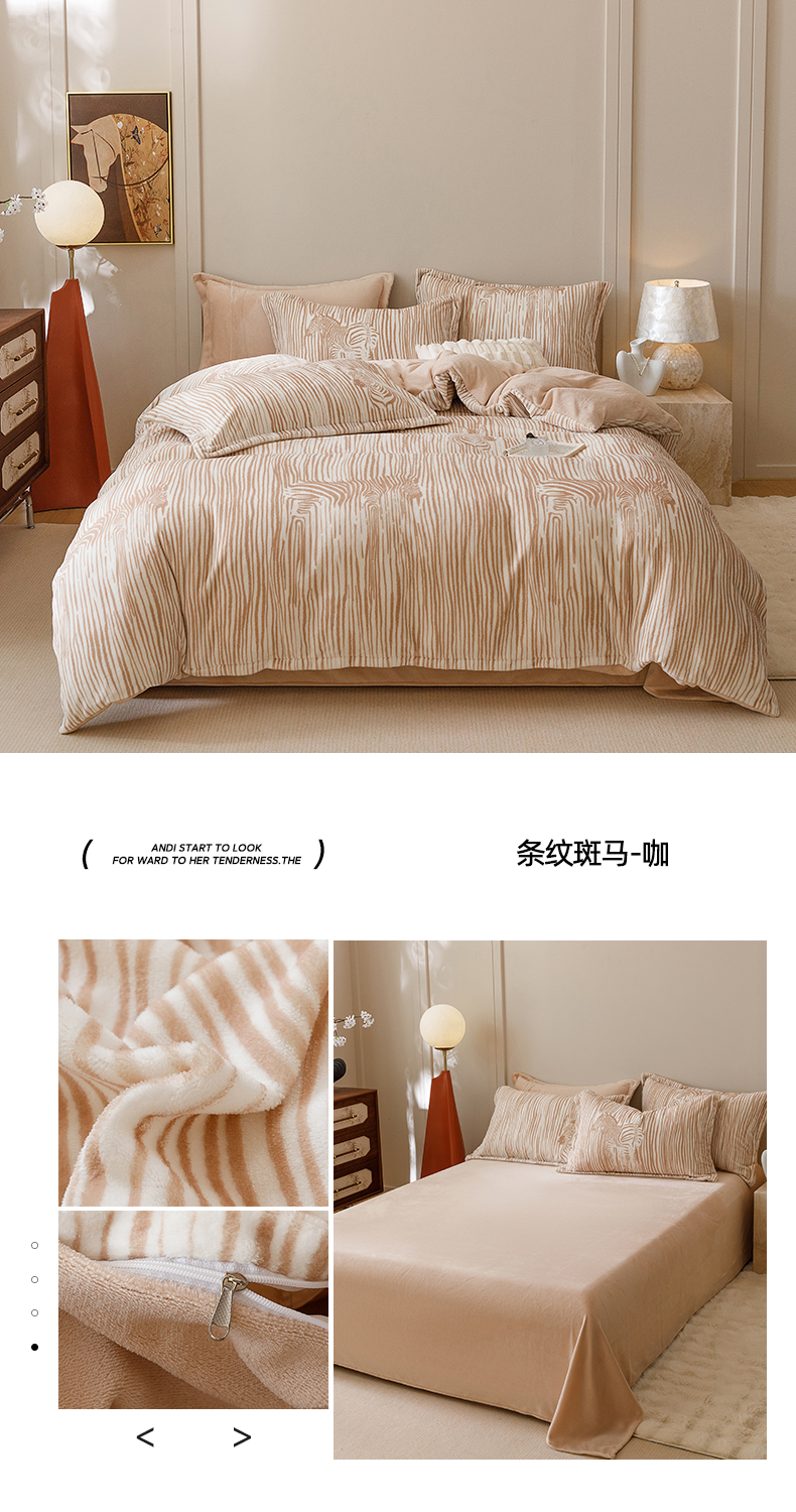 卡派 2024新款轻奢肌理纹雕花工艺款230克加厚牛奶绒四件套(提供买家秀 ) 条纹斑马-咖