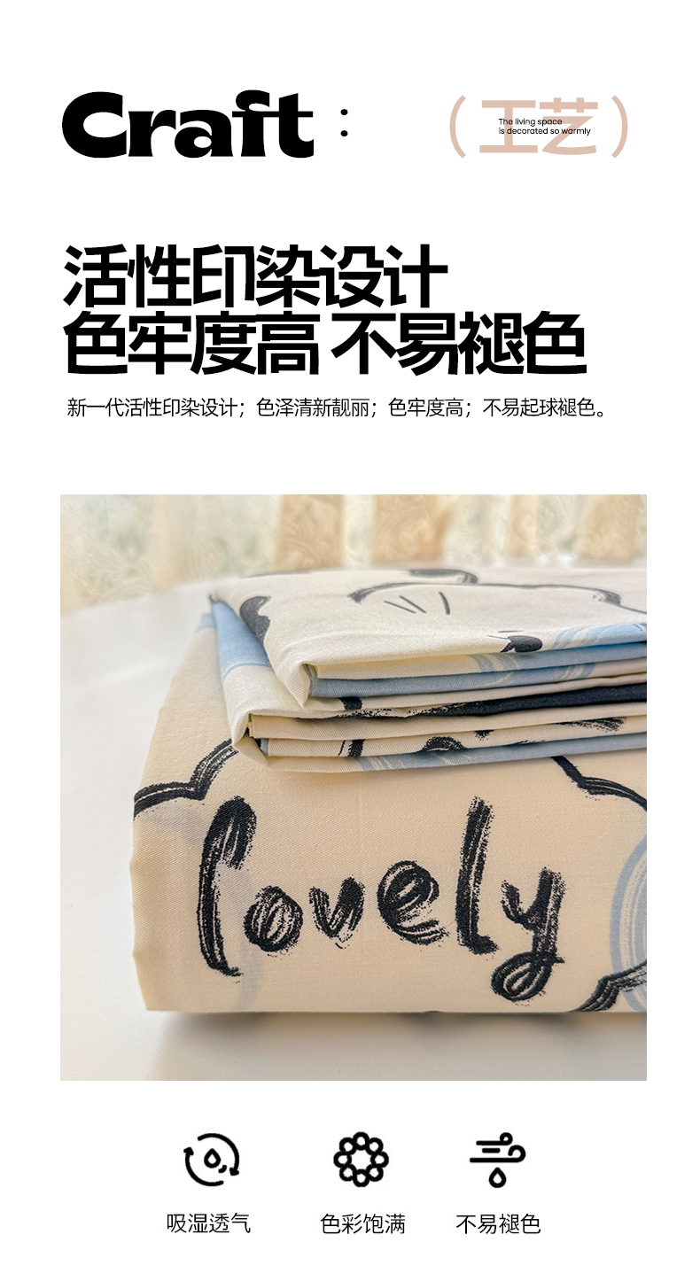 (总)吉象家纺 2025新款12868全棉印花单被套,蓝色泡芙狗,蘑菇小兔,奶油甜心熊,碎花狗狗,碎花小兔,爪爪会客厅