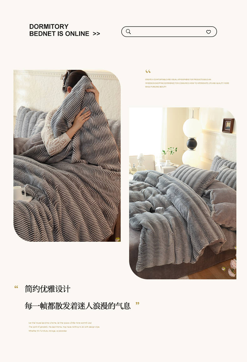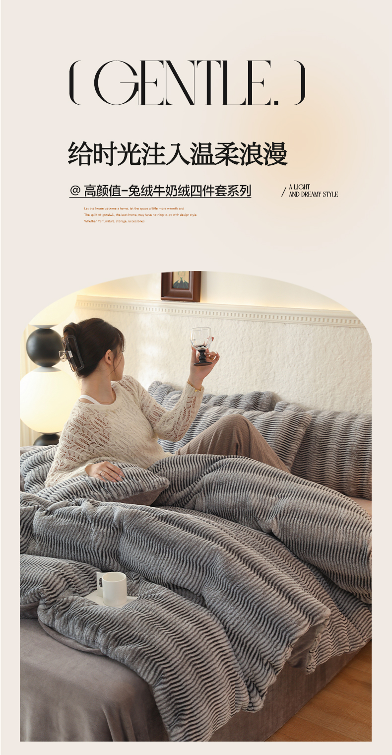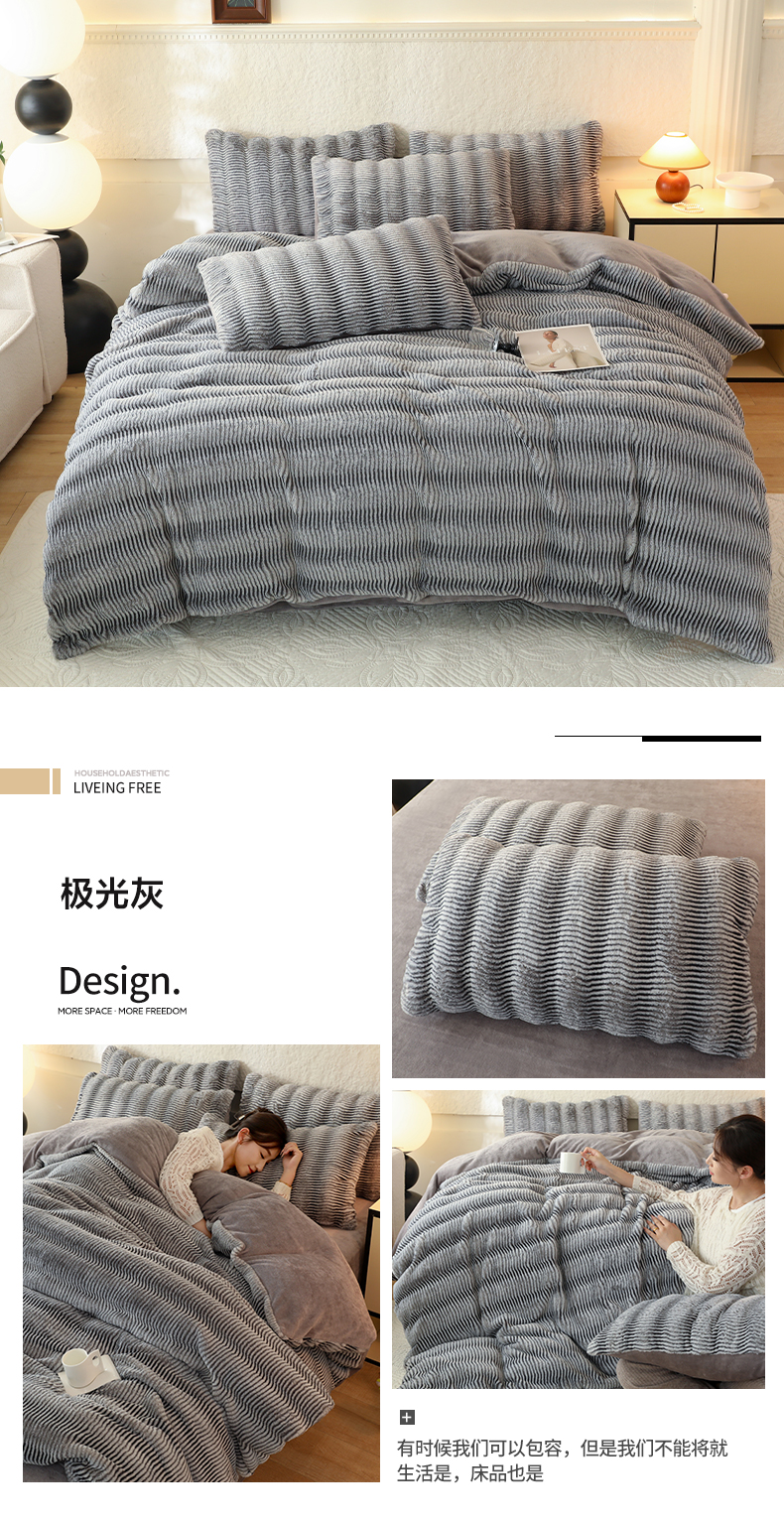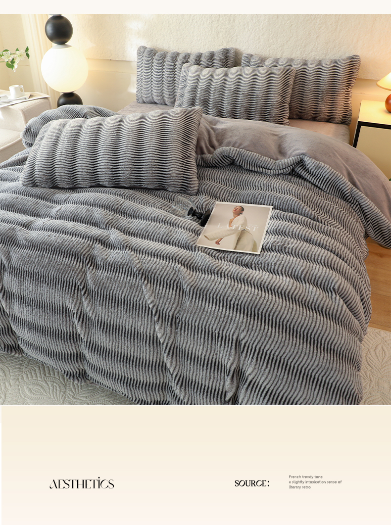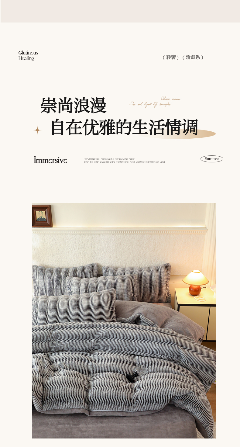 当前位置: 91家纺网 > 商品网购 > 床品套件 > 四件套 > 兔毛绒四件套 > 逸尚阁 2024新款极奢兔绒牛奶绒四件套 极光灰