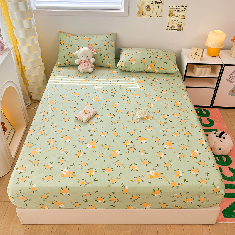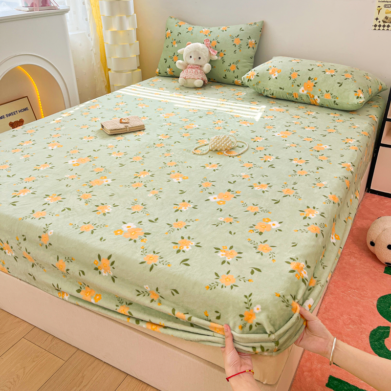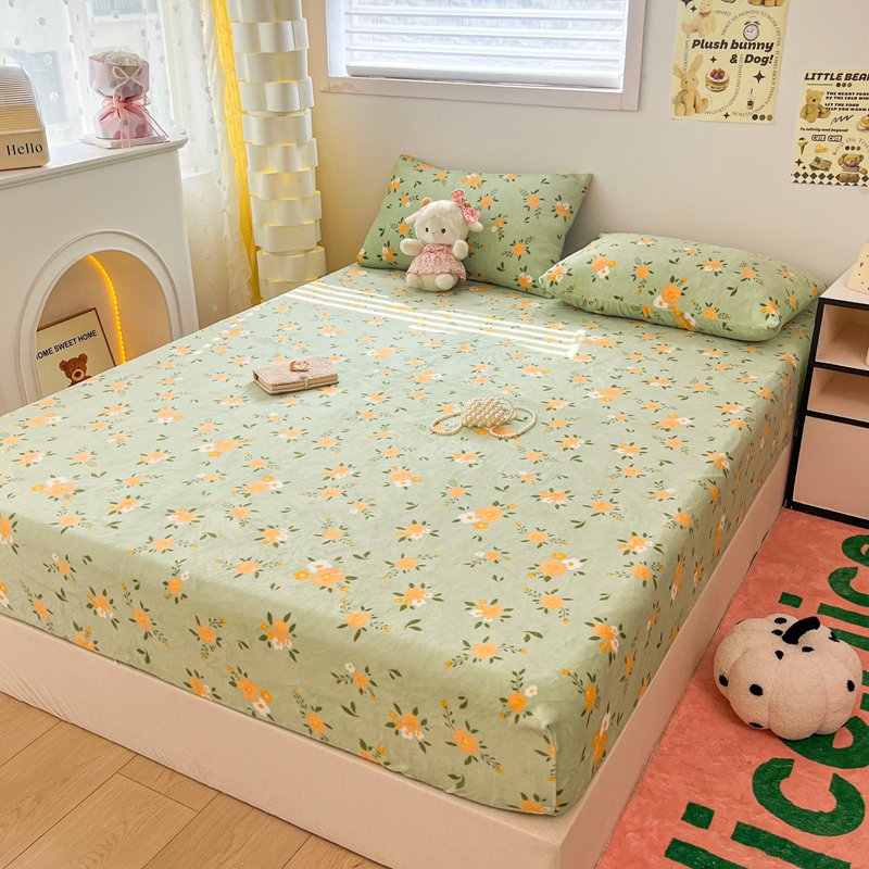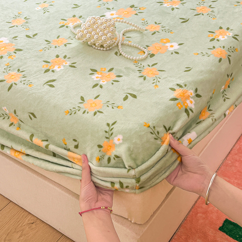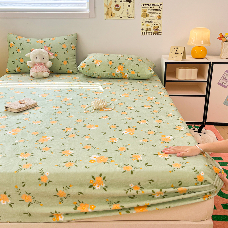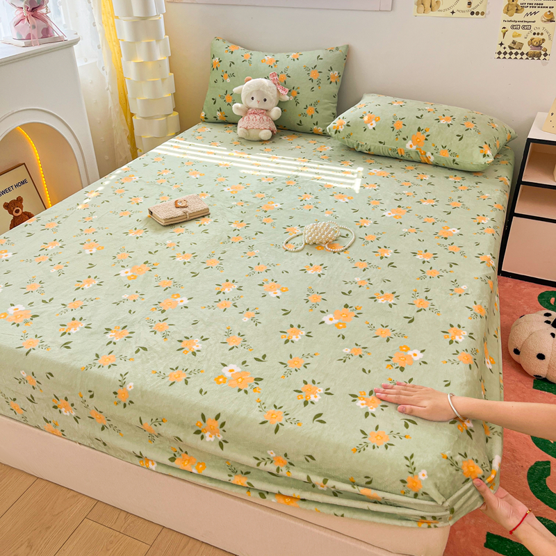 默忆 2025新款加厚印花牛奶绒床笠三件套单床笠 千代兰