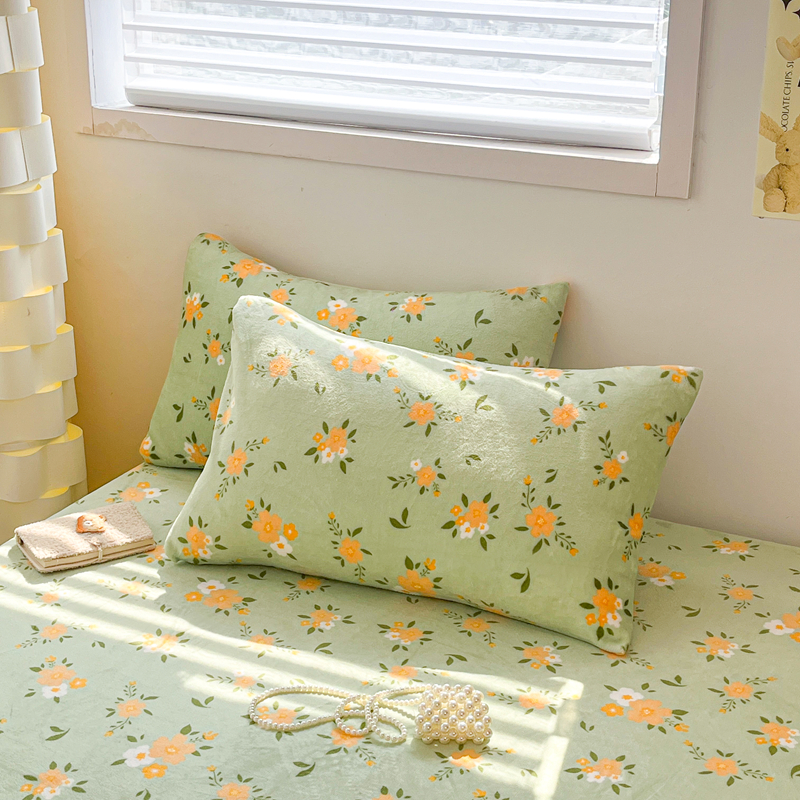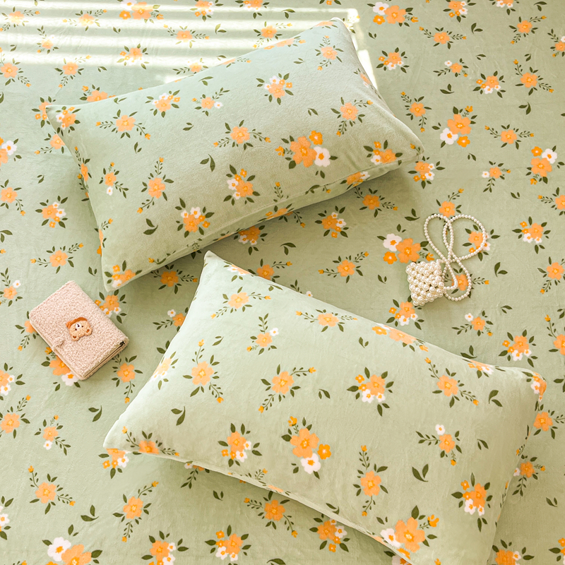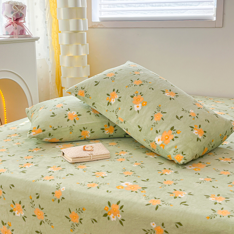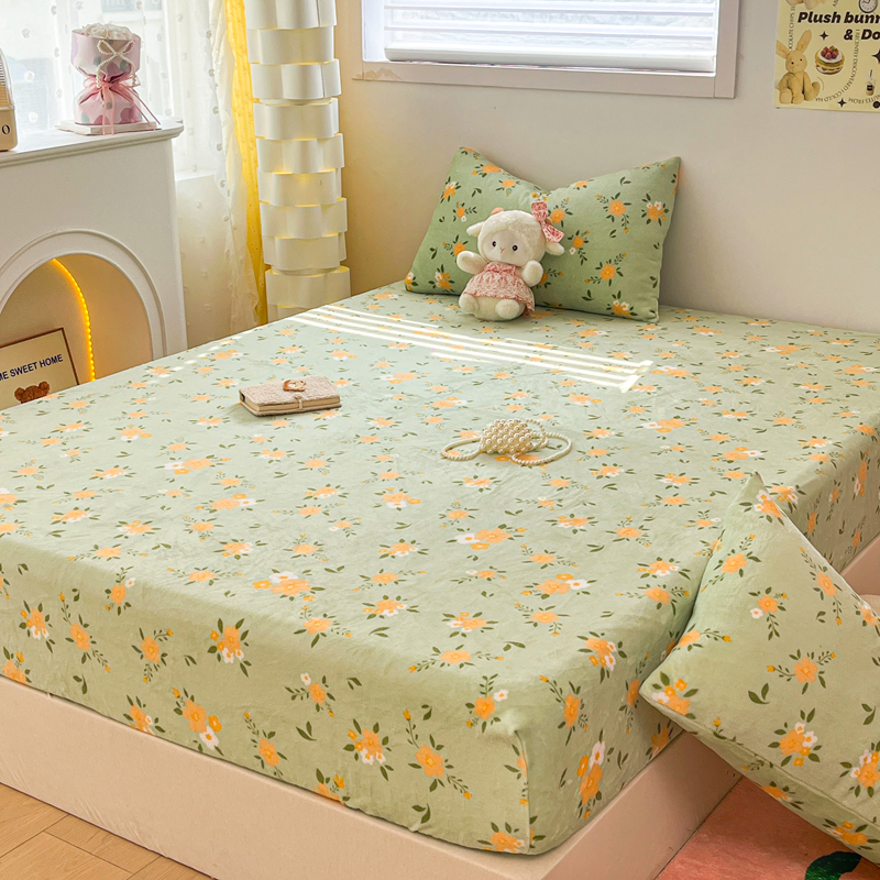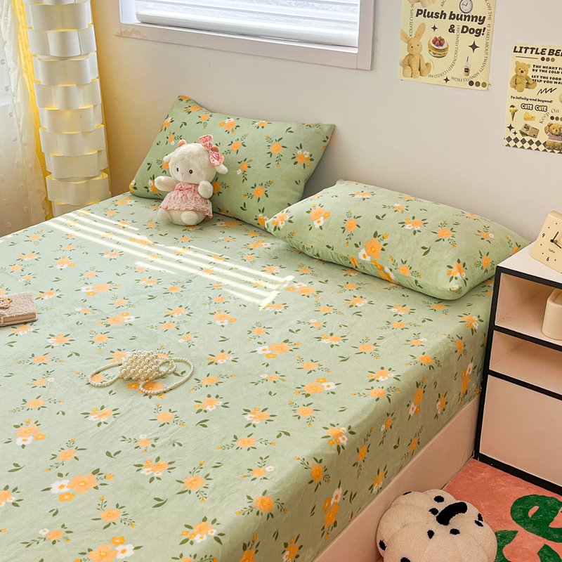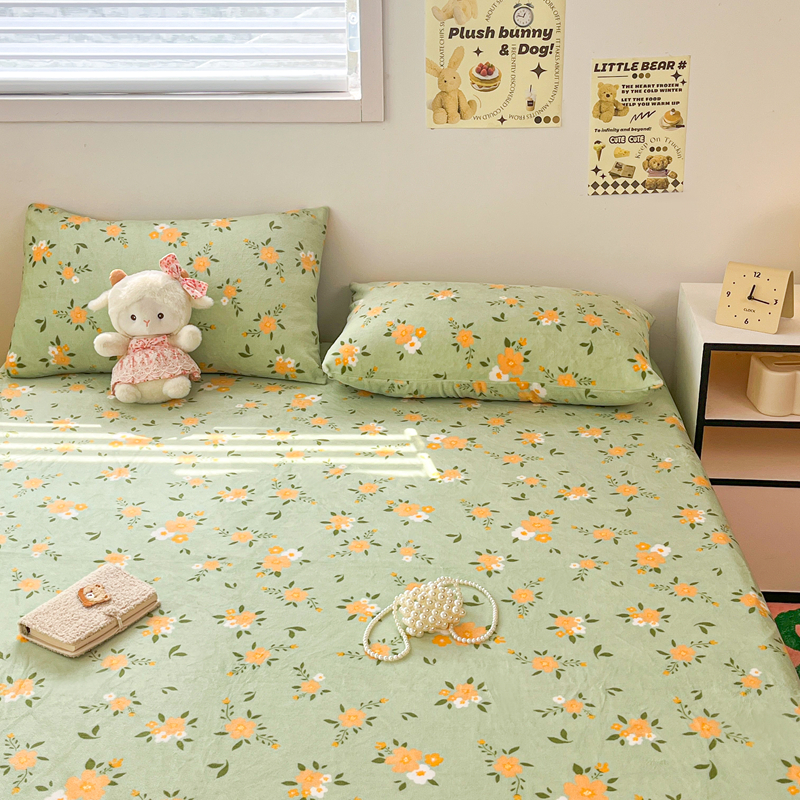 默忆 2025新款加厚印花牛奶绒床笠三件套单床笠 千代兰