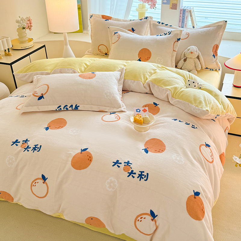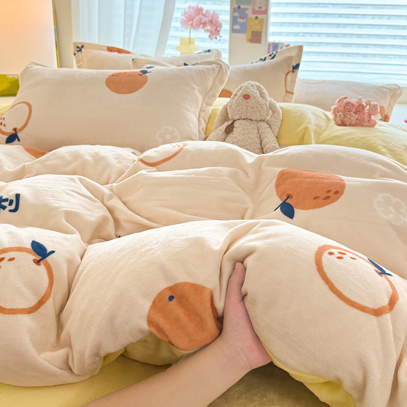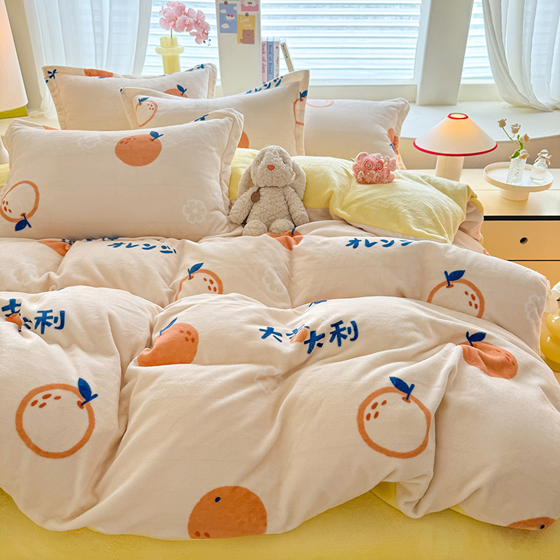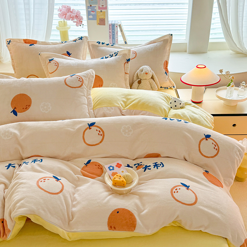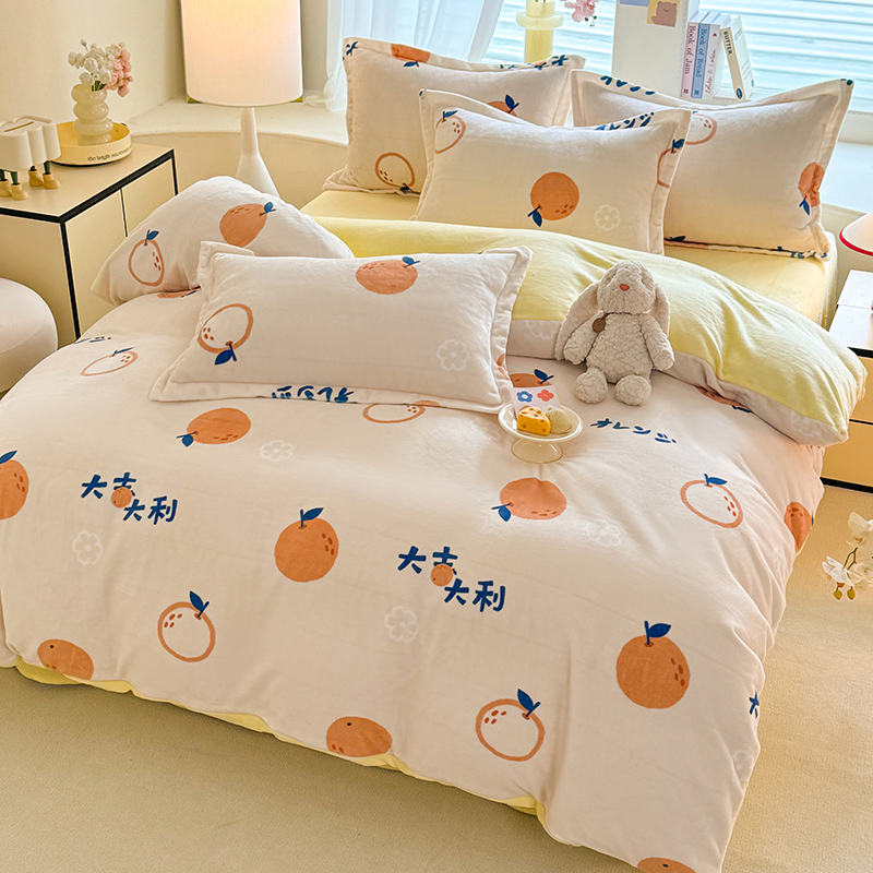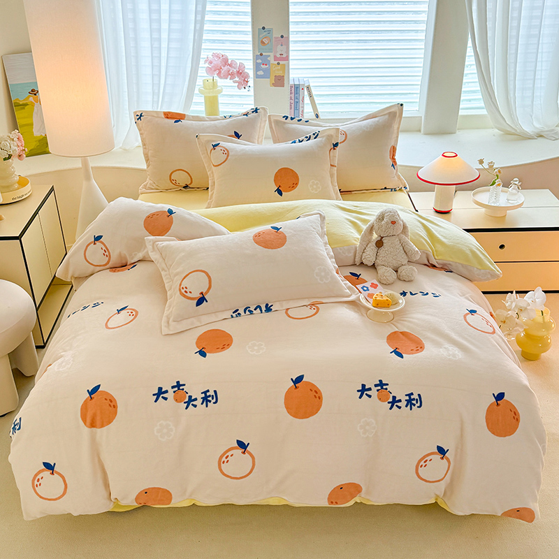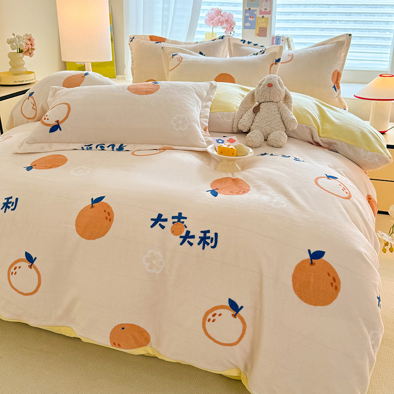 当前位置: 91家纺网 > 商品网购 > 床品套件 > 四件套 > 牛奶绒四件套 > 逸尚阁 2024新款牛奶绒卡通印花四件套 大桔大利