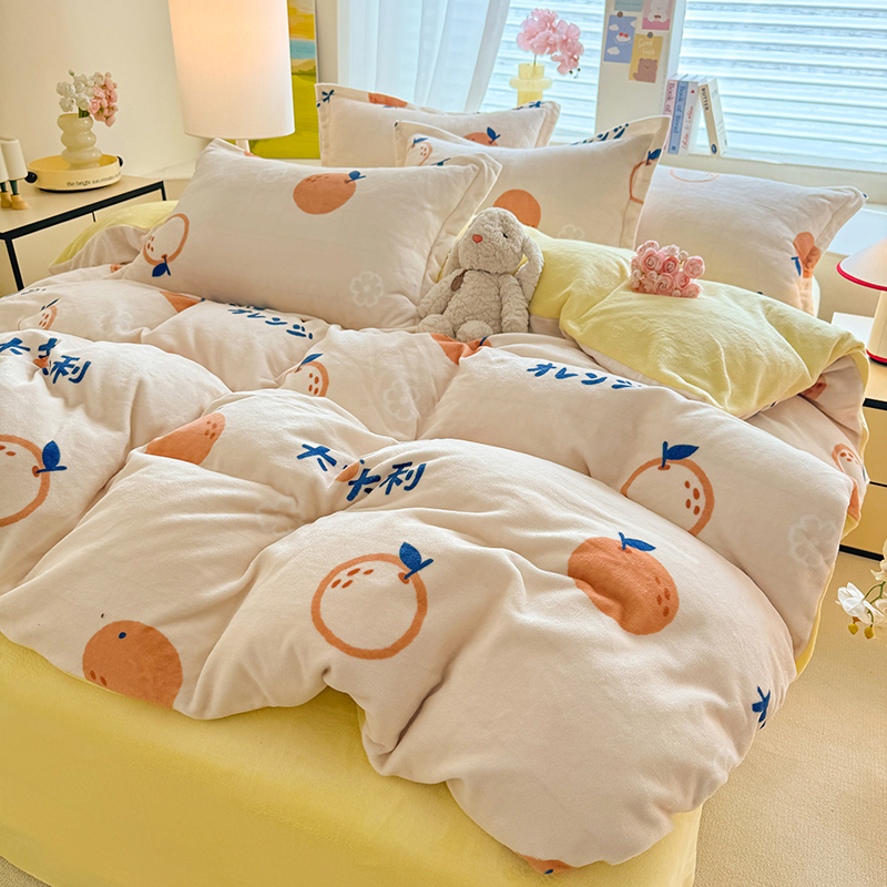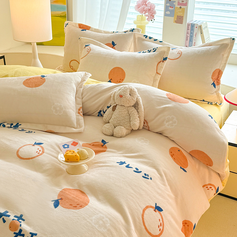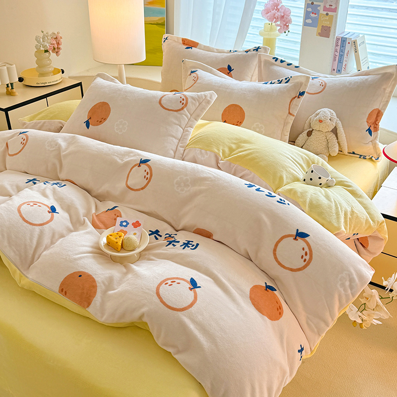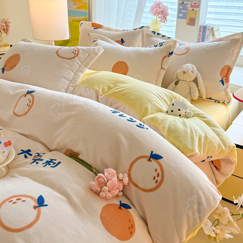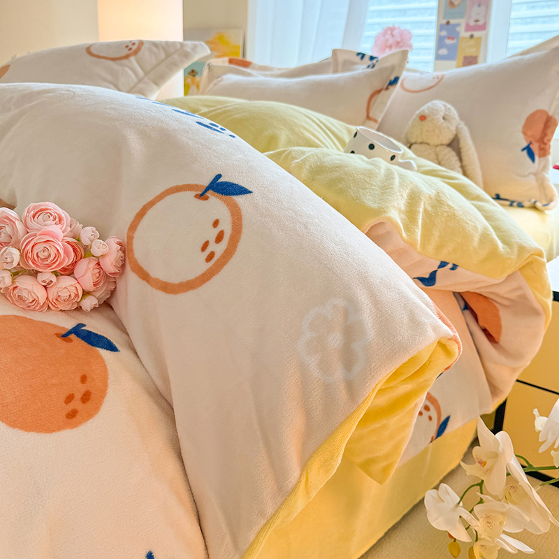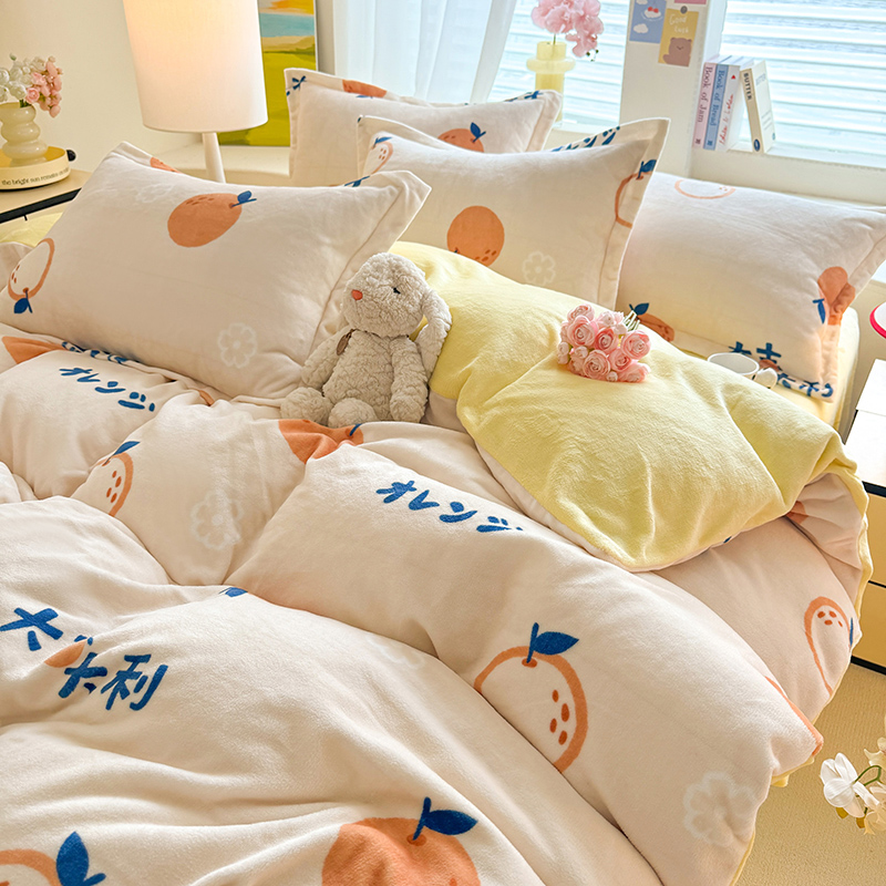 当前位置: 91家纺网 > 商品网购 > 床品套件 > 四件套 > 牛奶绒四件套 > 逸尚阁 2024新款牛奶绒卡通印花四件套 大桔大利