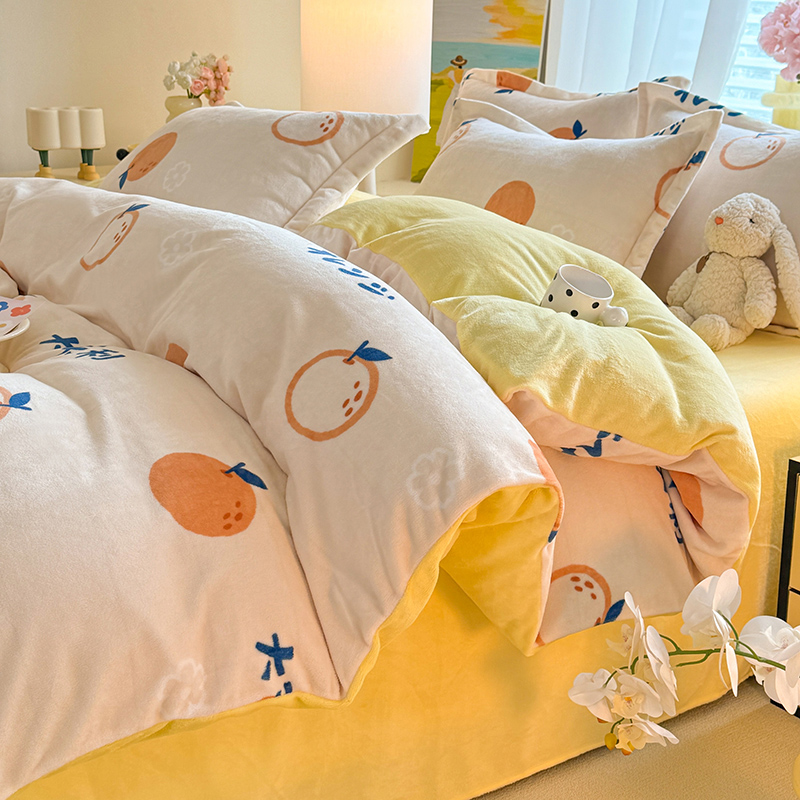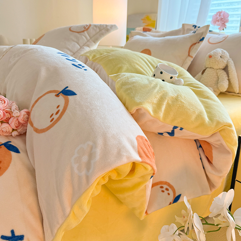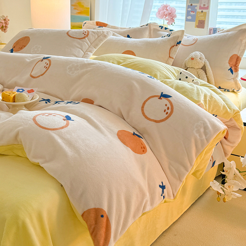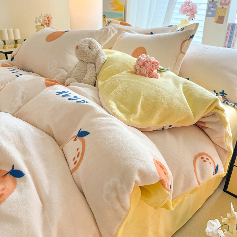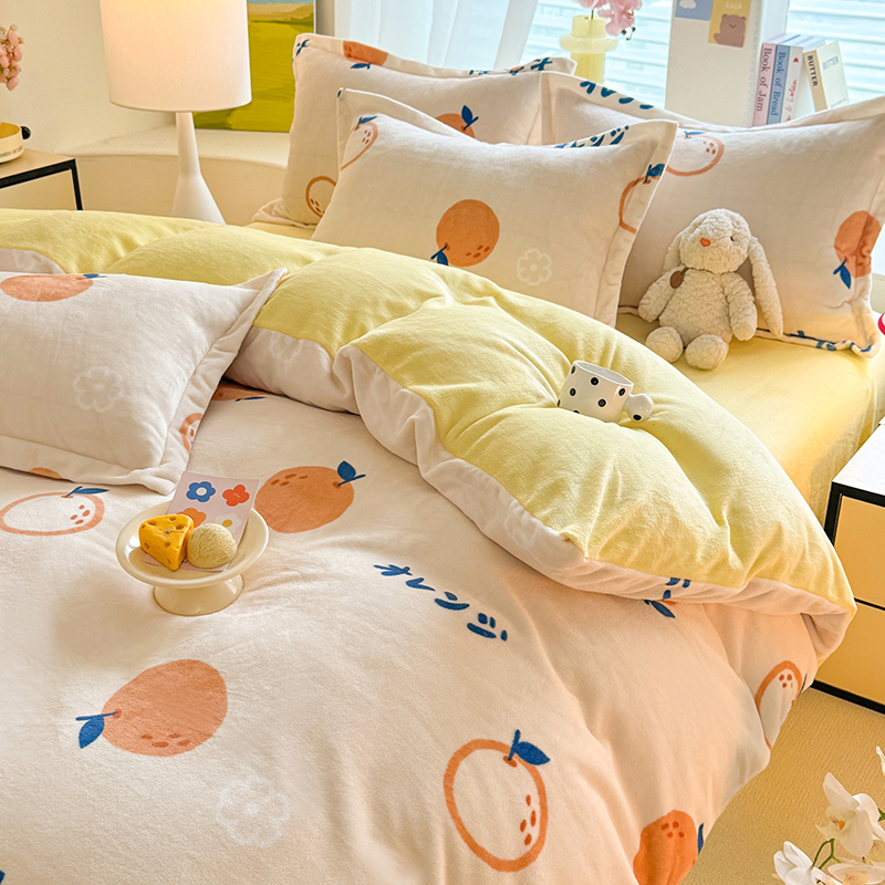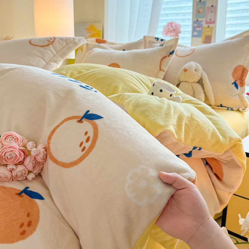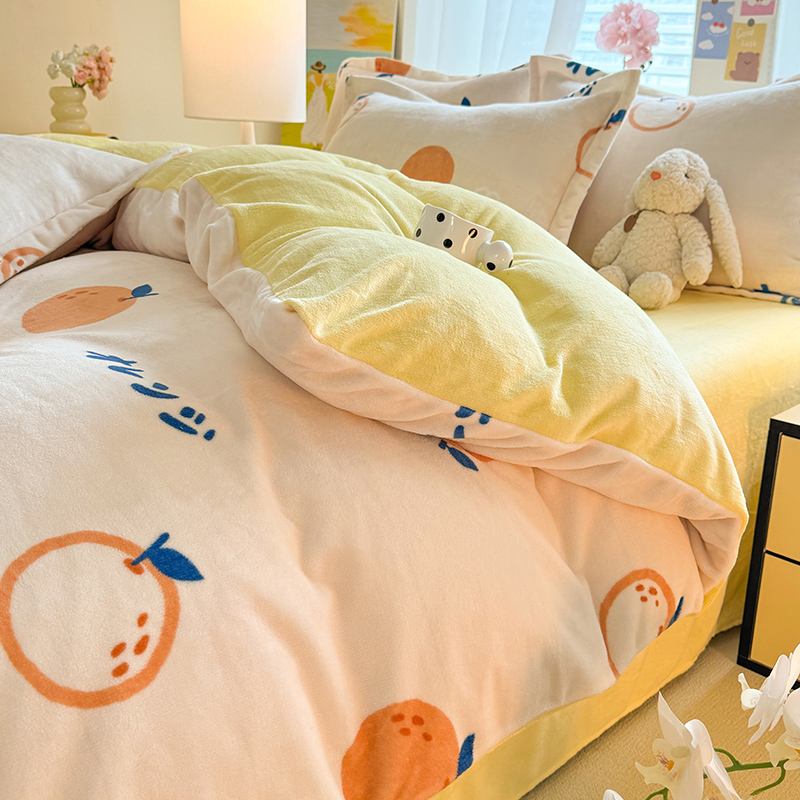 当前位置: 91家纺网 > 商品网购 > 床品套件 > 四件套 > 牛奶绒四件套 > 逸尚阁 2024新款牛奶绒卡通印花四件套 大桔大利