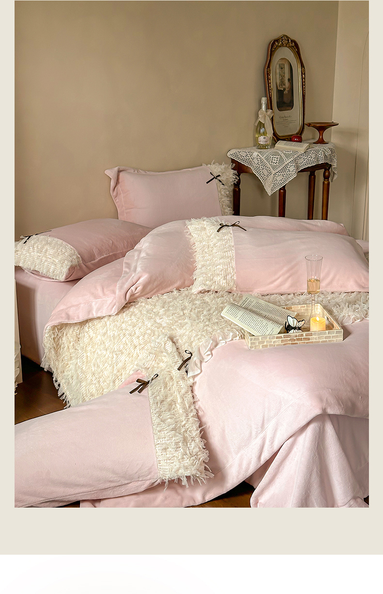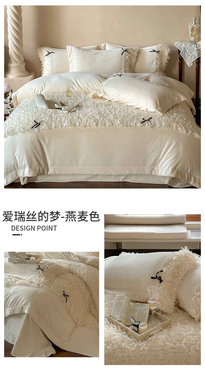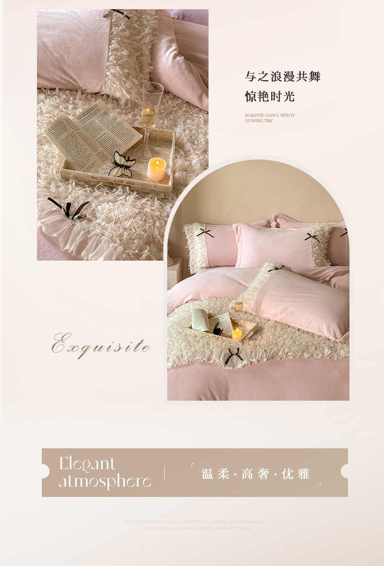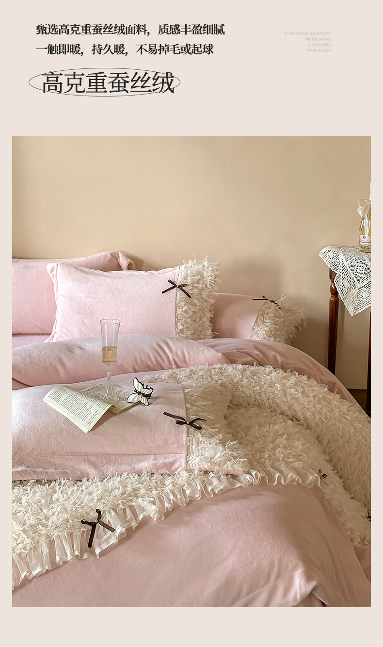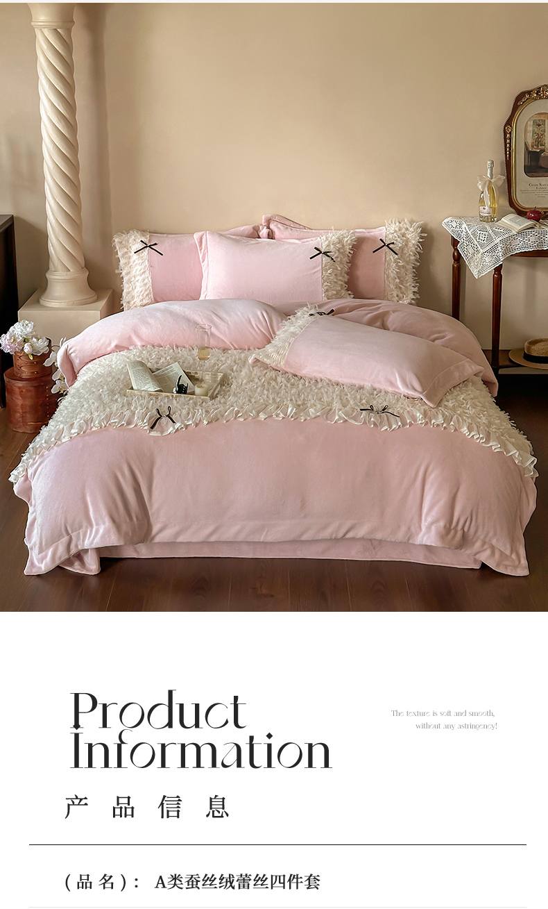 名品优仓 2024新款高克重牛奶绒蕾丝四件套-爱瑞丝的梦 爱瑞丝的梦-牛奶粉